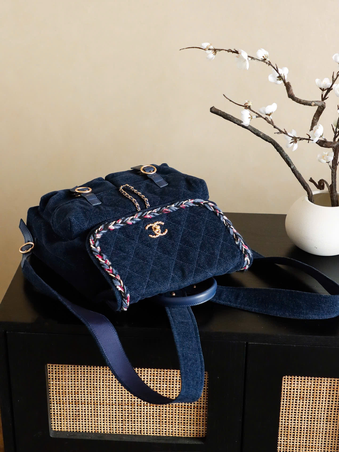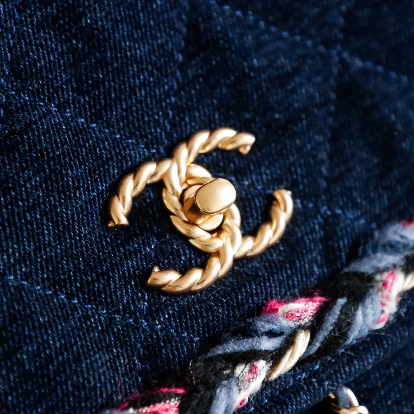 • Điểm nhấn logo Double C mạ vàng + dây xích xoắn (twist chain) độc đáo.