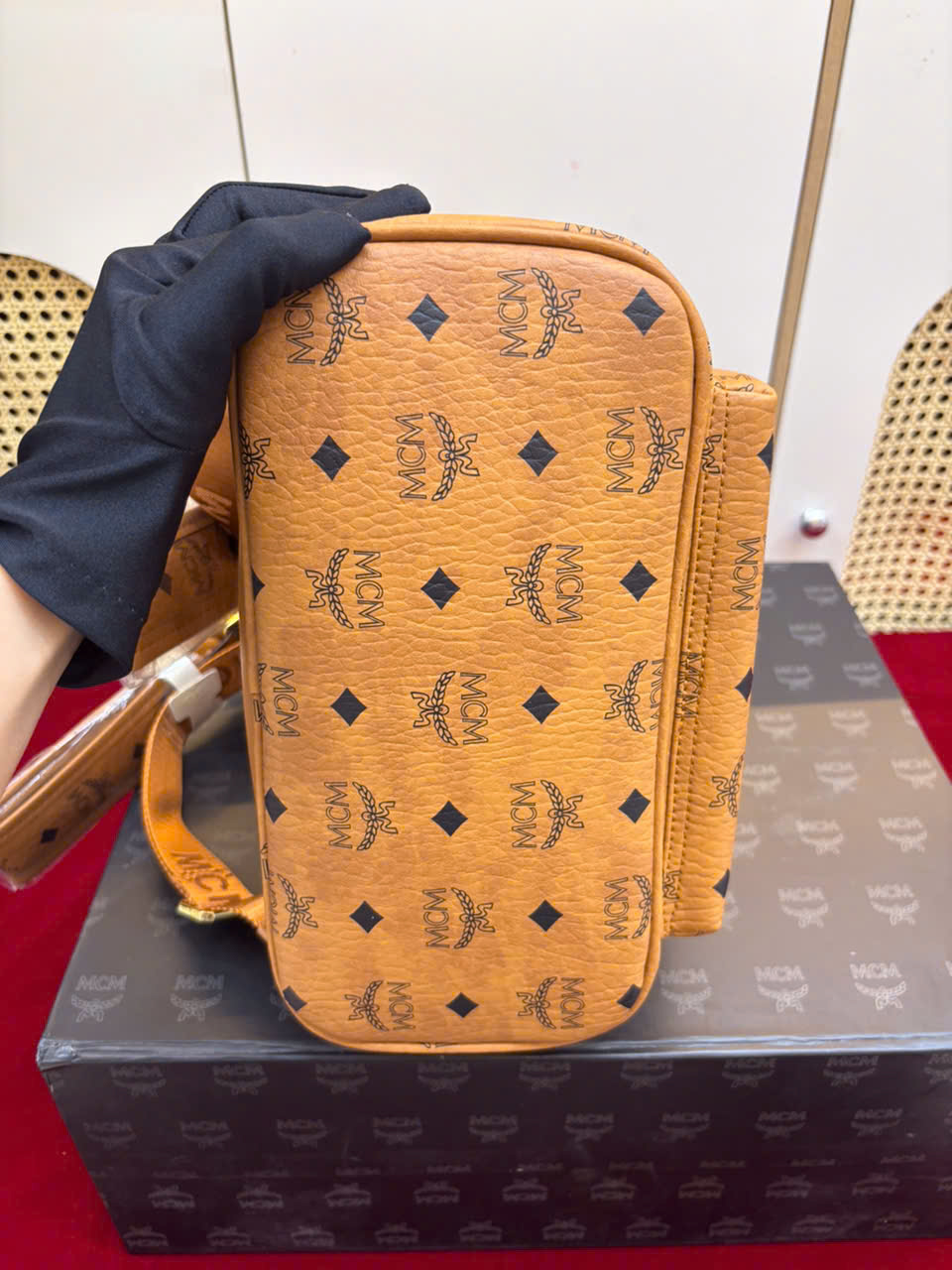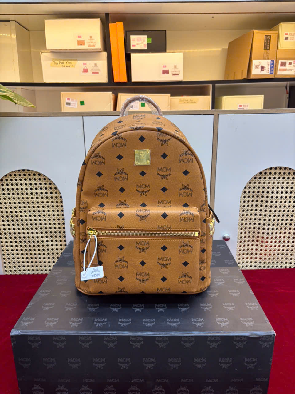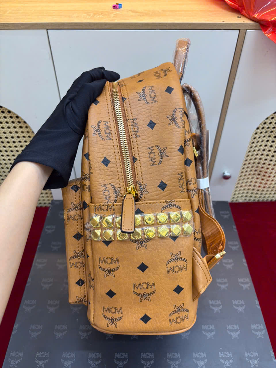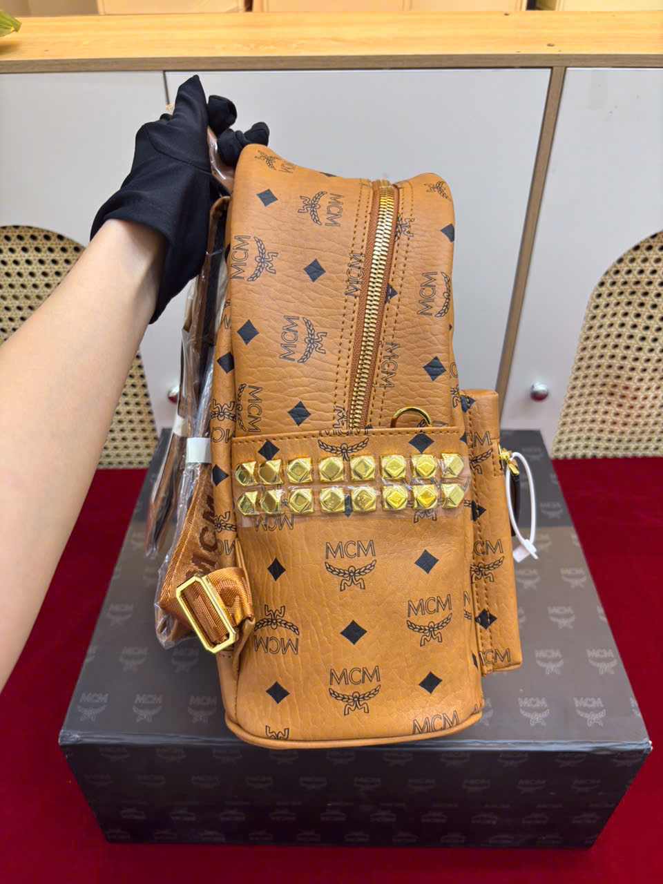 - Tên Sản Phẩm: Balo MCM Stark Side Studs Backpack In Visetos Super Size 32cm