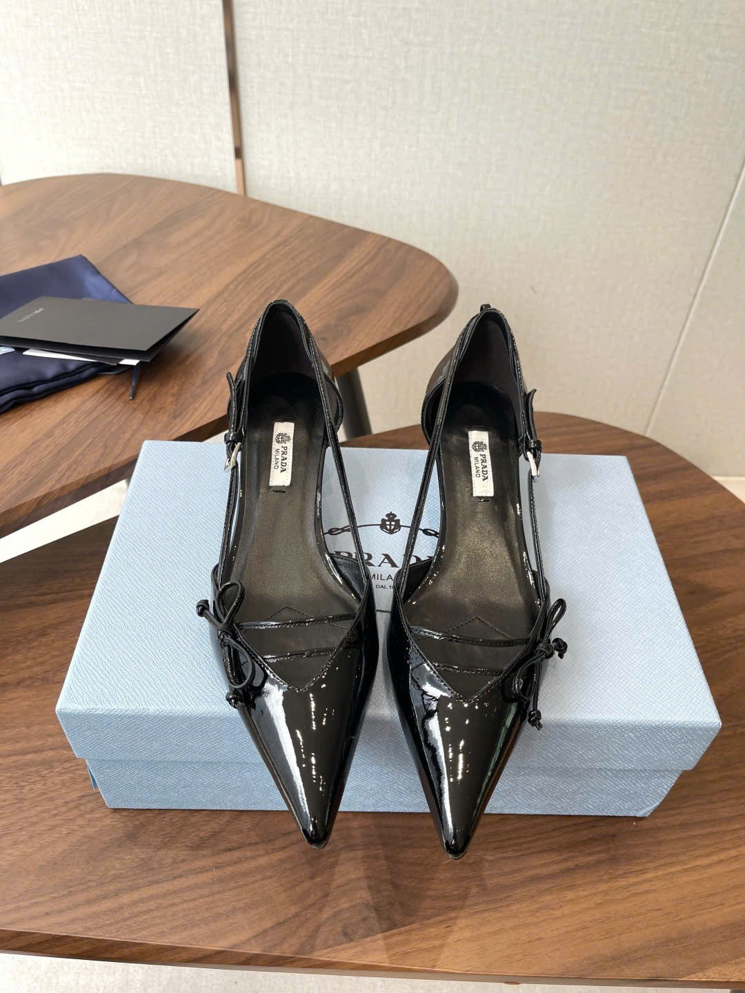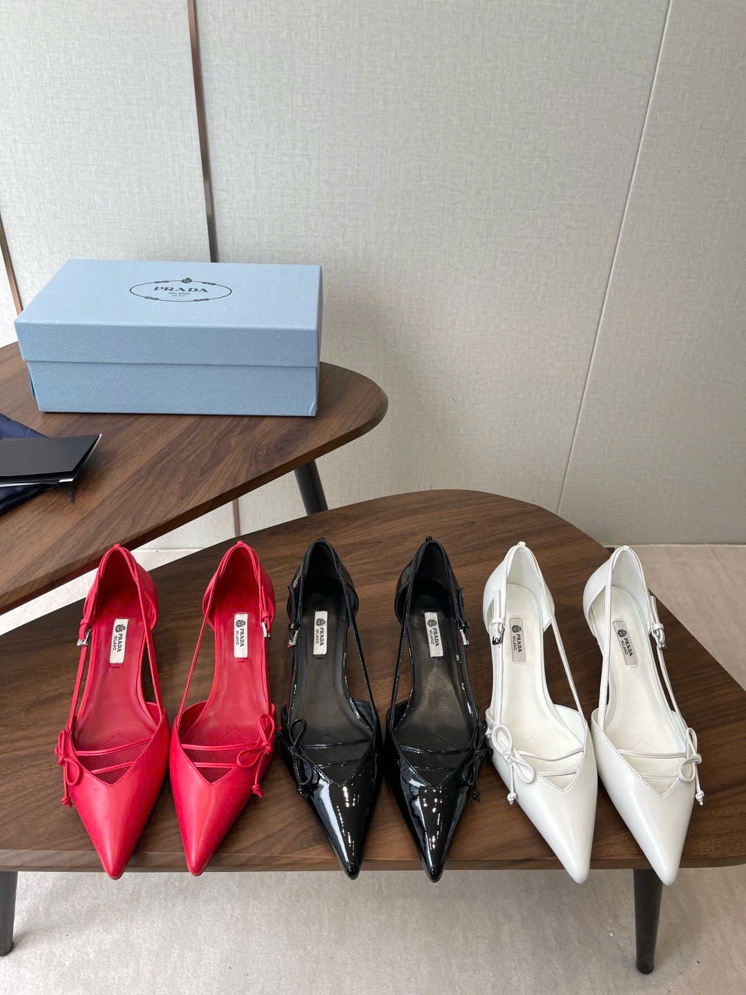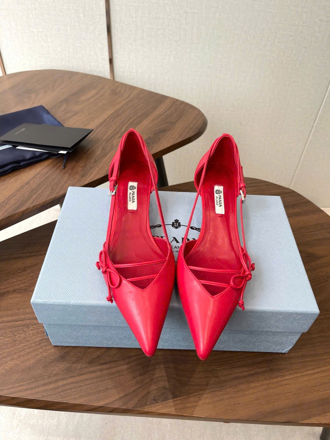 • Mẫu Prada 26SS, thiết kế thanh lịch pha nét nữ tính hiện đại. • Kiểu dáng mũi nhọn + gót thấp, dễ mang, phù hợp nhiều hoàn cảnh. • Điểm nhấn nơ trước mũi giày, tinh tế và nhẹ nhàng. • Thiết kế hở gót + dây cổ chân, tạo cảm giác thanh thoát, thoải mái. • Chất liệu da bò cao cấp, bền đẹp, lên form chuẩn. • Lót trong da cừu mềm mại, mang êm chân cả ngày. • Đế da thật, chắc chắn, chống trơn trượt tốt. • Gót cao 4.5cm, vừa tôn dáng vừa dễ di chuyển. • Phù hợp đi làm, dự tiệc nhẹ, hẹn hò hoặc outfit thanh lịch. • Dễ phối với váy, quần tây, outfit công sở. • Phong cách nhẹ nhàng – tinh tế – high fashion.