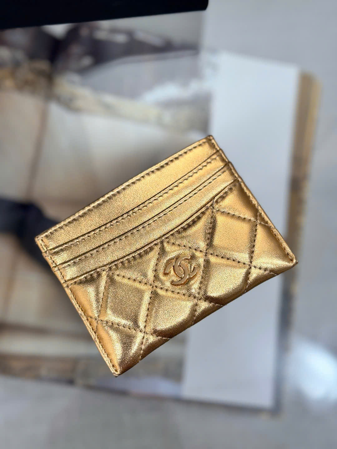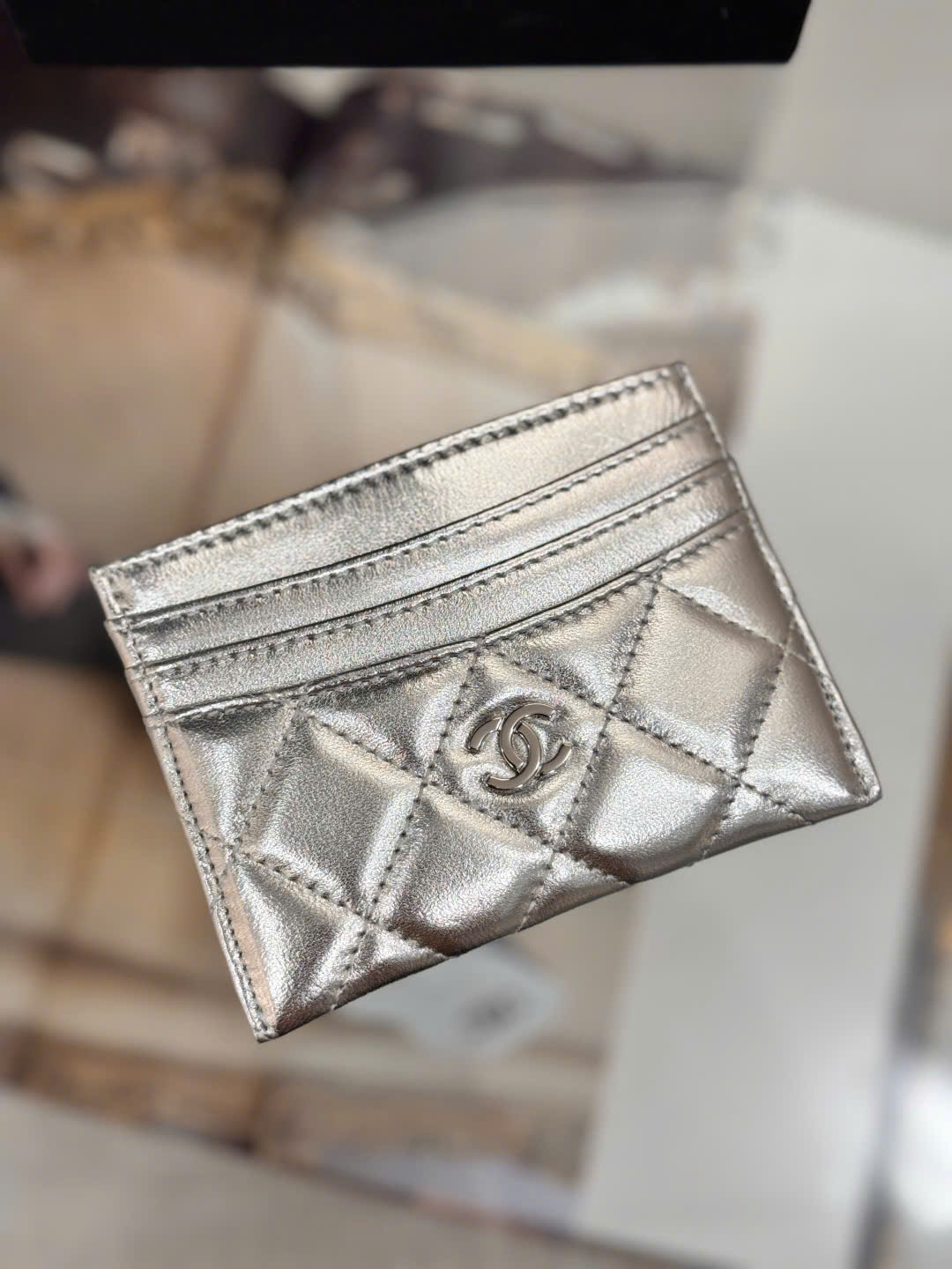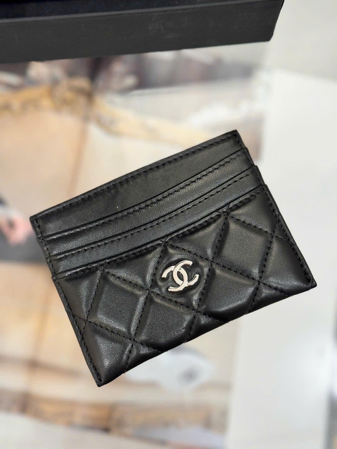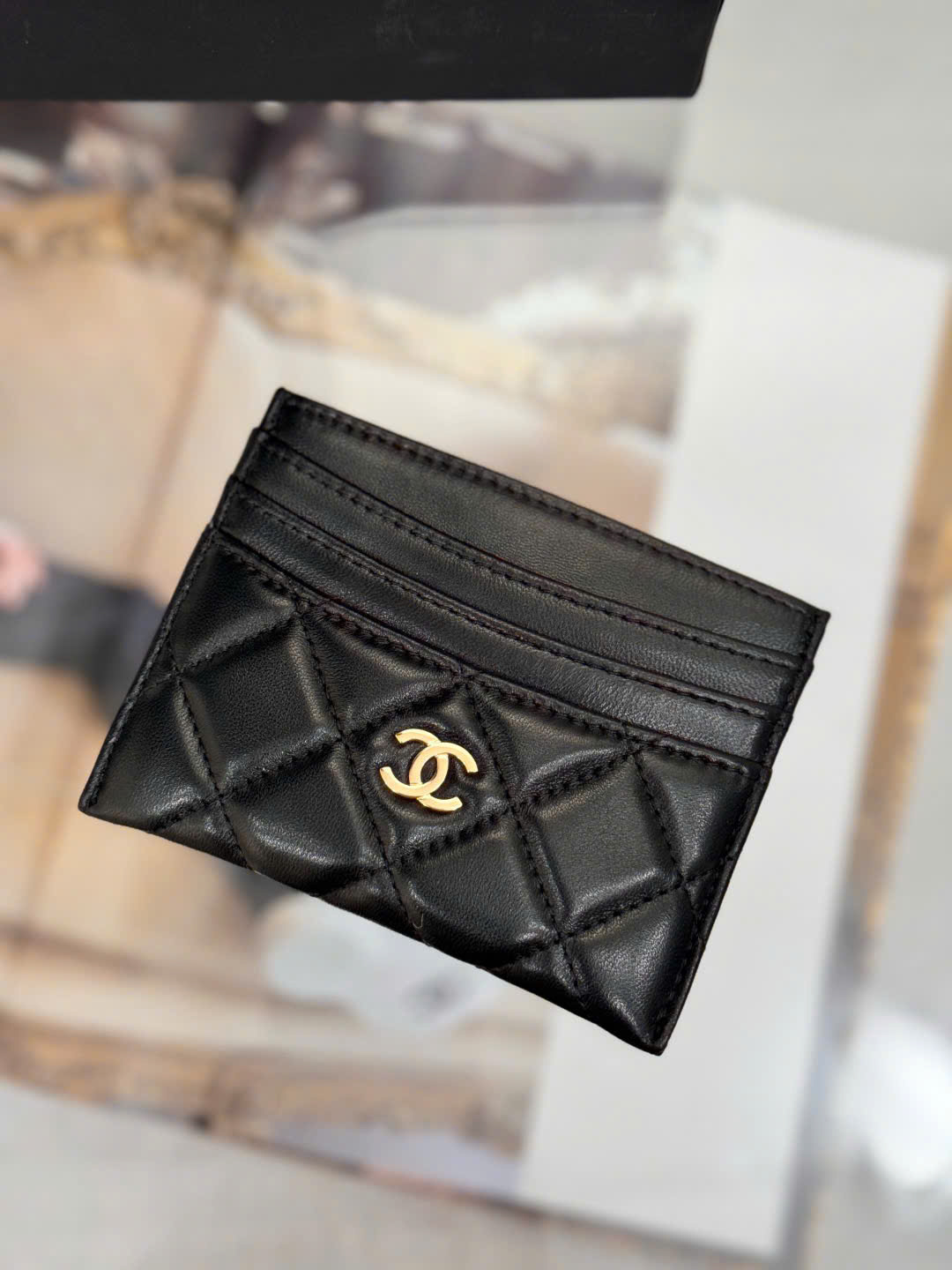 • Mẫu Chanel CF Card Holder 25S mới, thiết kế thanh lịch và tinh tế. • Chất liệu da cừu cao cấp, mềm mại và sang trọng. • Khóa kim loại vàng nhạt tạo điểm nhấn tinh tế. • Thiết kế 3 khe thẻ phía trước + 3 khe thẻ phía sau + 1 ngăn giữa tiện dụng. • Dung tích đựng thẻ lớn hơn bản cổ điển, phù hợp sử dụng hằng ngày. • Kiểu dáng mỏng gọn, dễ mang theo trong túi xách nhỏ. • Chi tiết hoàn thiện tinh xảo, mang phong cách sang trọng đặc trưng của Chanel. • Phù hợp đựng thẻ ngân hàng, giấy tờ và tiền mặt gấp gọn
