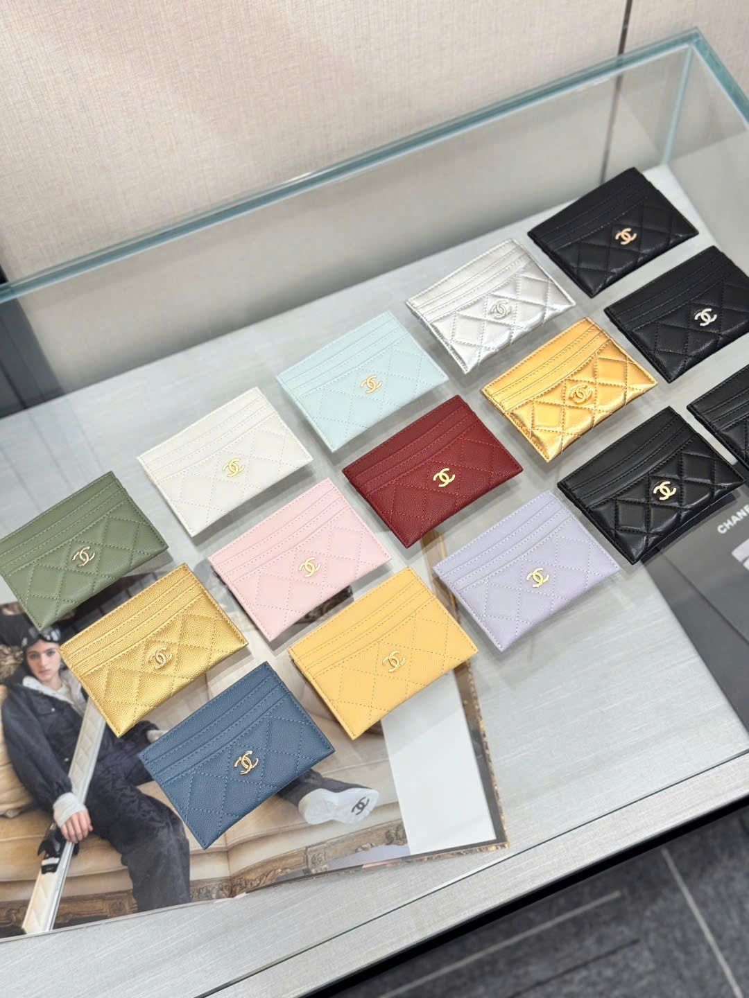 Bảng màu Ví Đựng Thẻ Chanel CF Card Holder AP4472 Da Cừu Khóa Vàng Nhạt Siêu Cấp