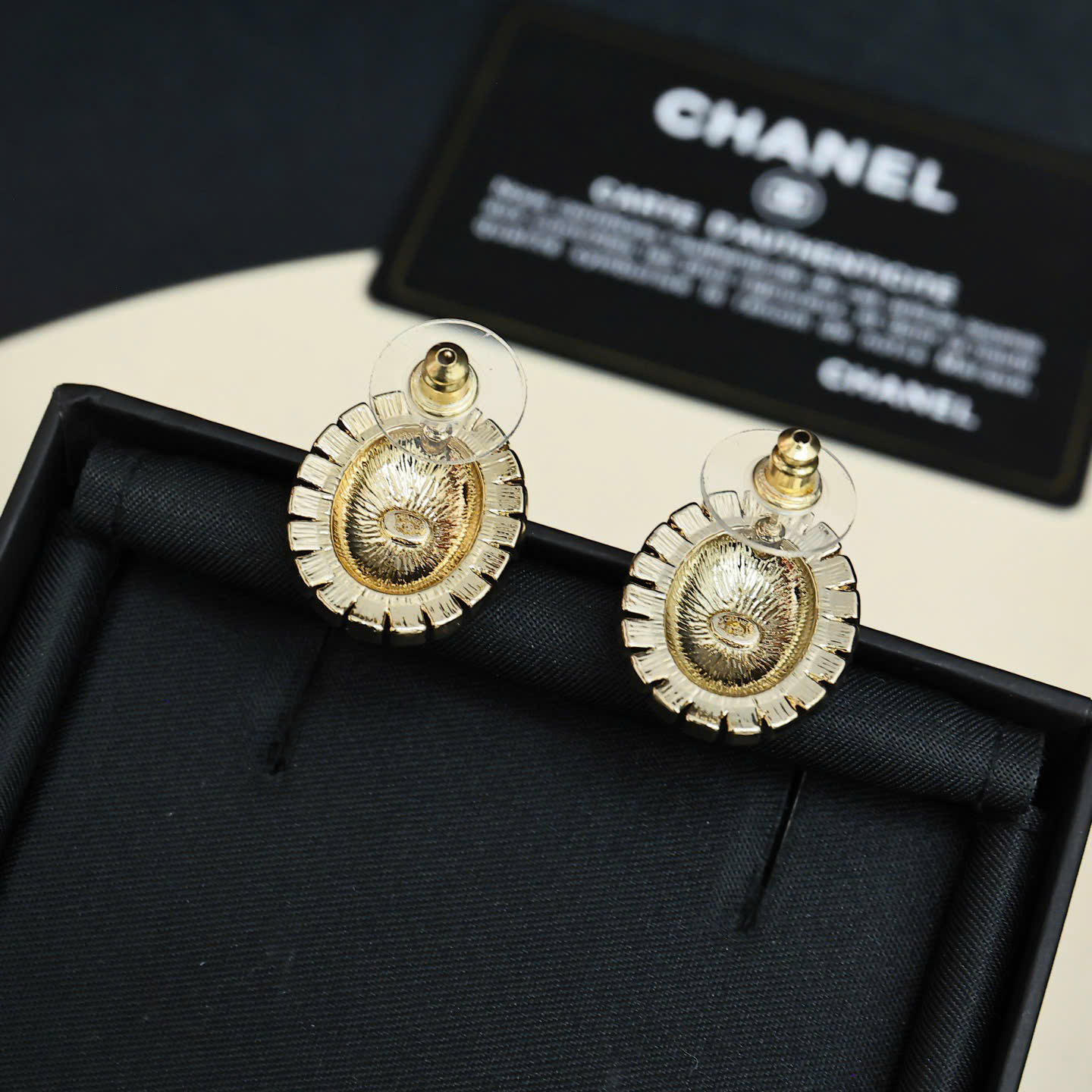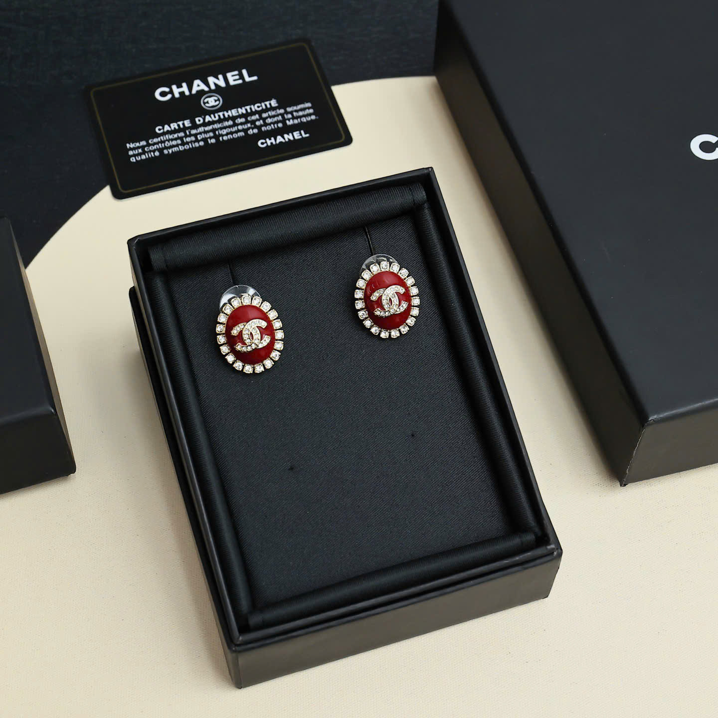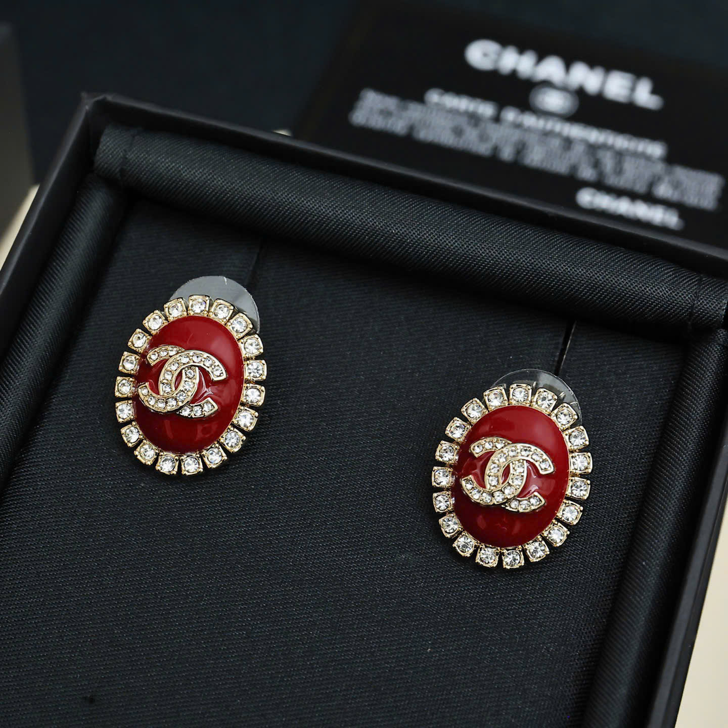 Bông Tai Chanel Oval Đỏ Logo Double C Siêu Cấp