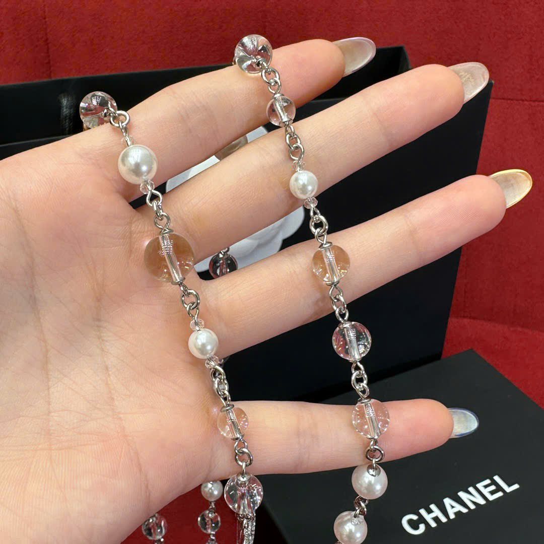 • Dây đeo phối hạt trong suốt + ngọc trai rải không đều, tạo cảm giác tự nhiên