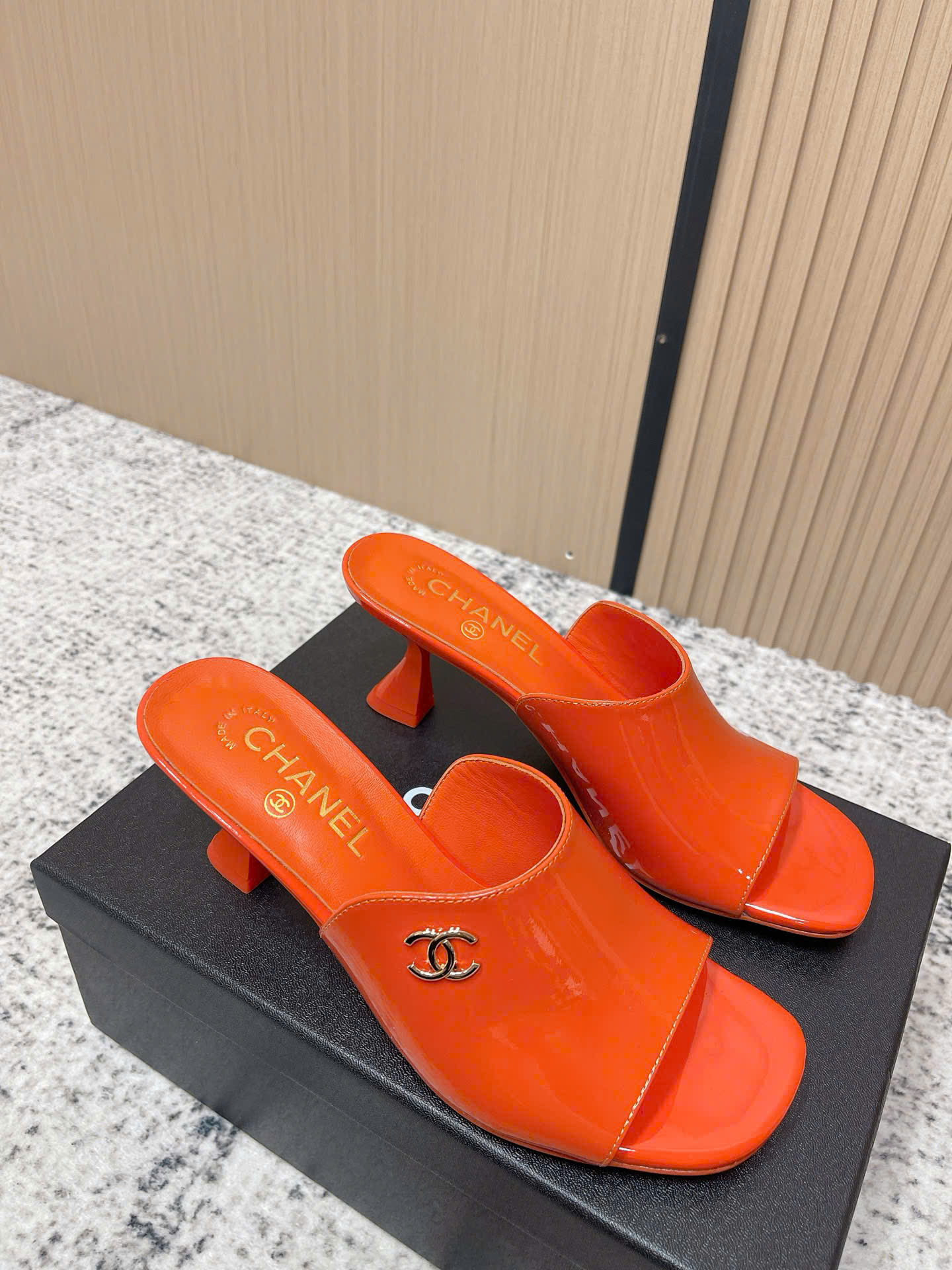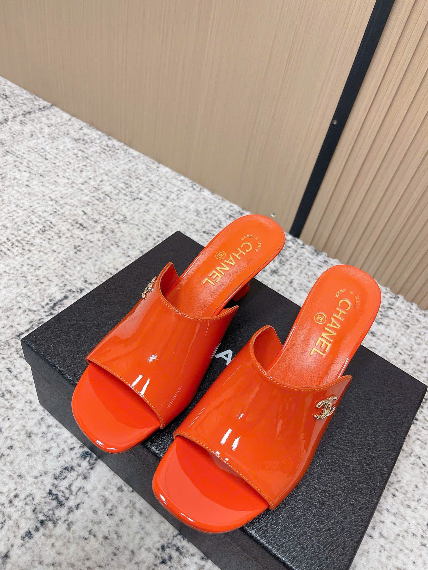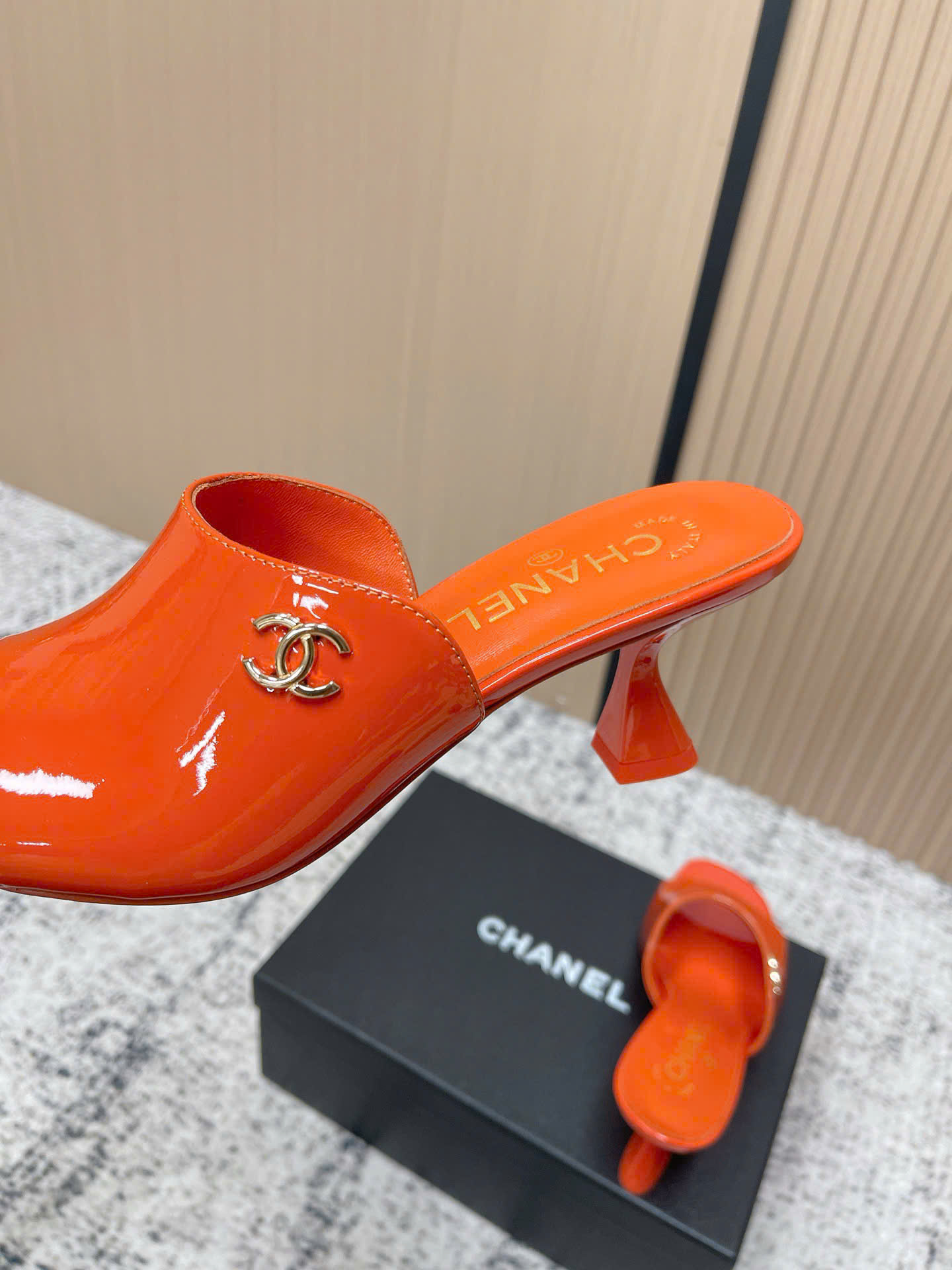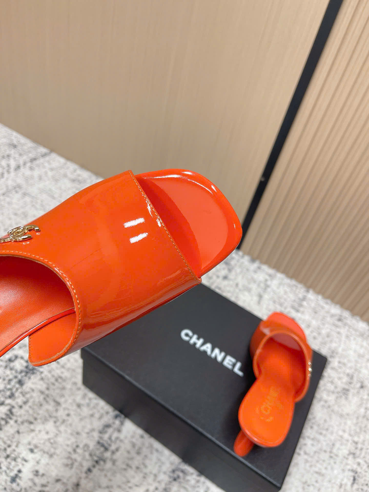 - Tên Sản Phẩm: Dép Chanel Patent Leather Double C Slide – Siêu cấp - màu cam