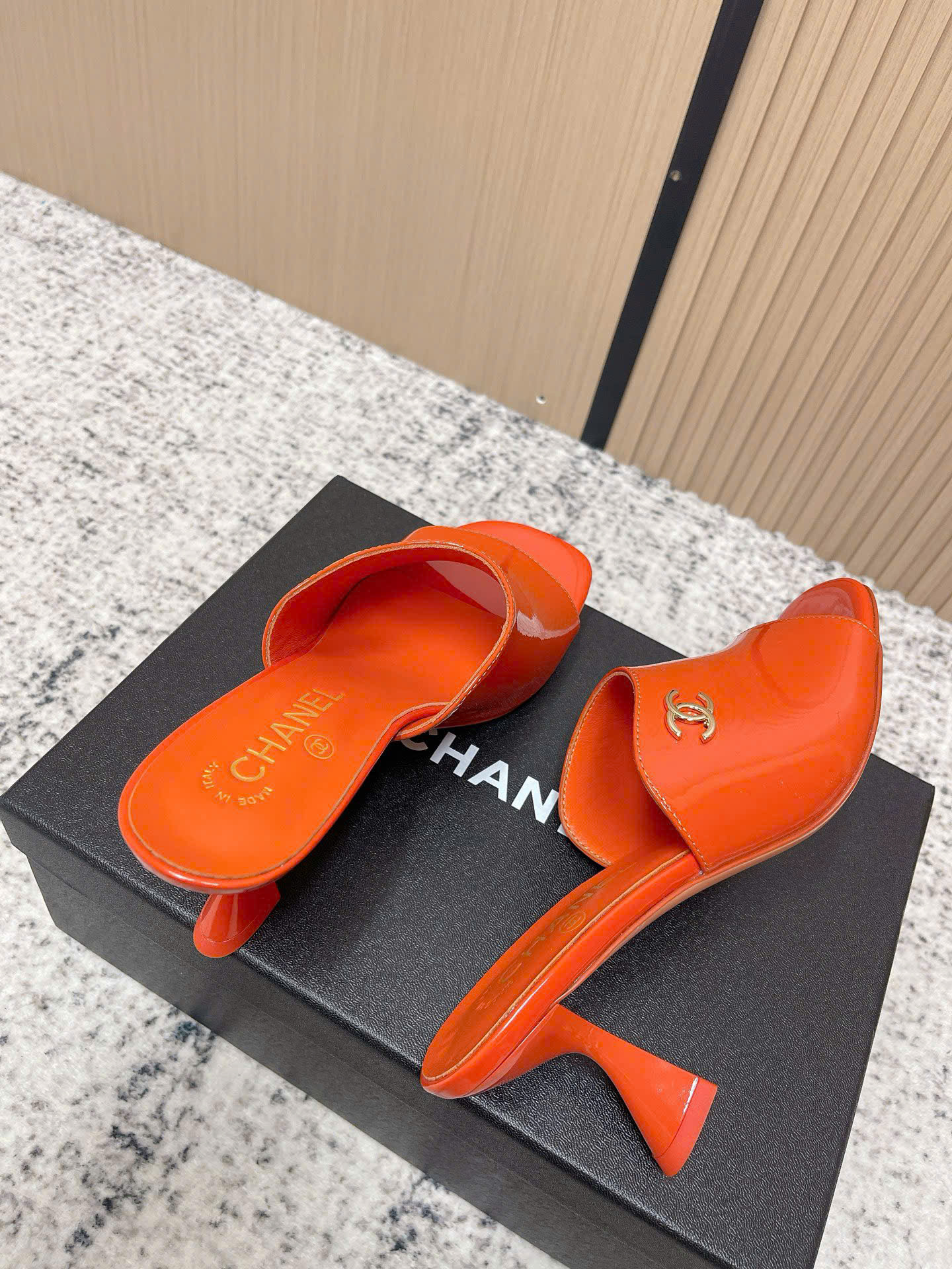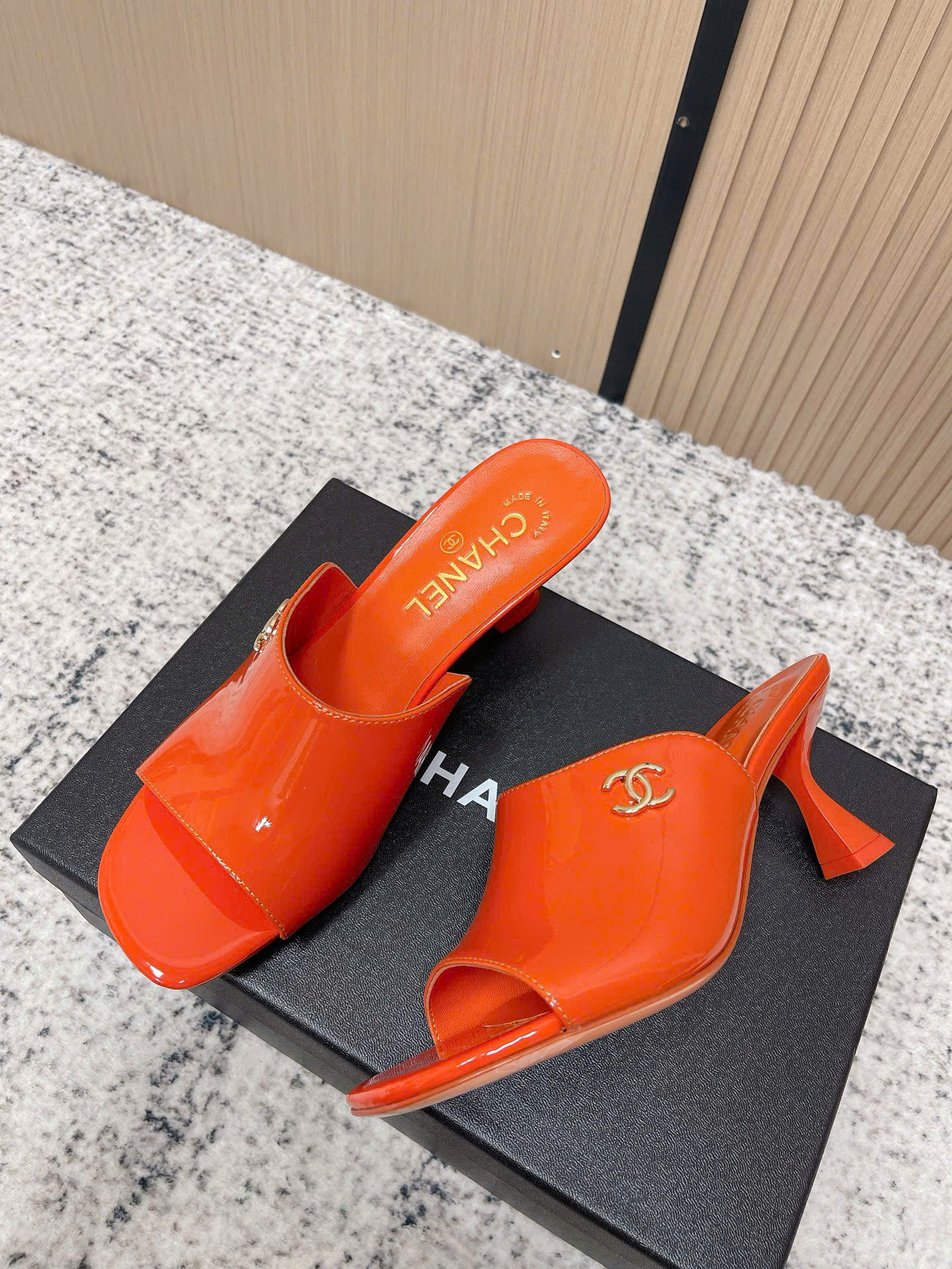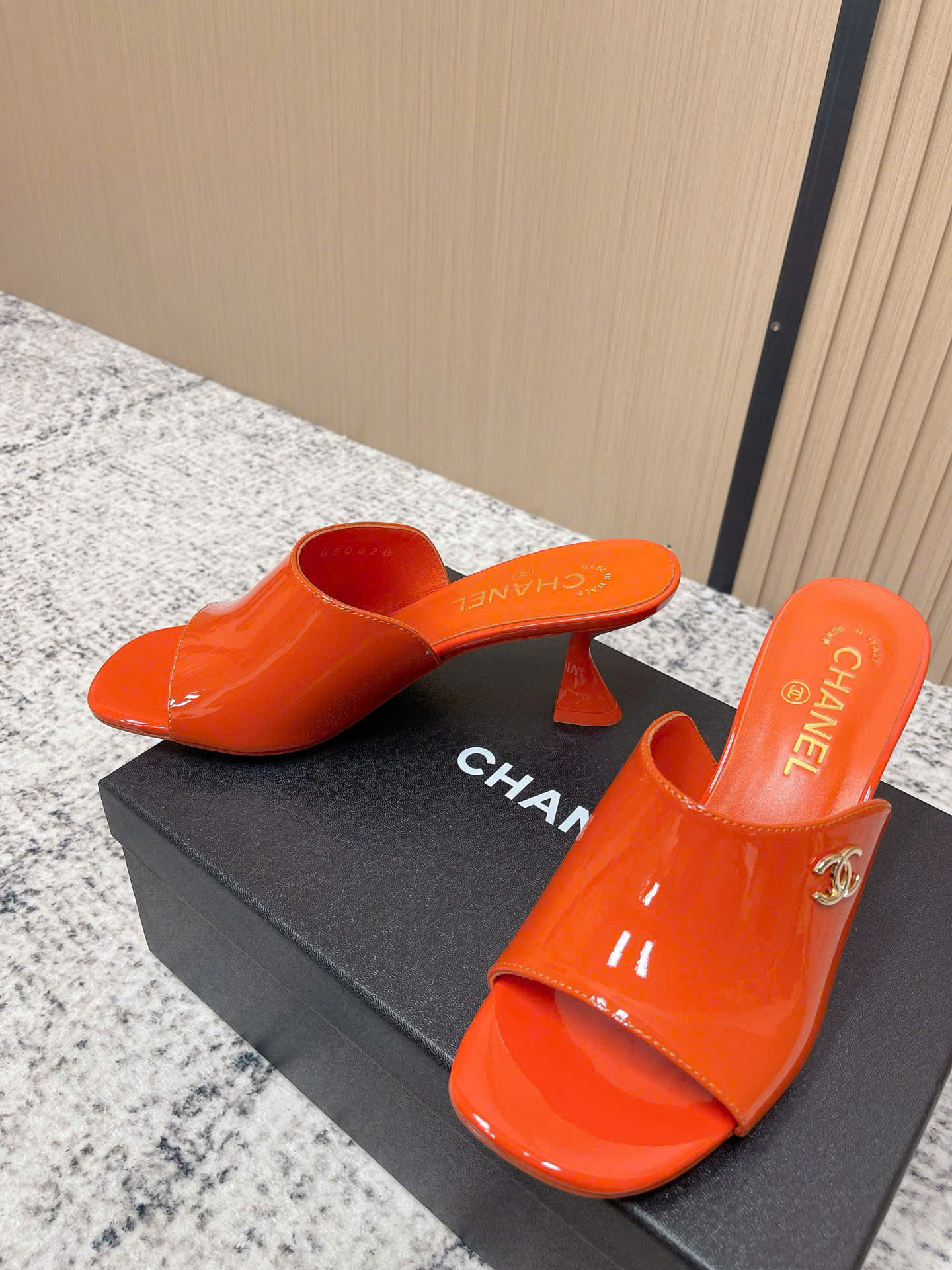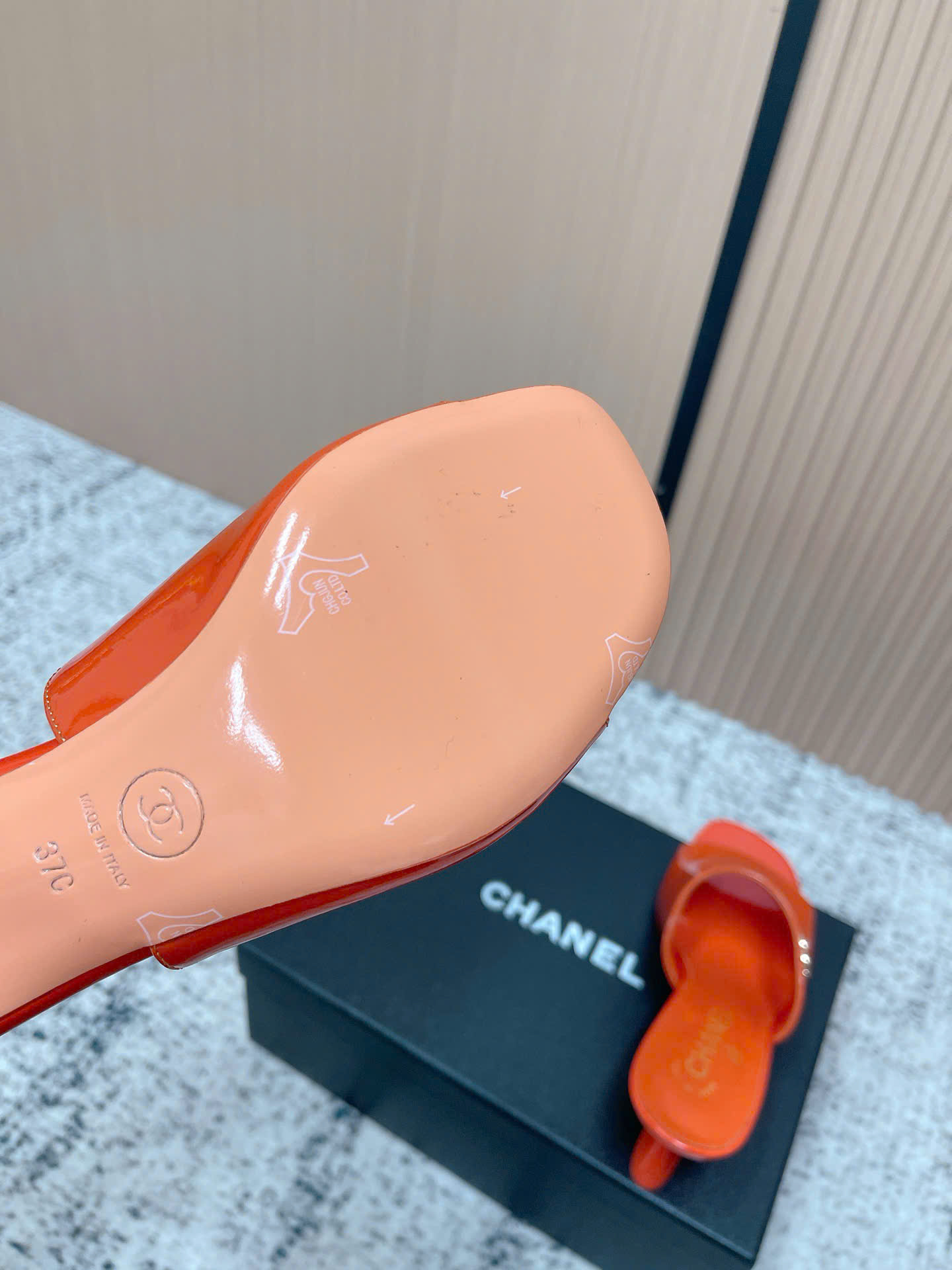 - Tên Sản Phẩm: Dép Chanel Patent Leather Double C Slide – Siêu cấp - màu cam