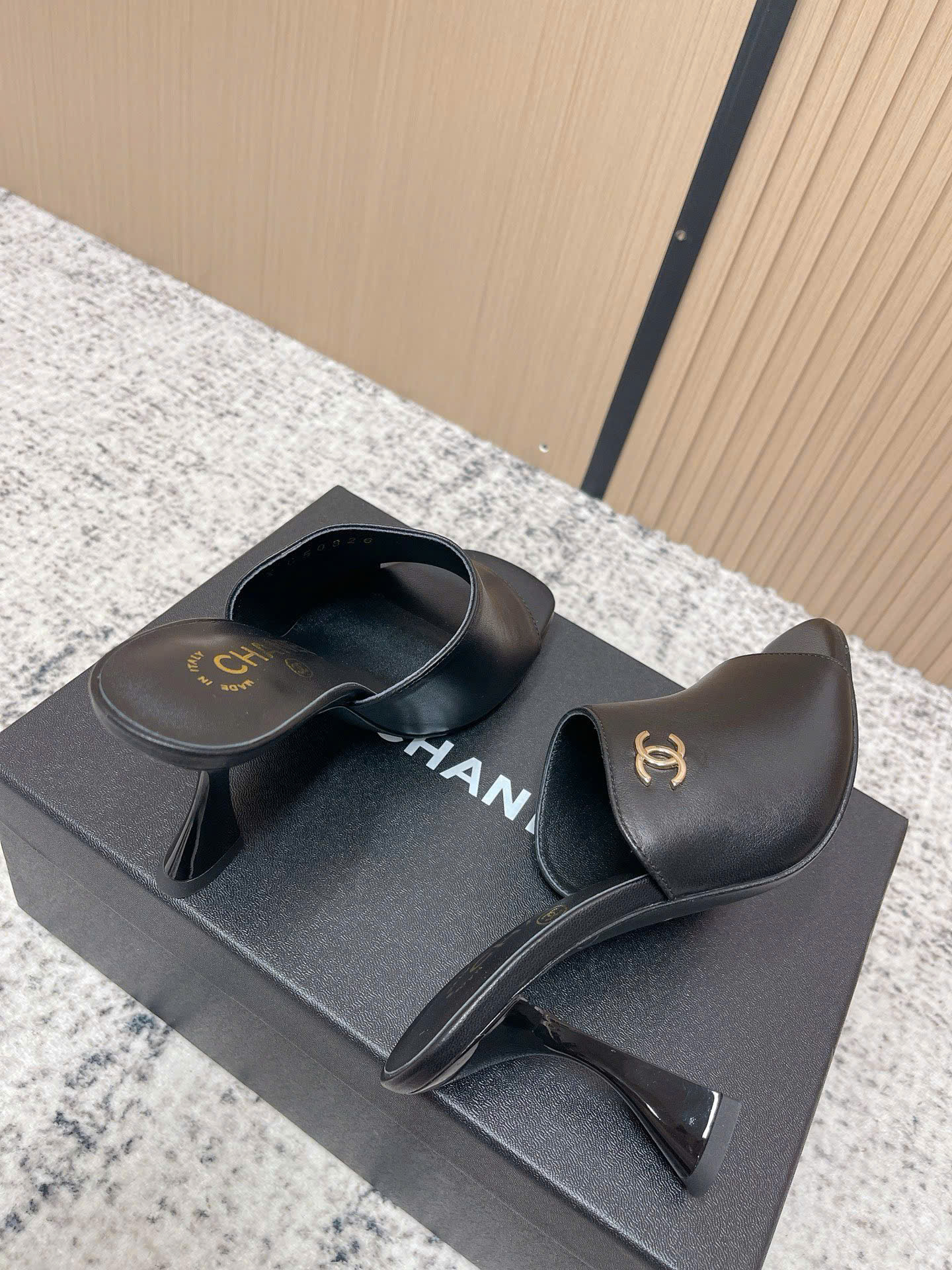 • Tên sản phẩm: Dép Chanel Patent Leather Double C Slide – Siêu cấp