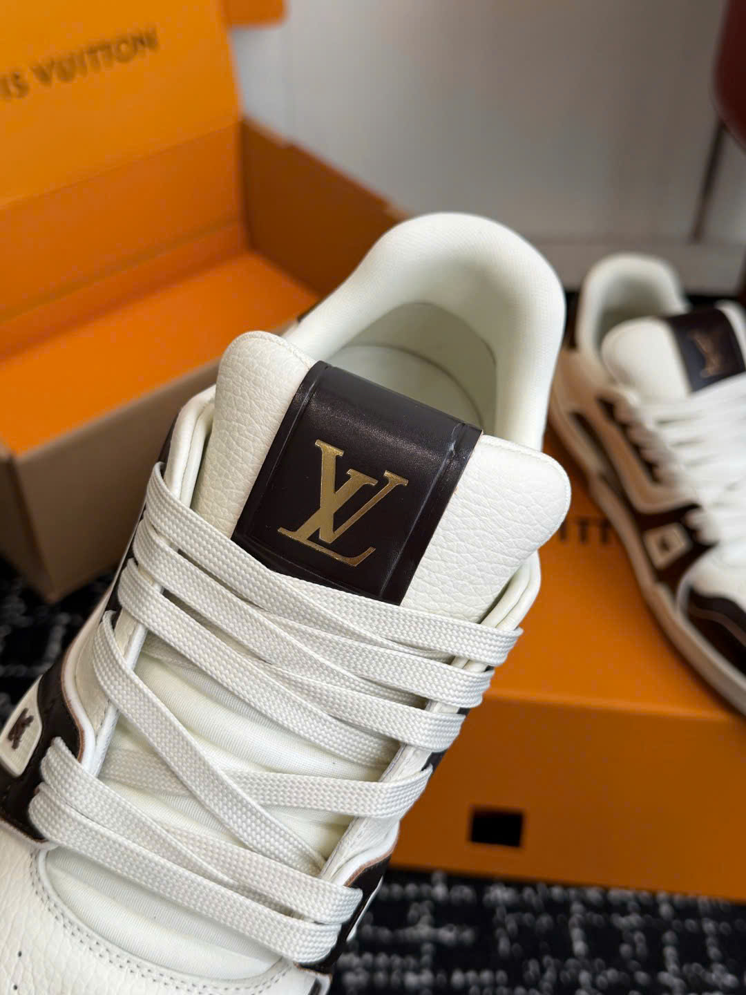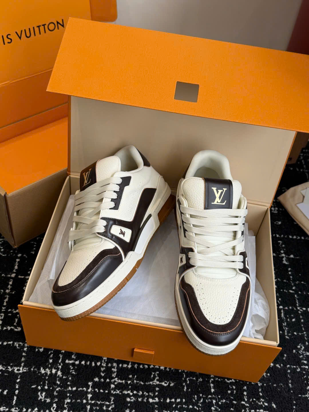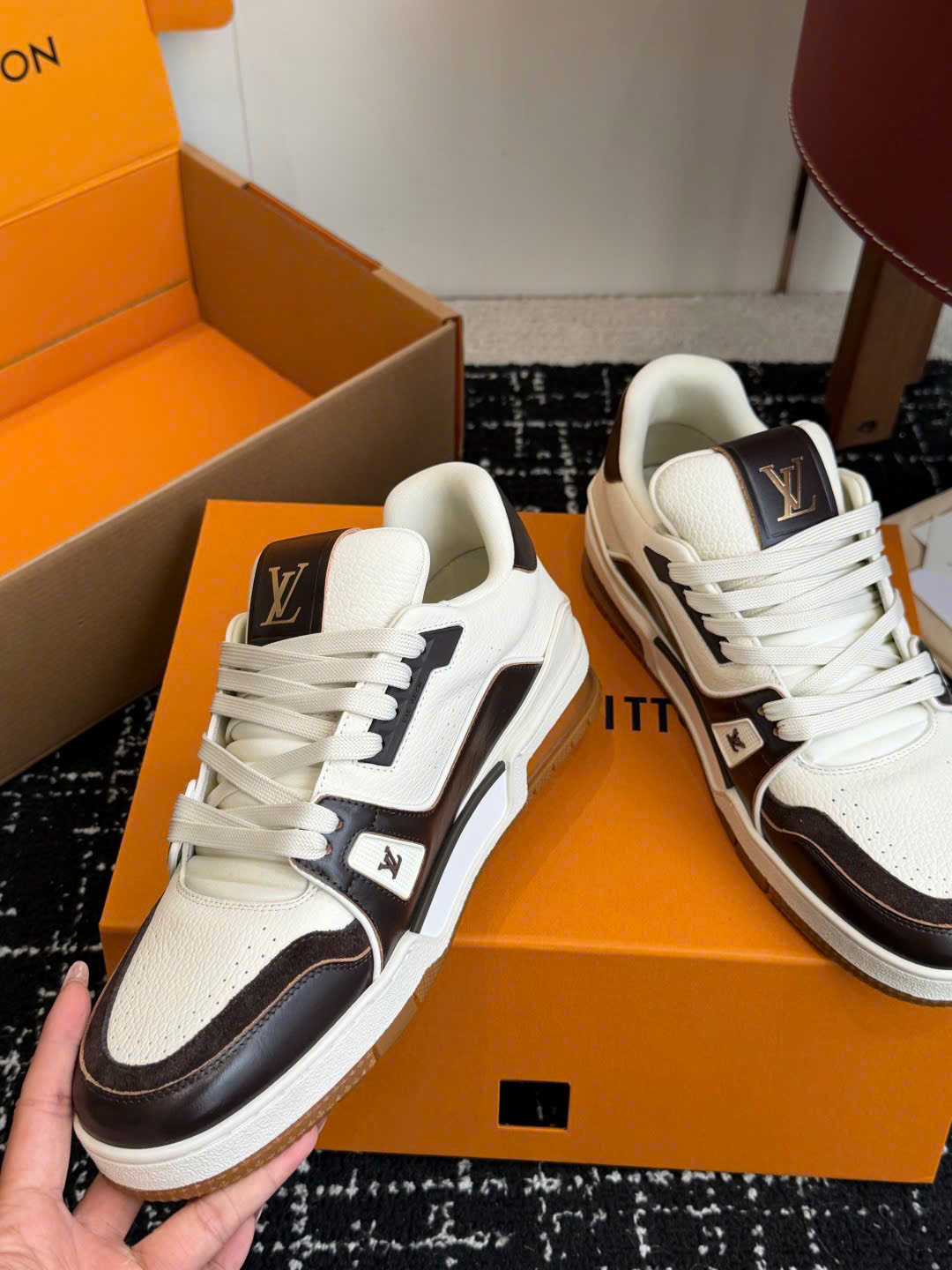 Giày LV Trainer Low-Top Leather Sneakers – Unisex – Siêu VIP - màu nâu