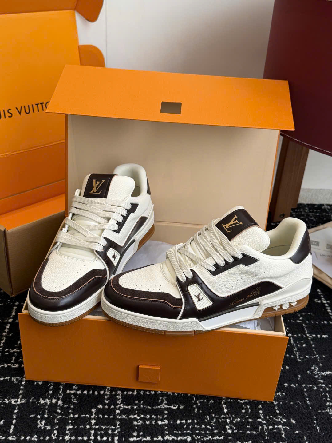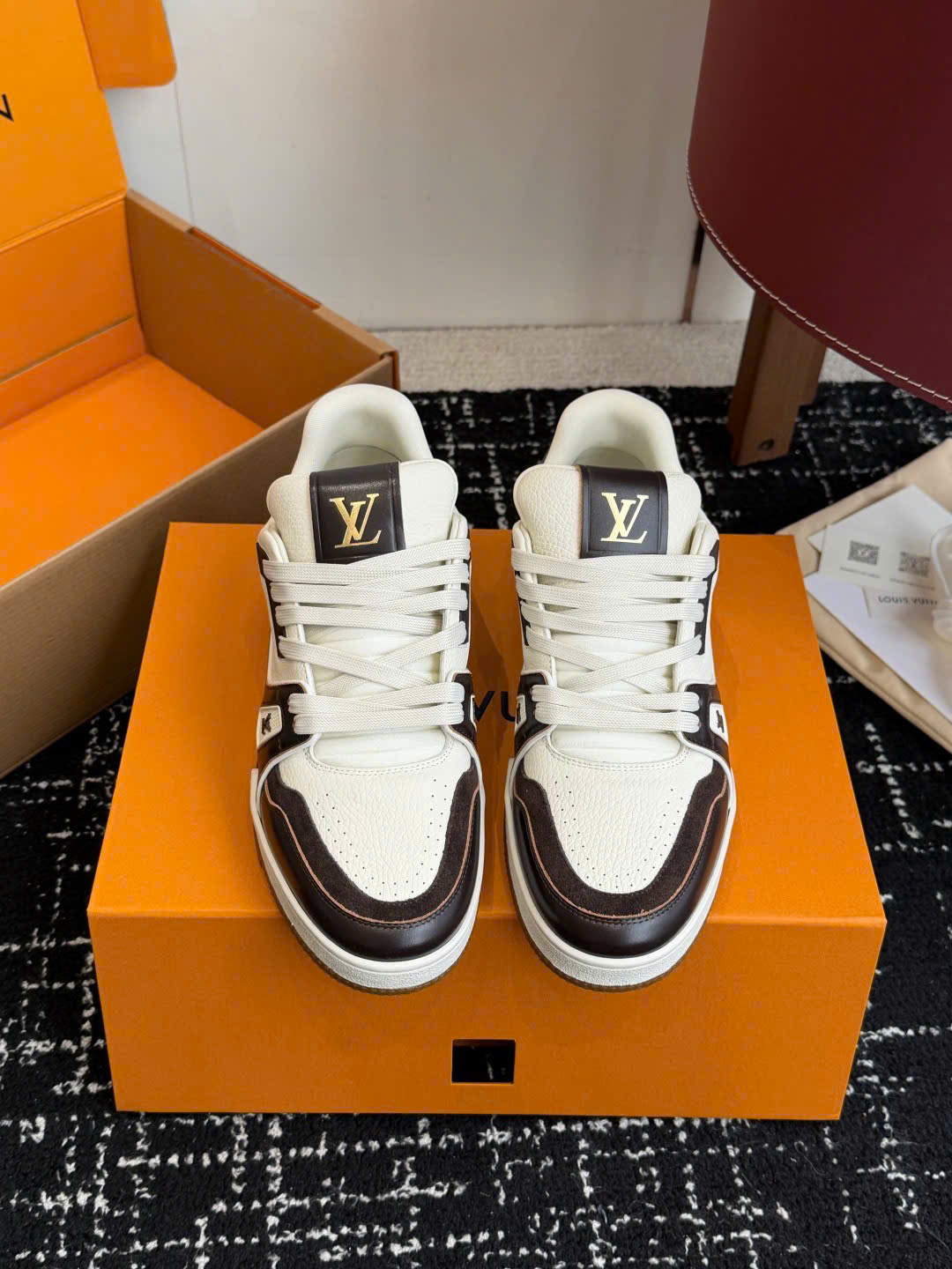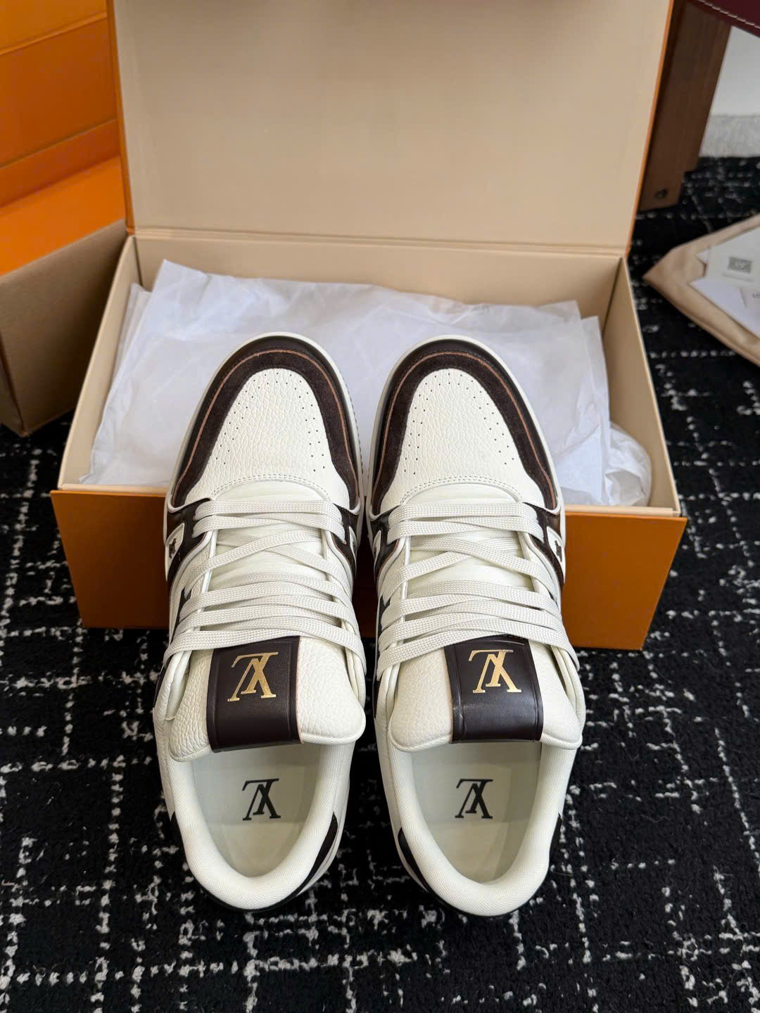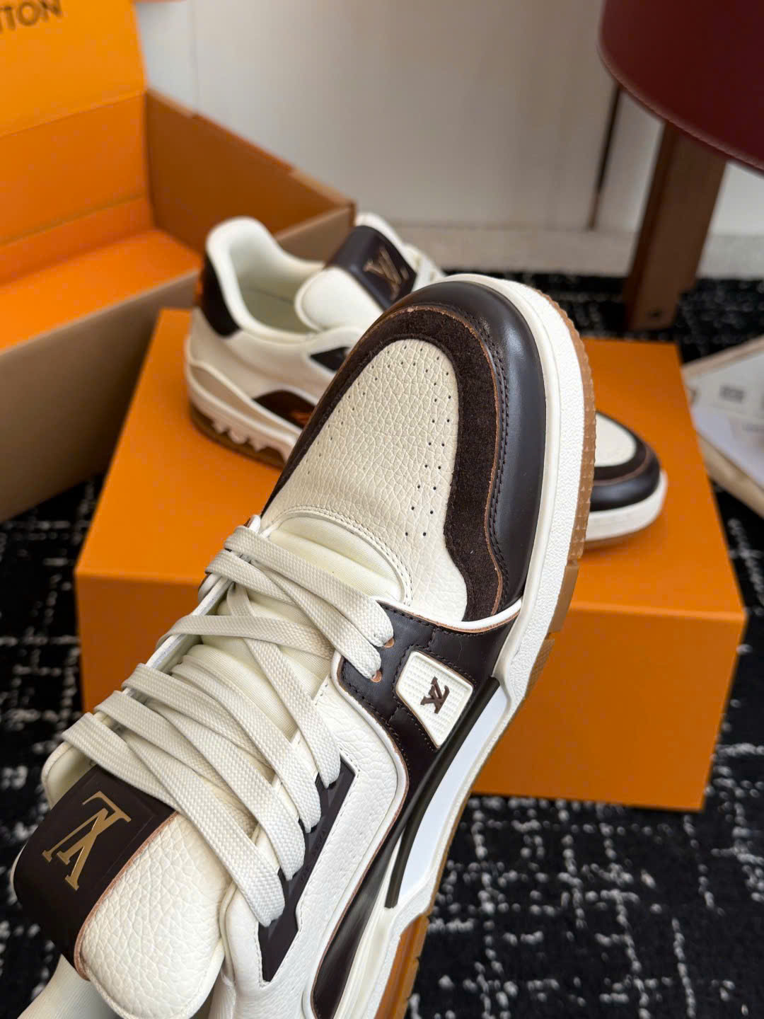 Giày LV Trainer Low-Top Leather Sneakers – Unisex – Siêu VIP - màu nâu