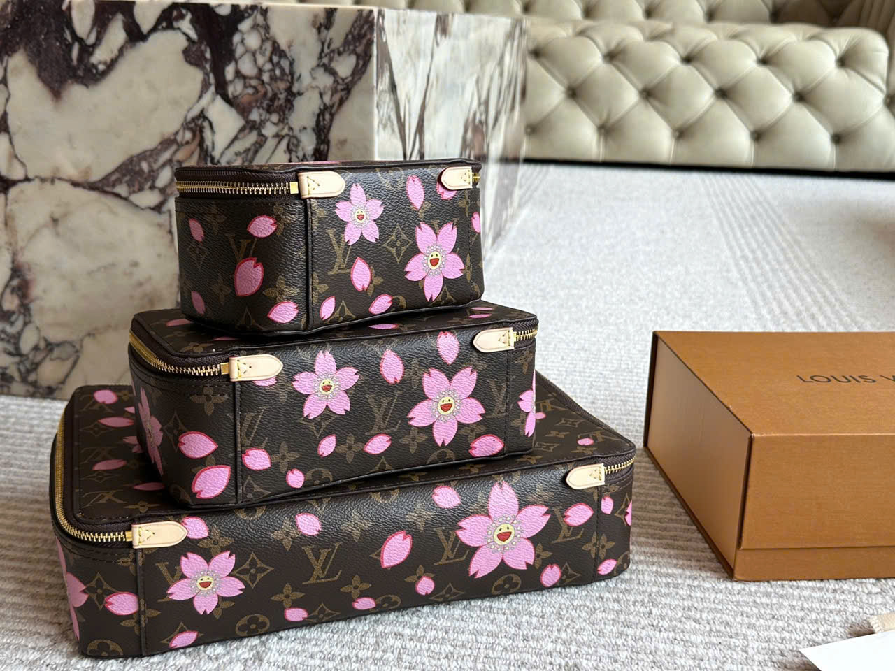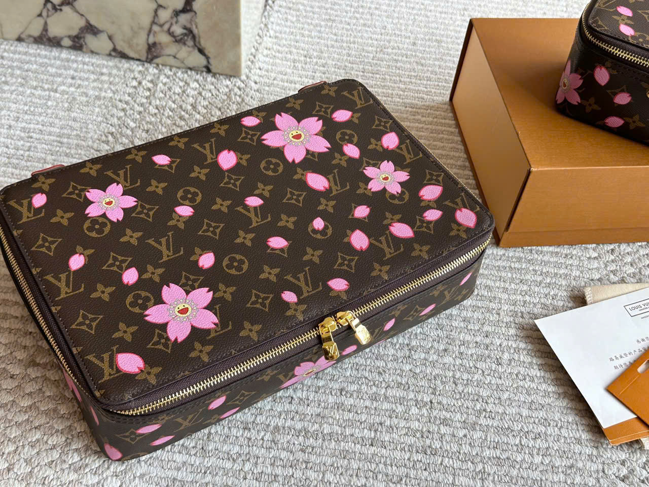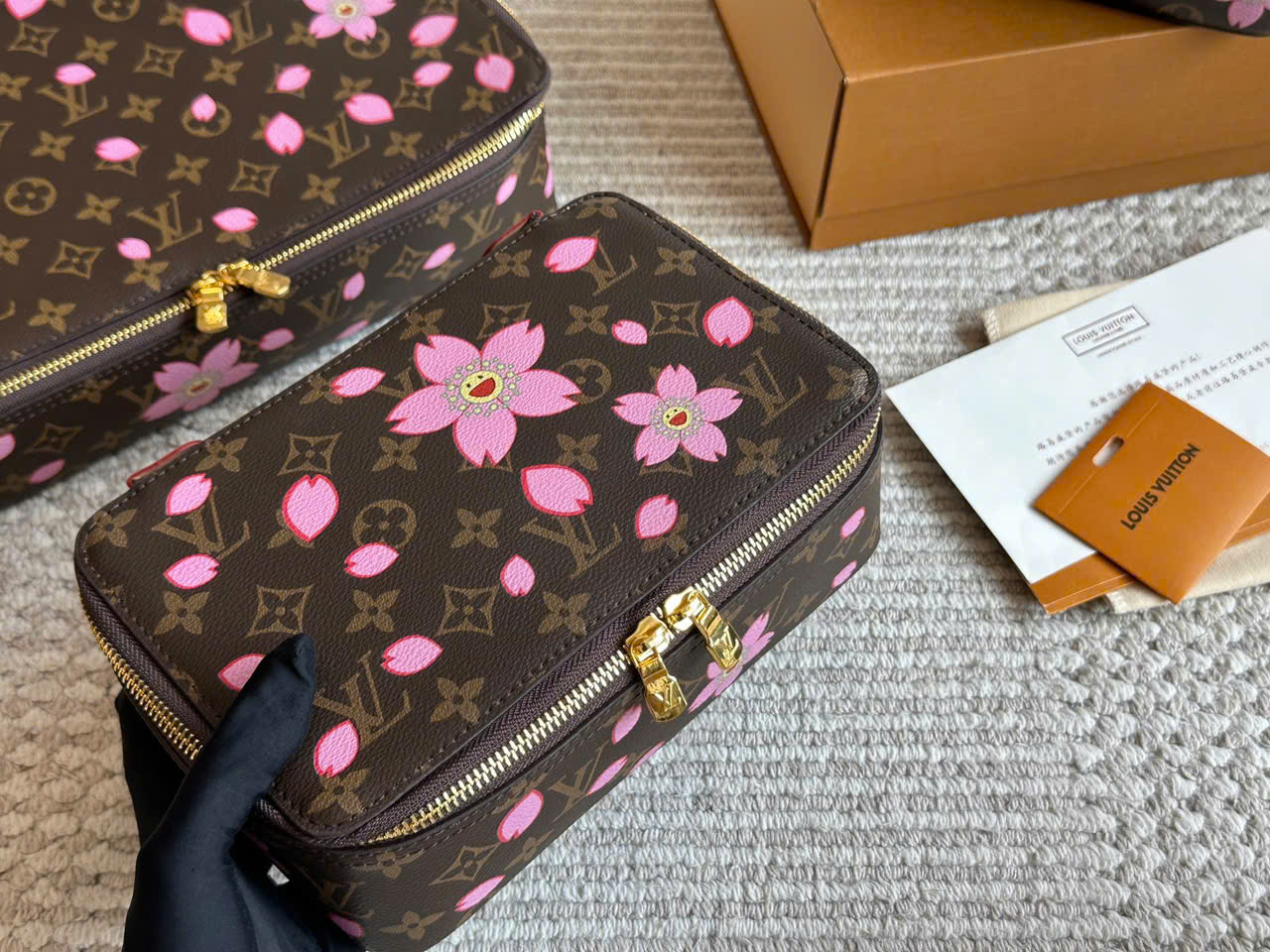 Hộp Trang Sức/Trang Điểm LV Monogram Hoa Anh Đào Fullbox 3 Size