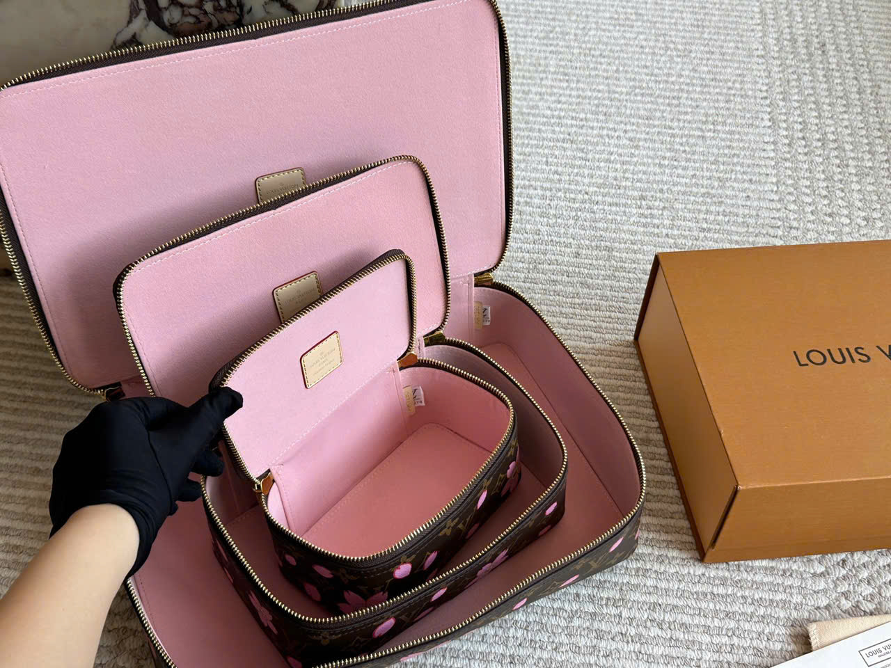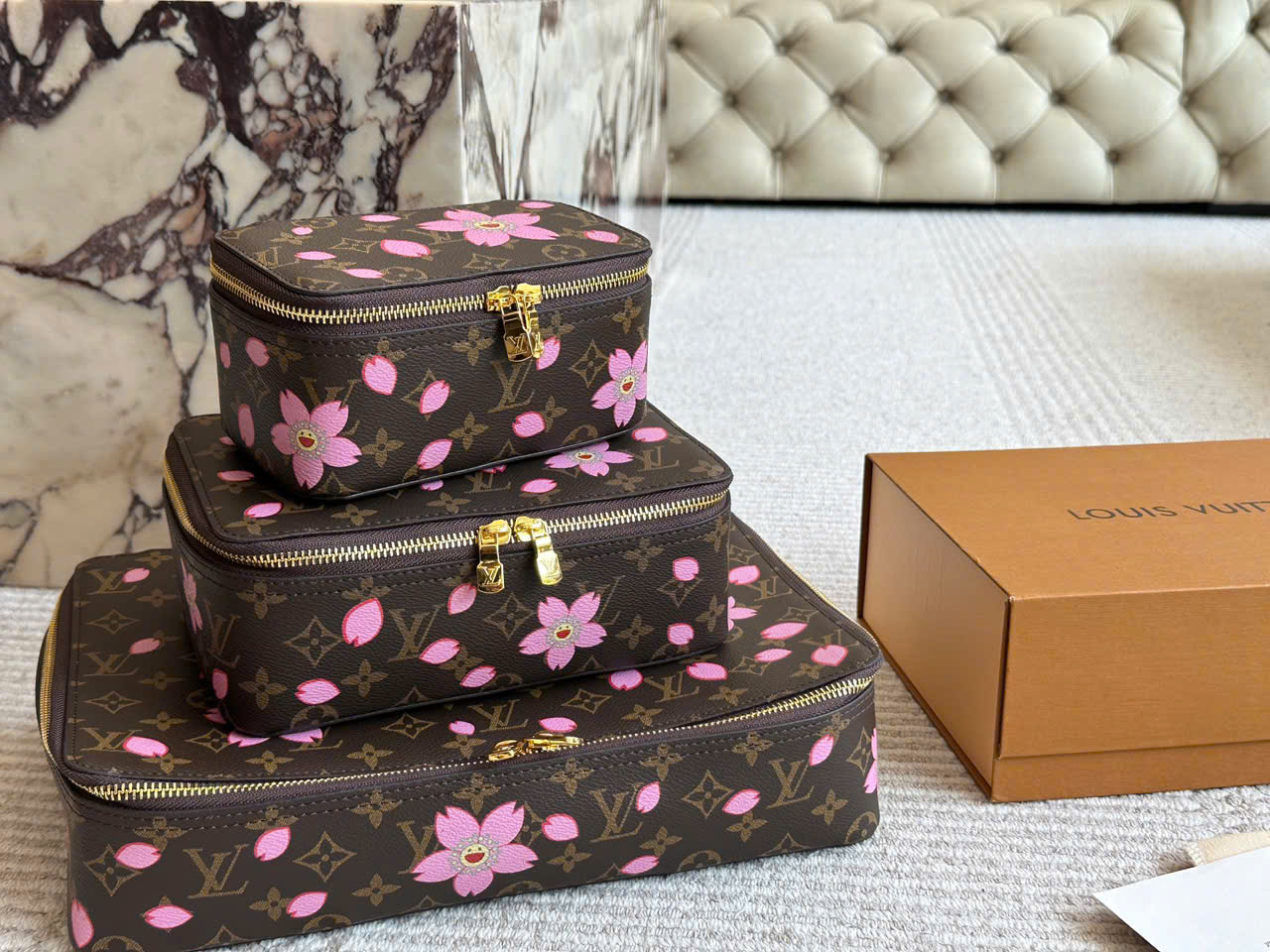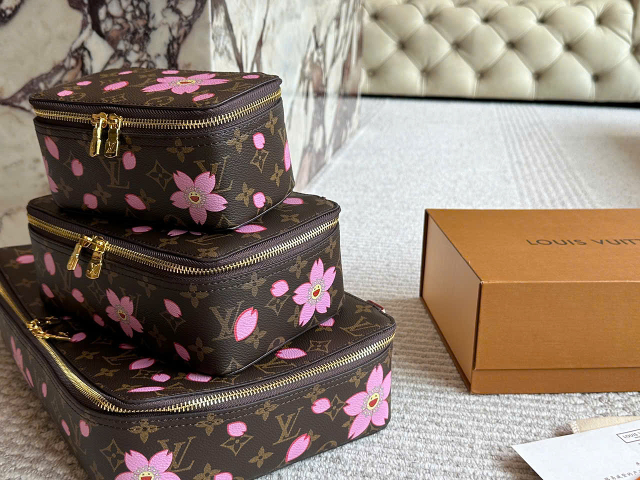 Hộp Trang Sức/Trang Điểm LV Monogram Hoa Anh Đào Fullbox 3 Size