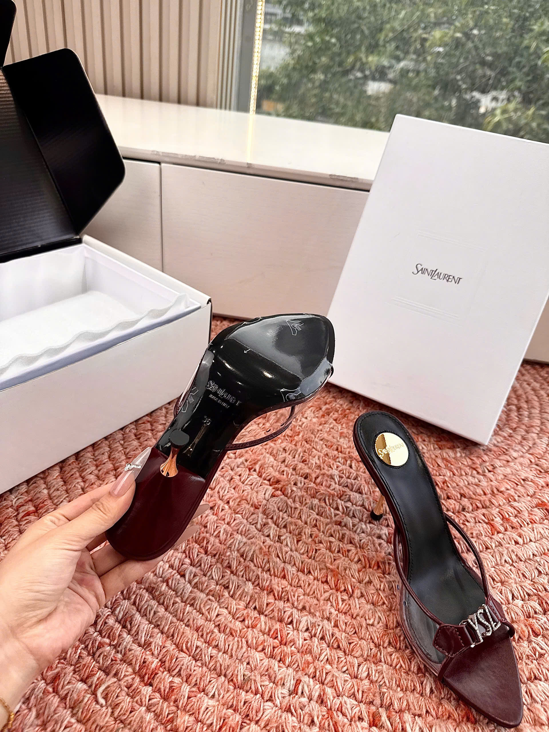 • Tên sản phẩm: Sandal cao gót Saint Laurent mũi nhọn dây mảnh 26SS – G013