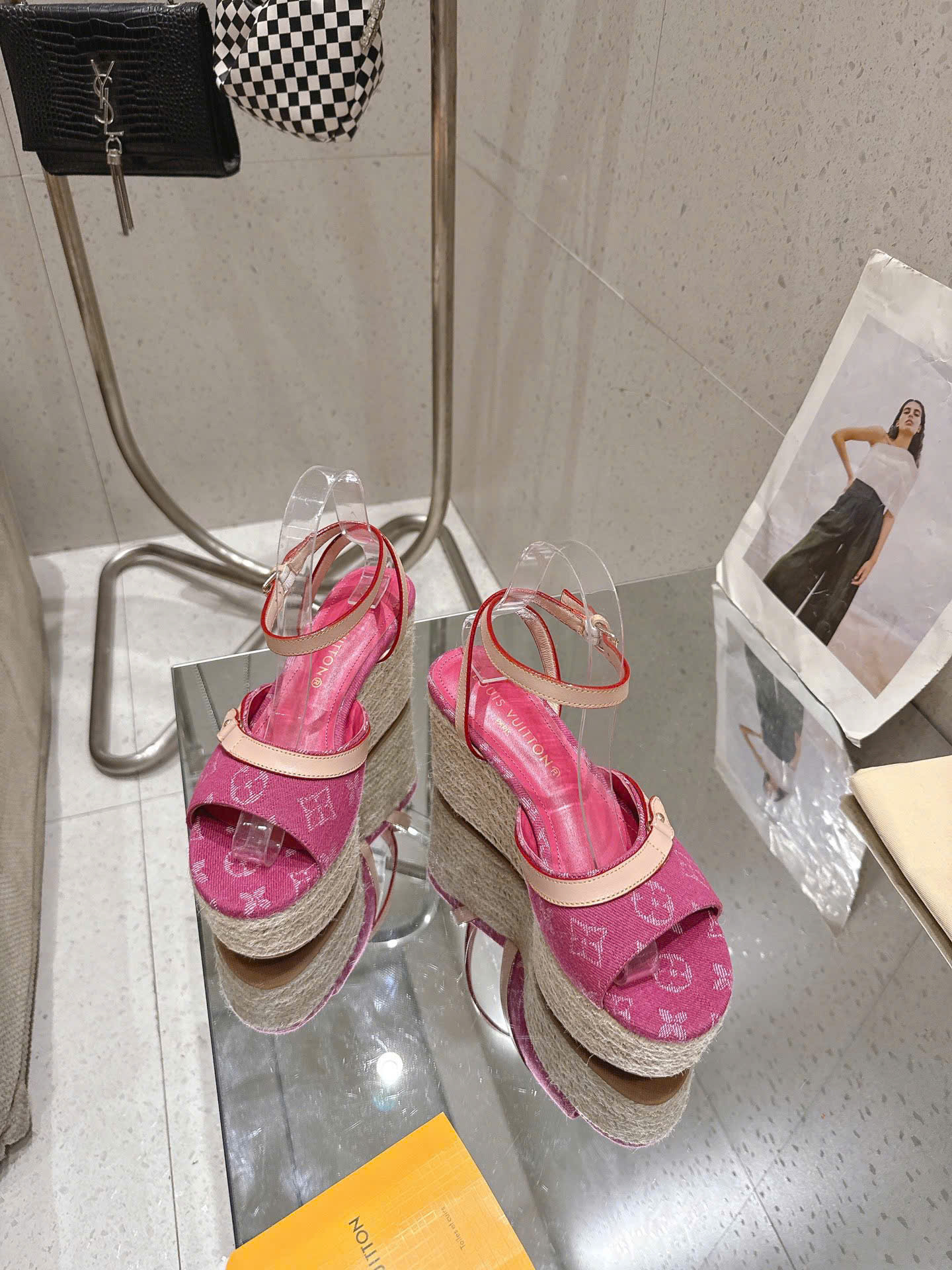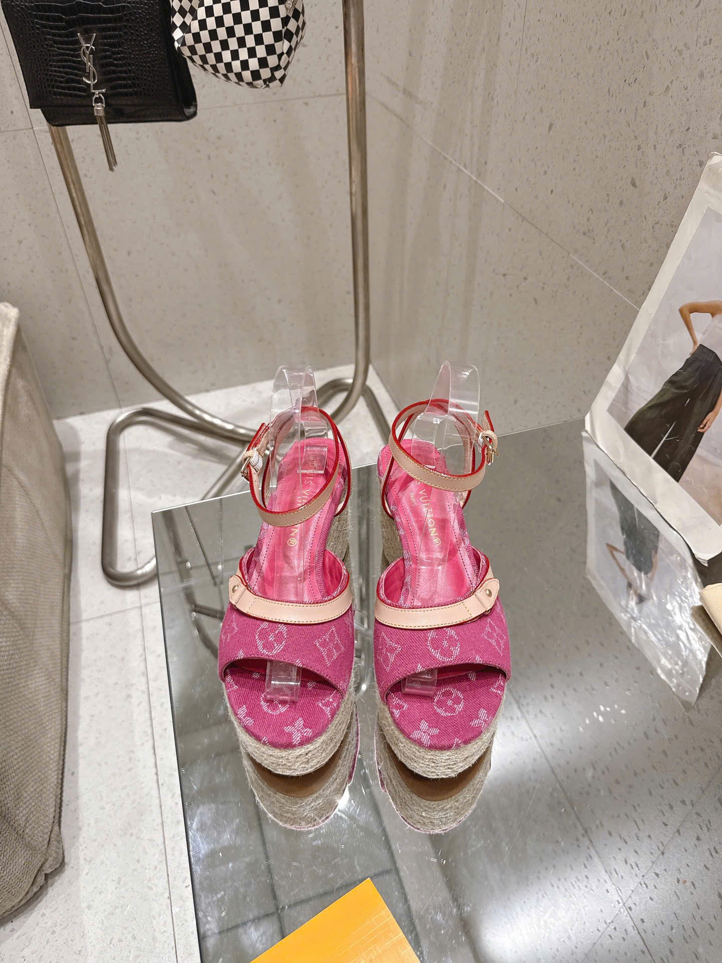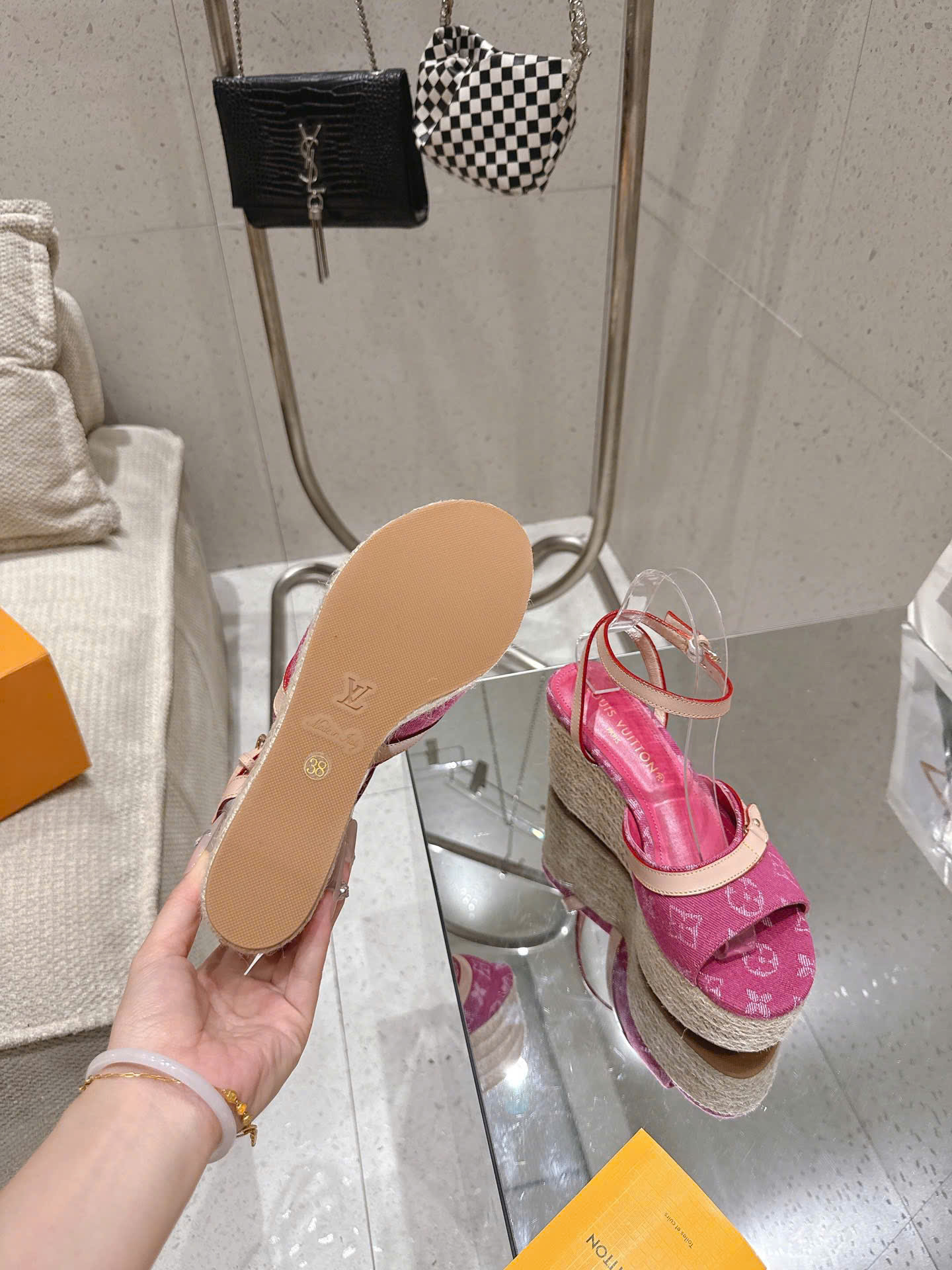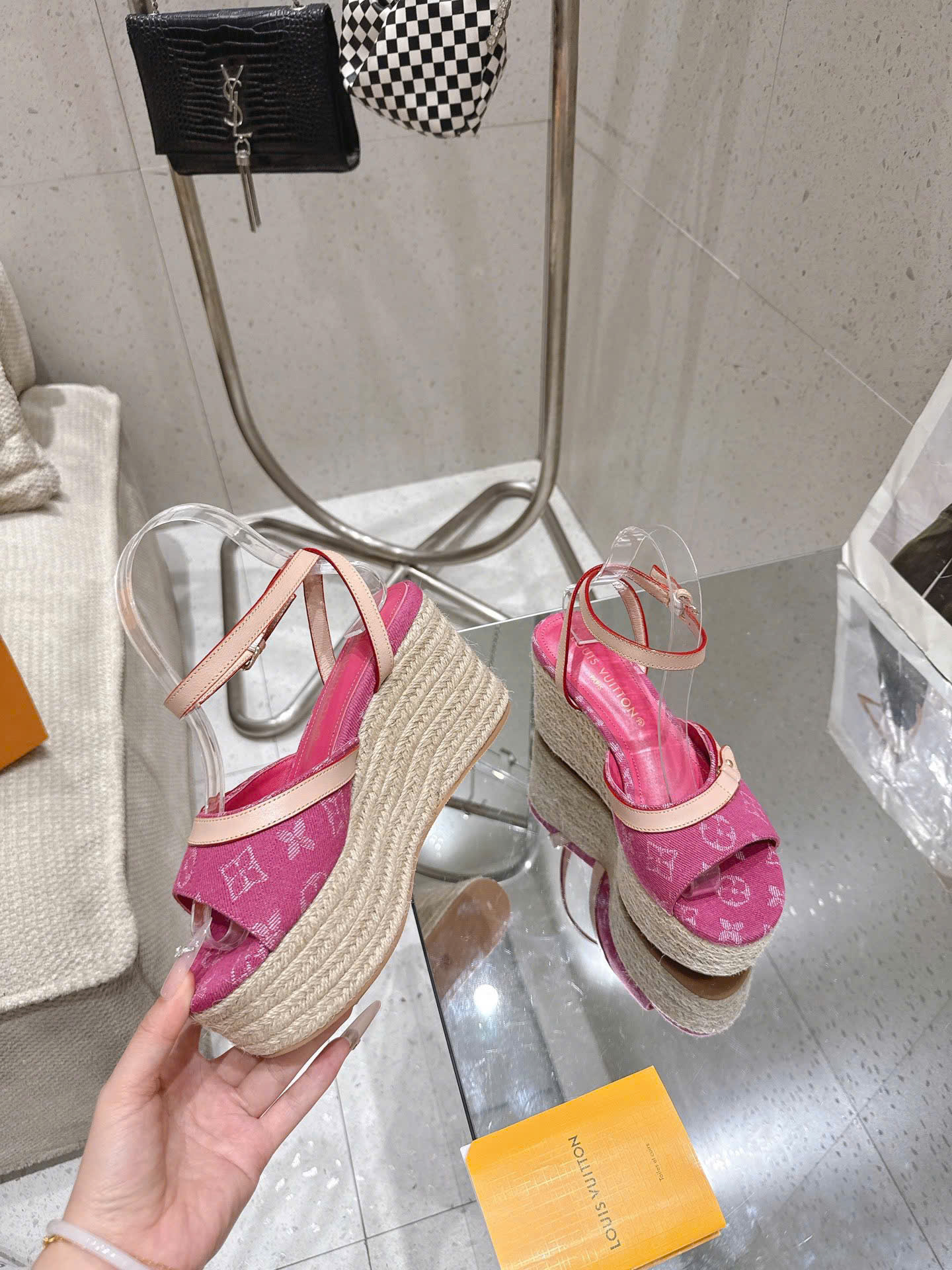 - Tên Sản Phẩm: Sandal LV Helios Wedge Denim Monogram – Siêu cấp - hồng