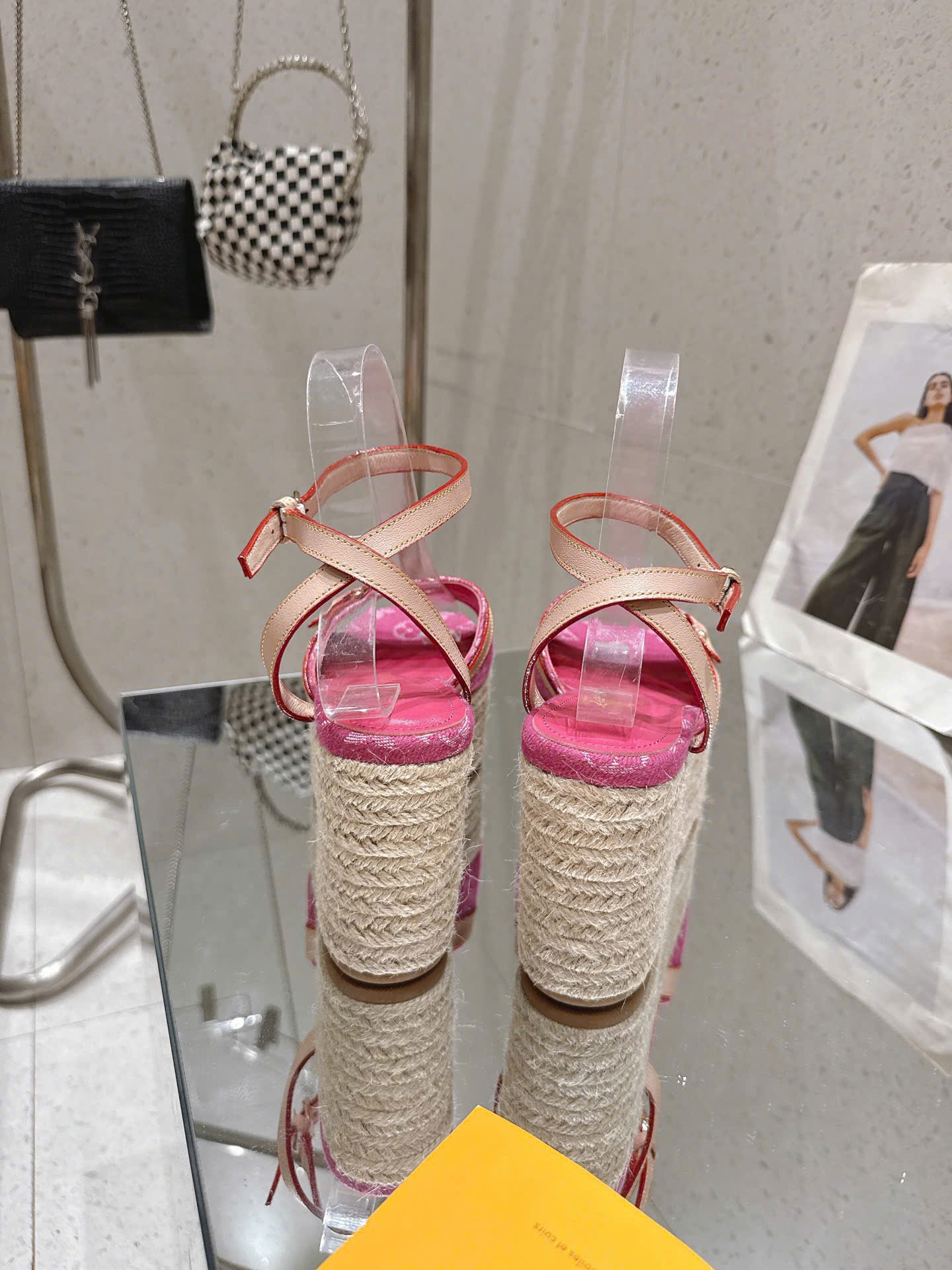 • Đế xuồng bọc dây thừng đan, mang vibe sandal mùa hè cổ điển.