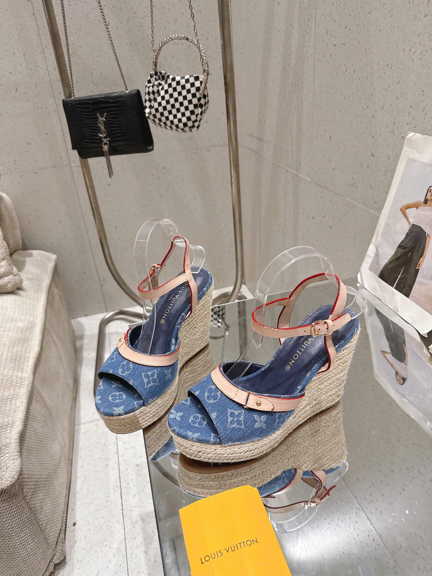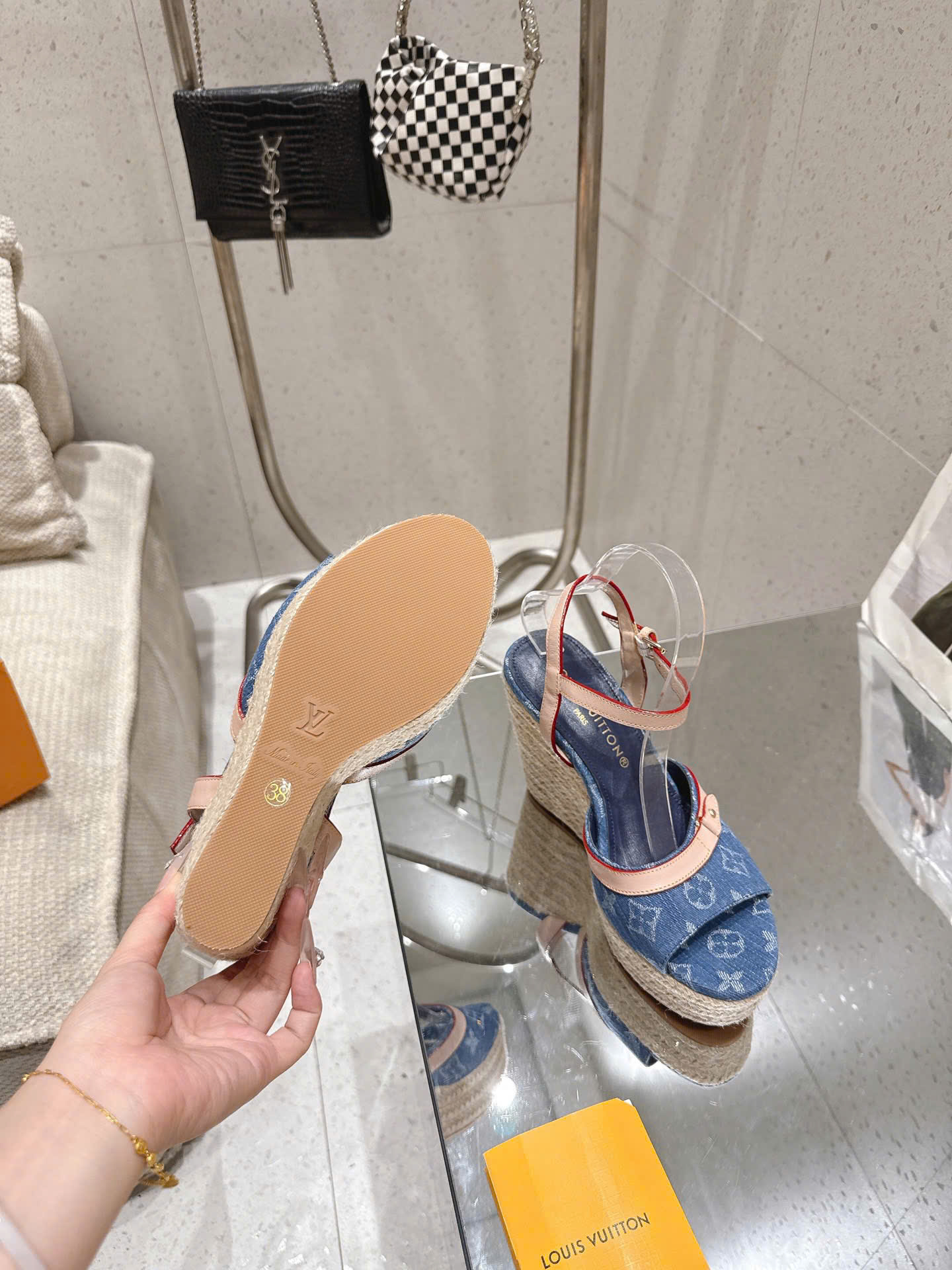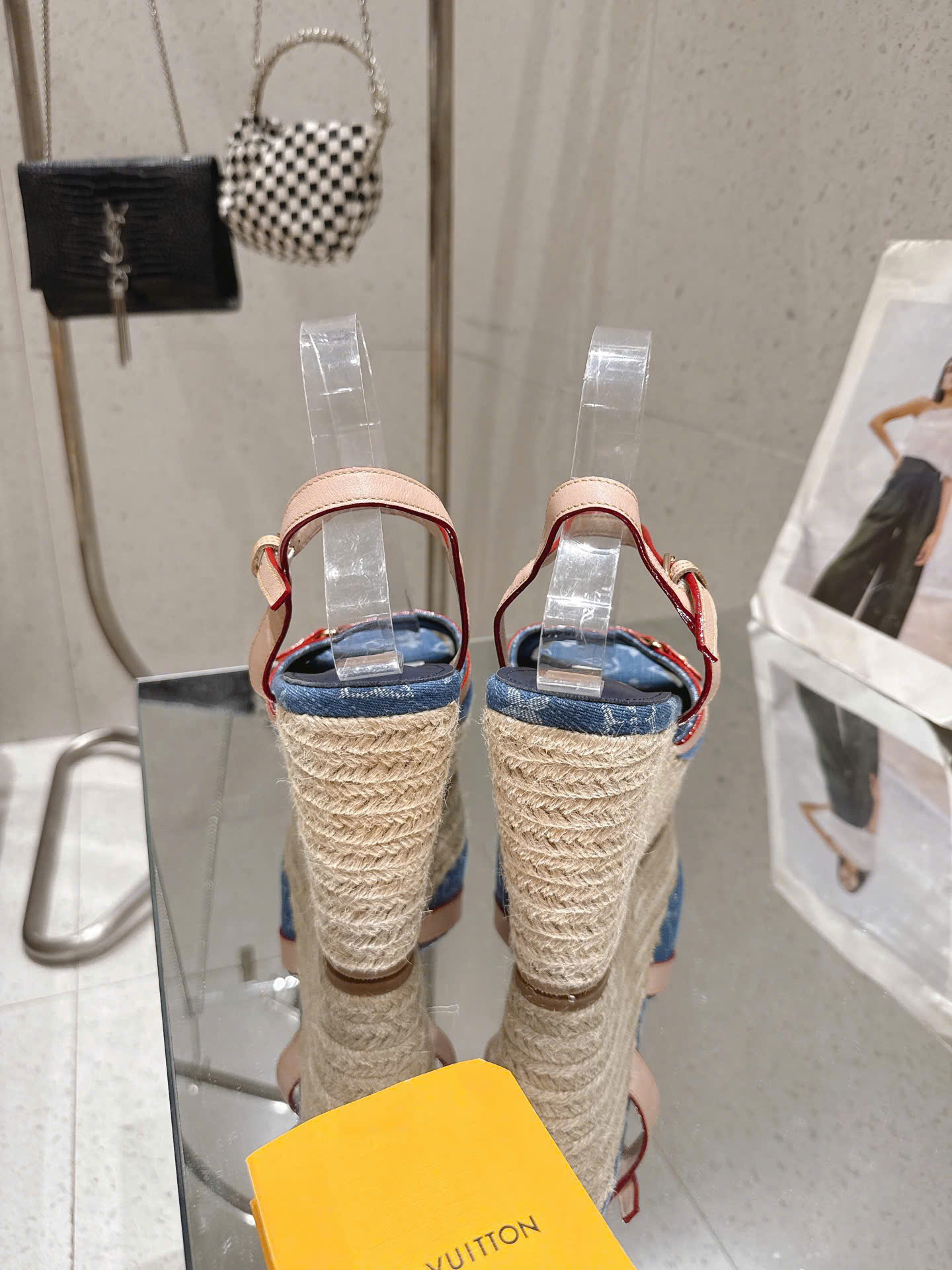 • Tên sản phẩm: Sandal LV Helios Wedge Denim Monogram – Siêu cấp