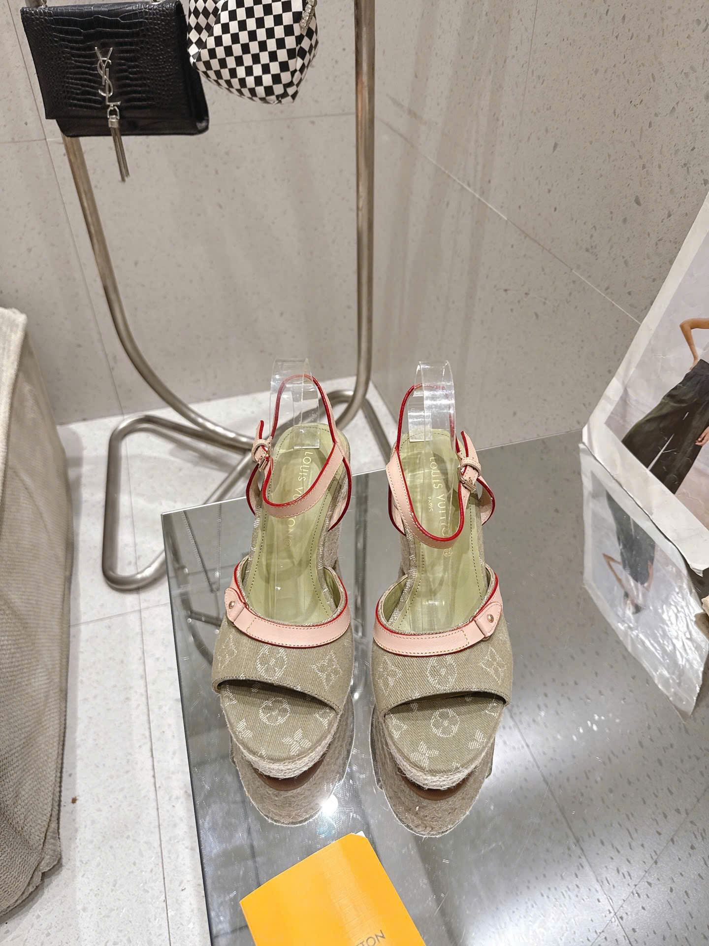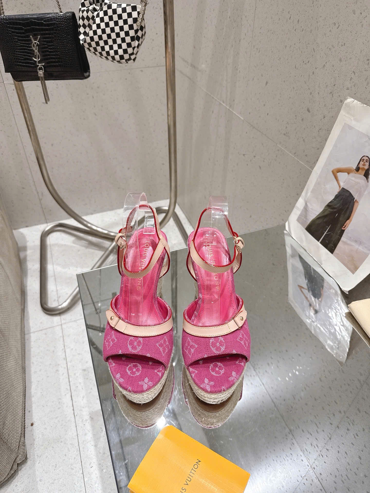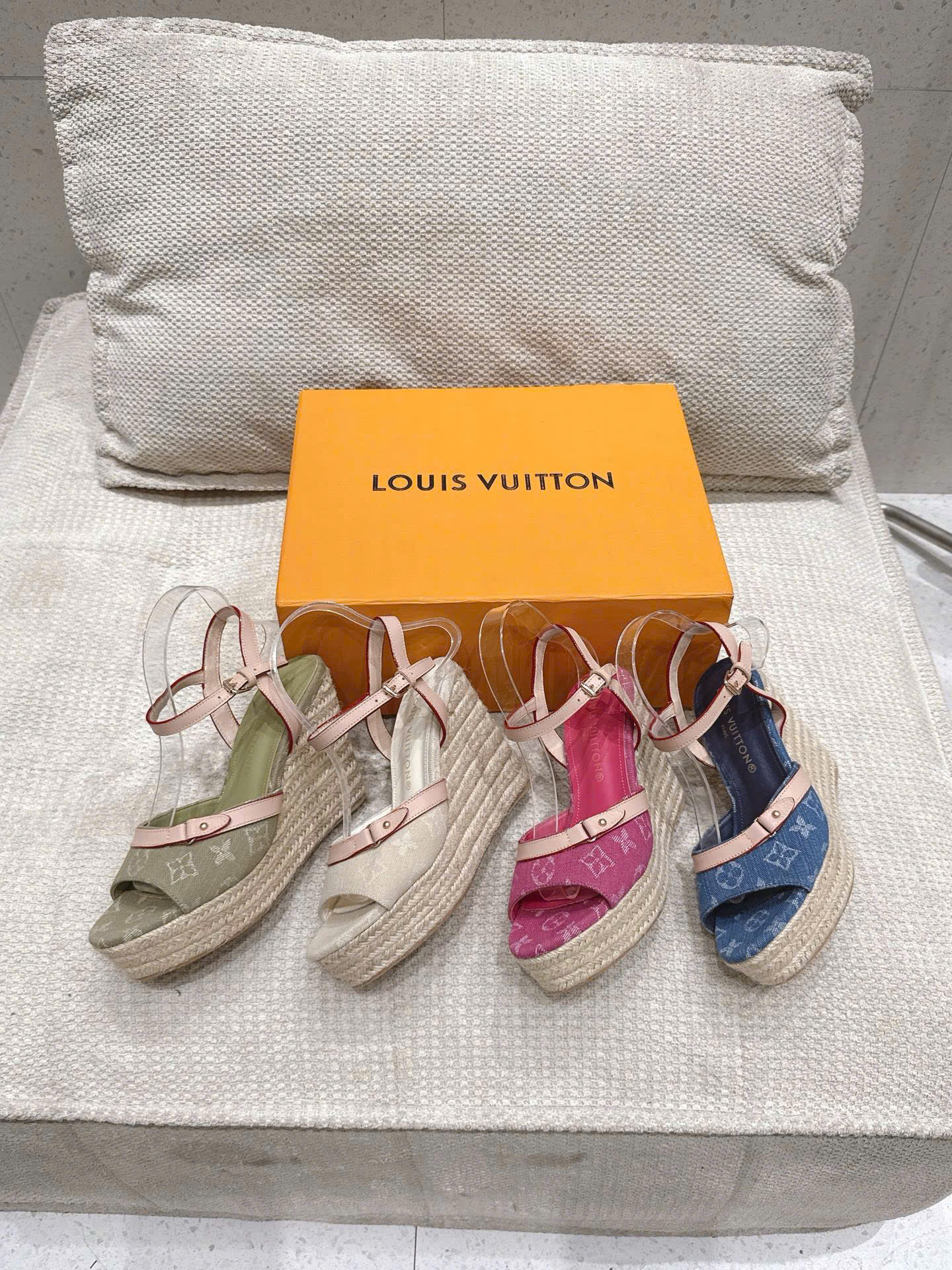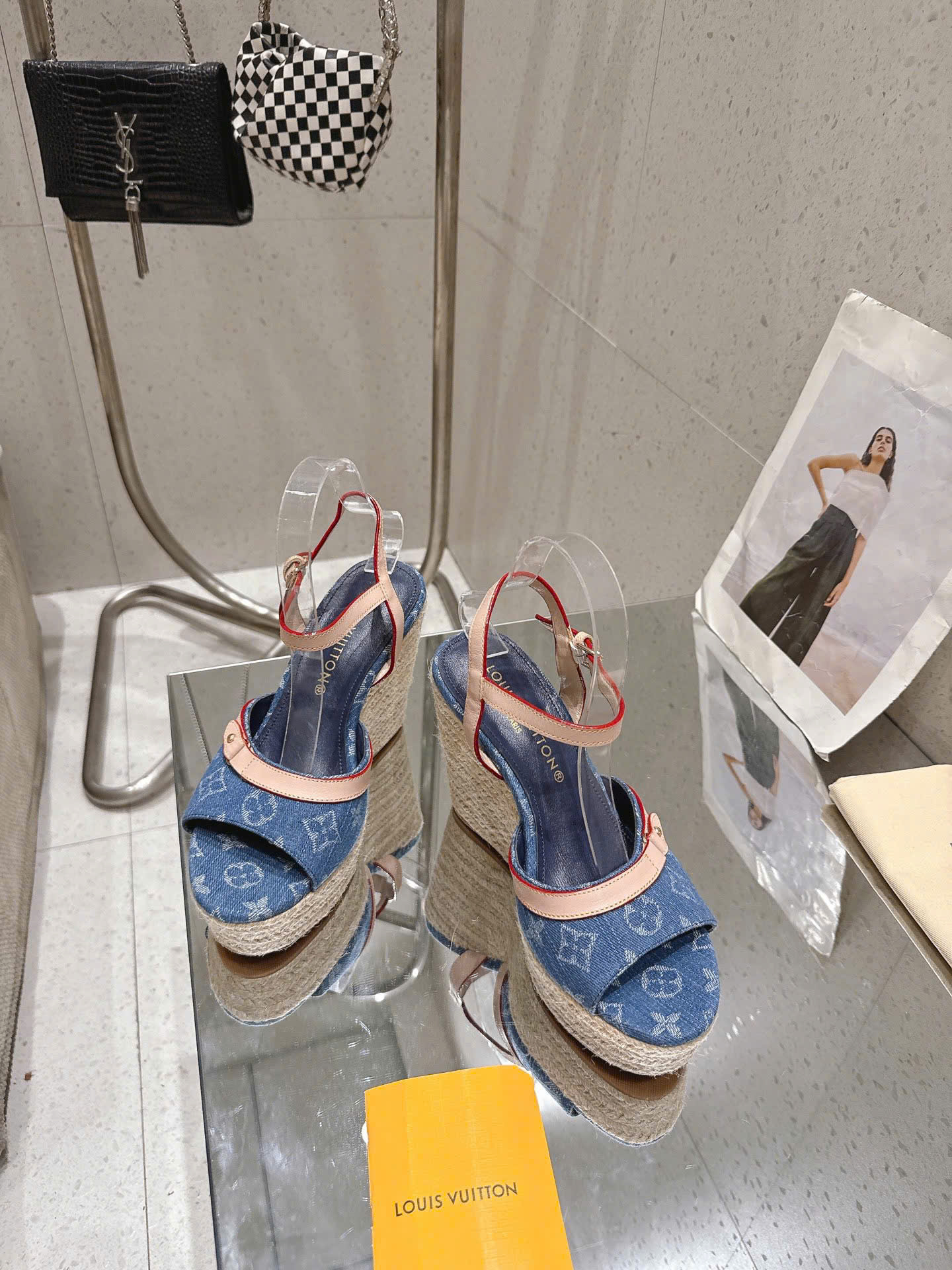 • Tên sản phẩm: Sandal LV Helios Wedge Denim Monogram – Siêu cấp