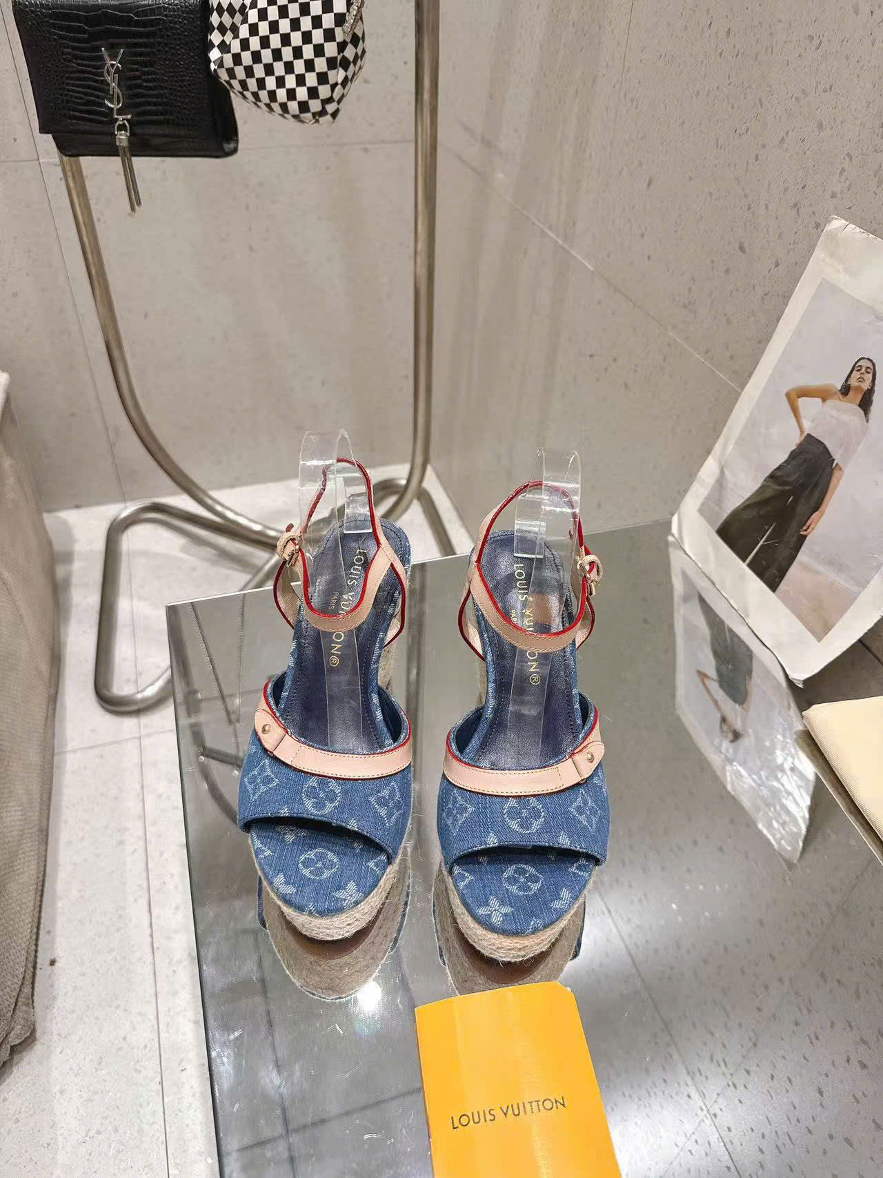 Sandal LV Helios Wedge Denim Monogram – Siêu cấp - xanh