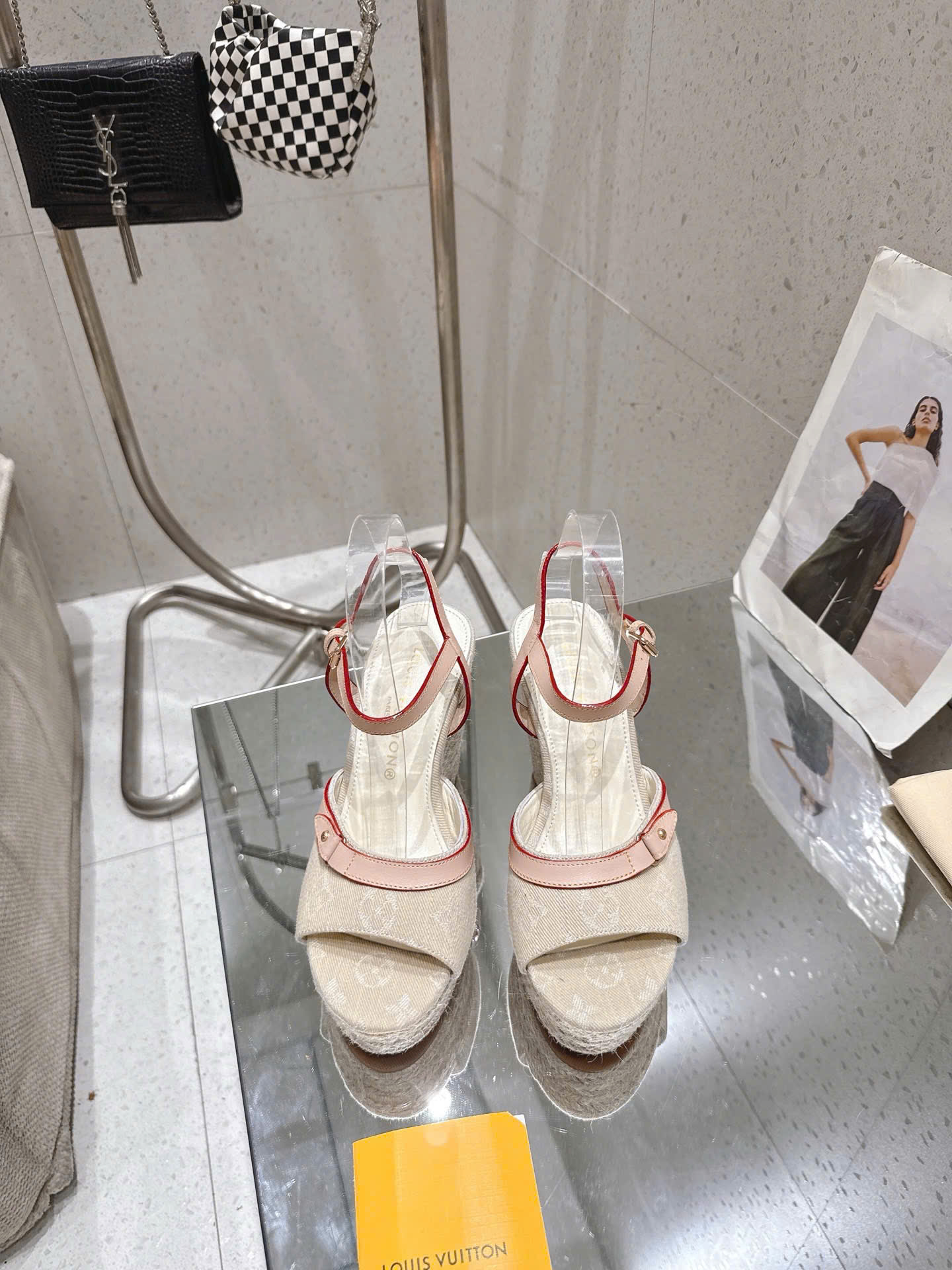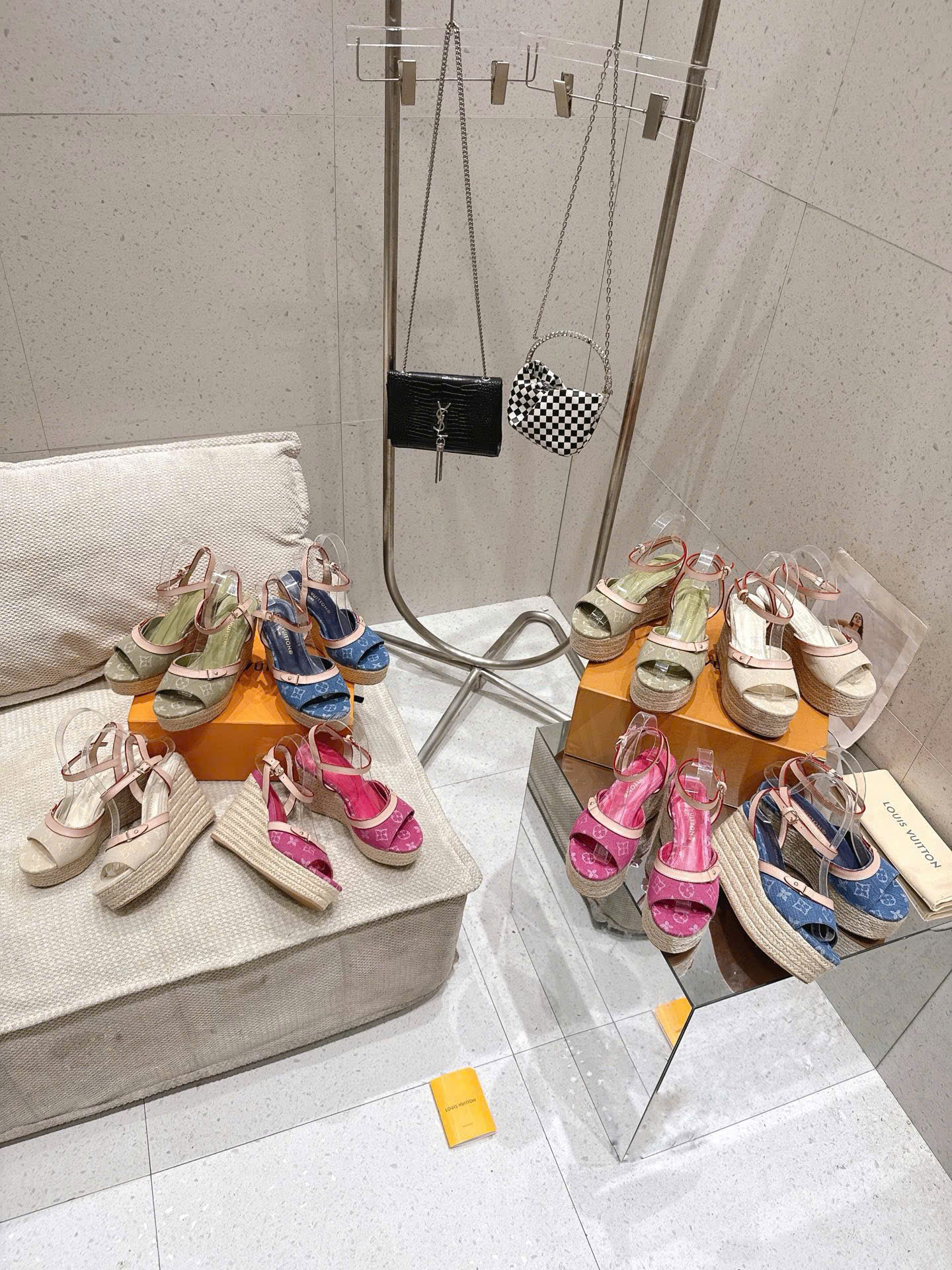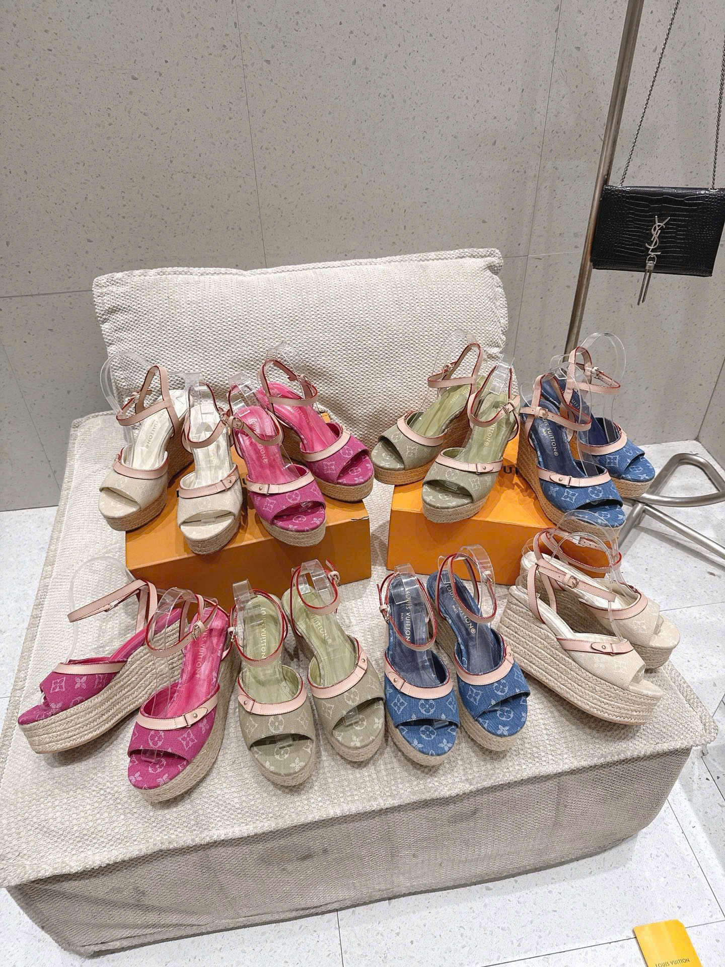 - Tên Sản Phẩm: Sandal LV Helios Wedge Denim Monogram – Siêu cấp