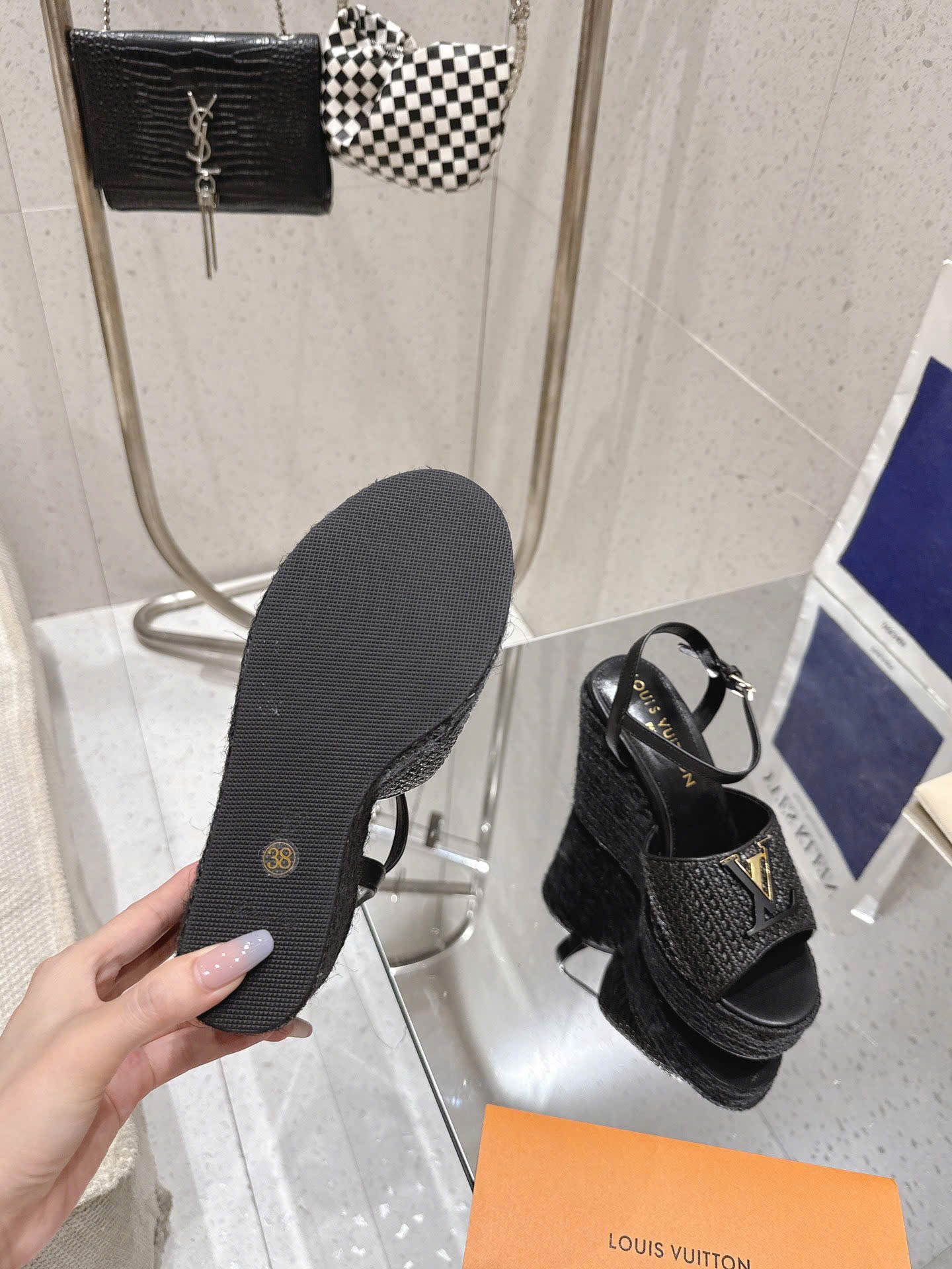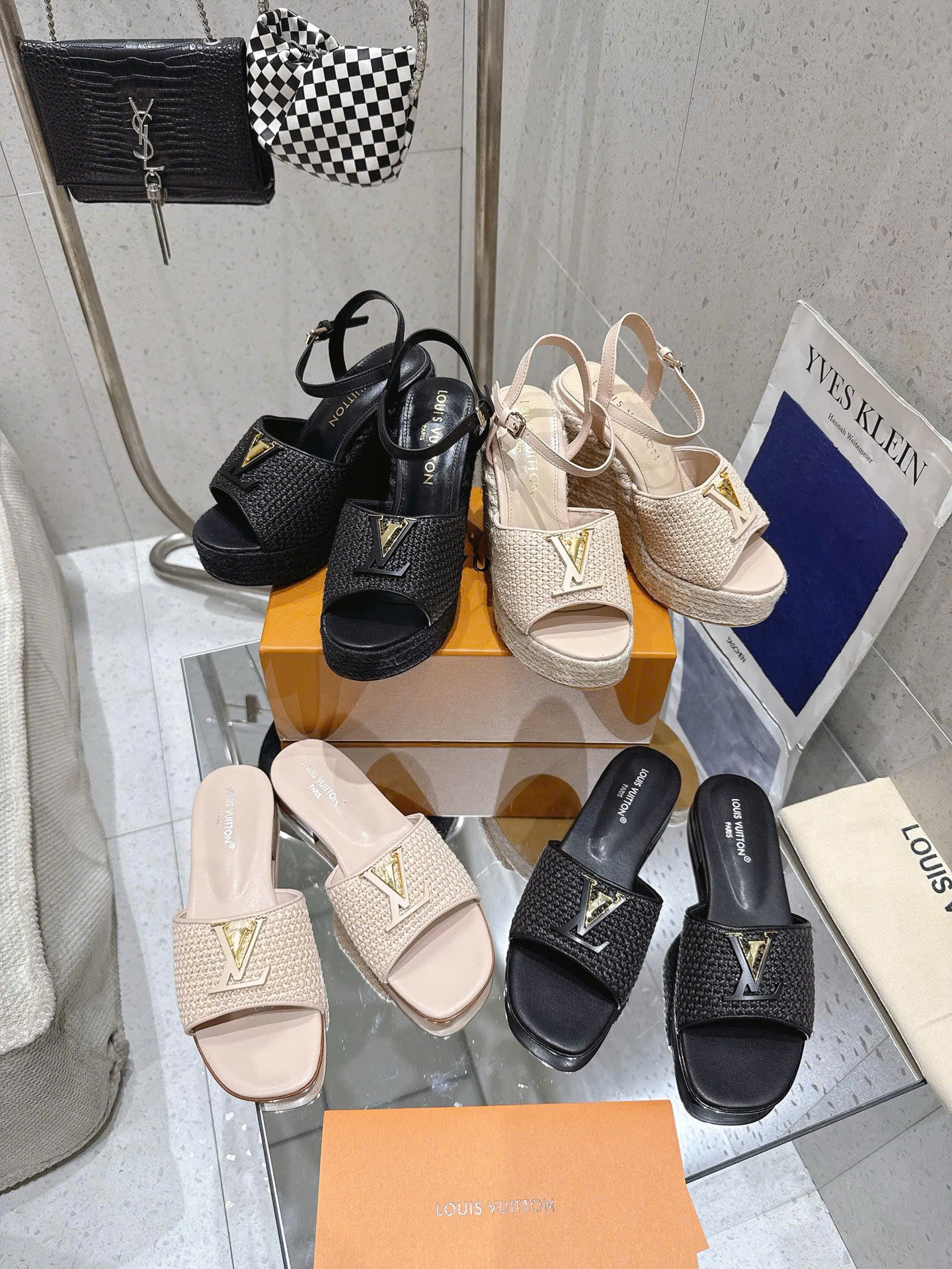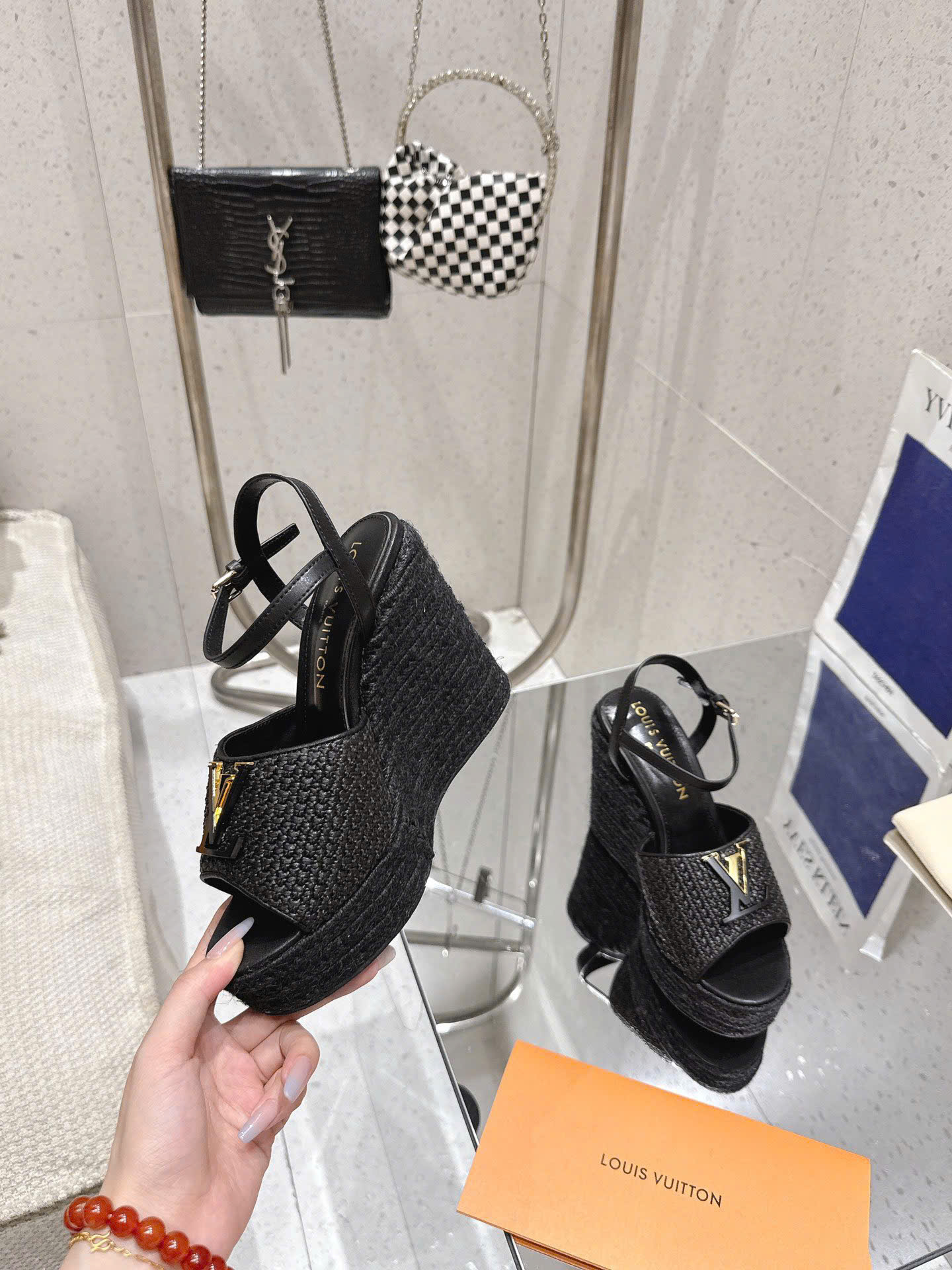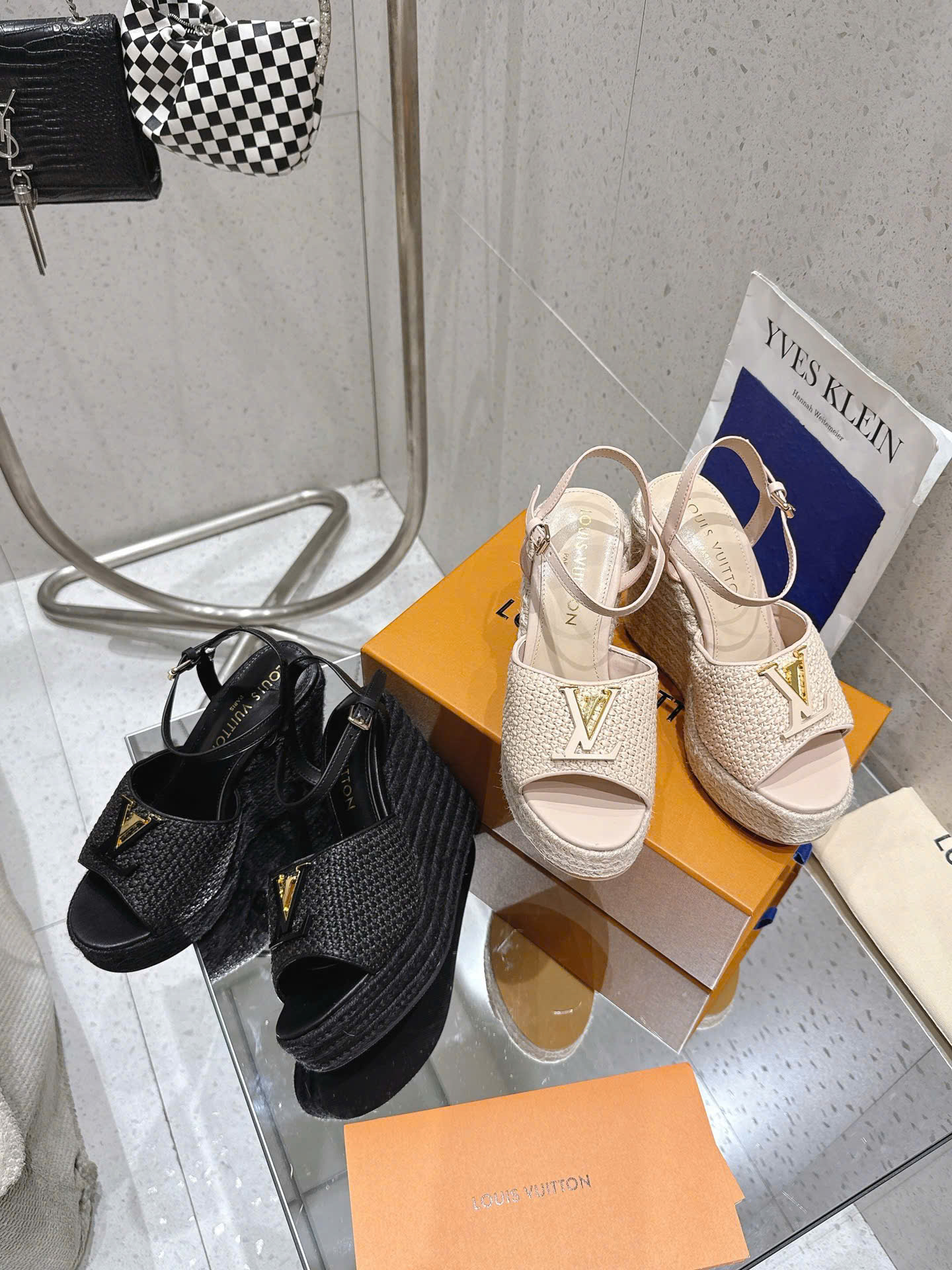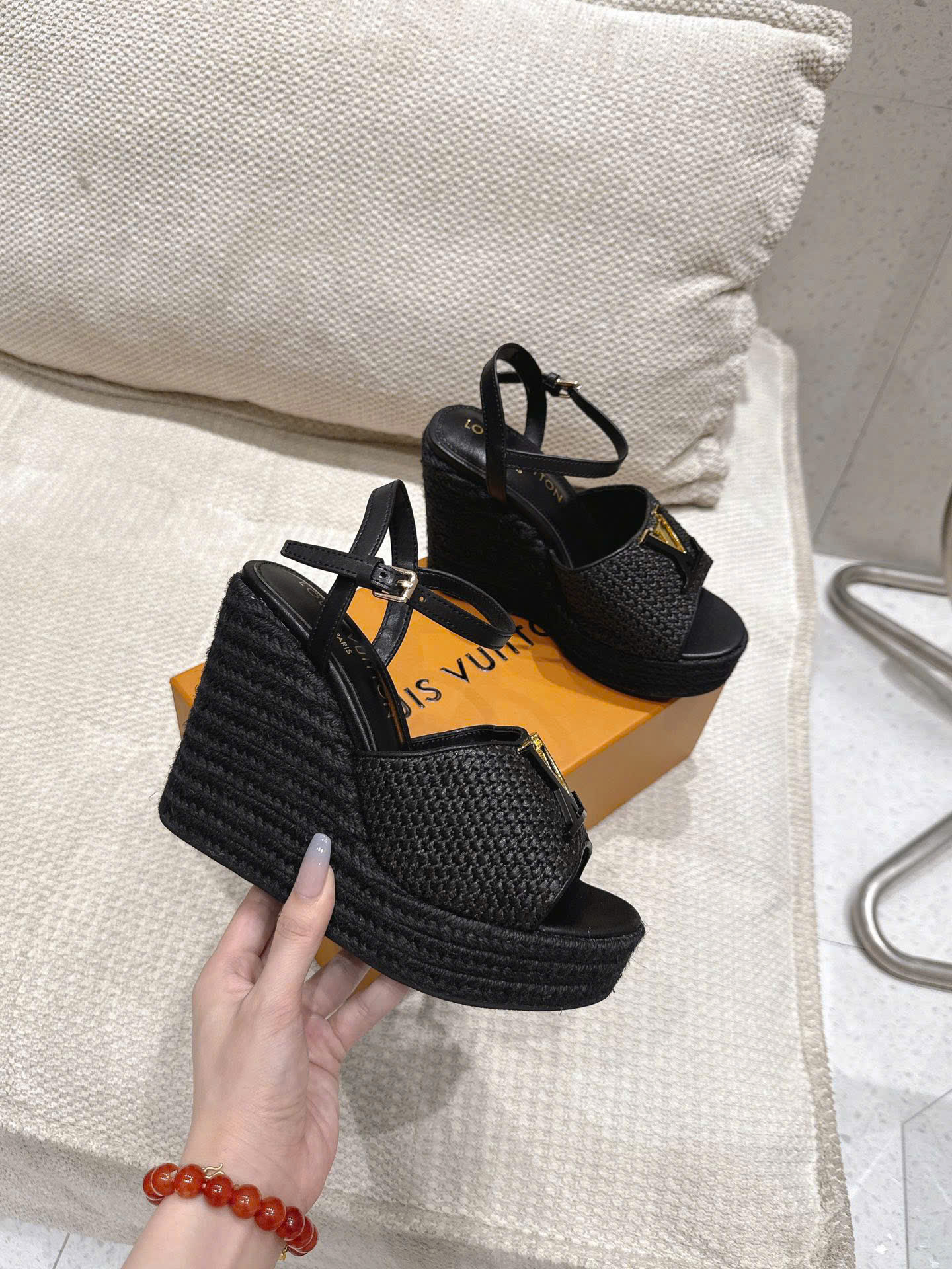 - Tên Sản Phẩm: Sandal LV Mare Wedge Raffia Monogram – Siêu cấp