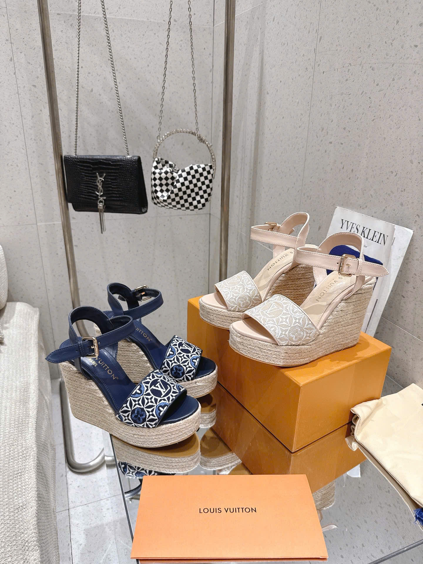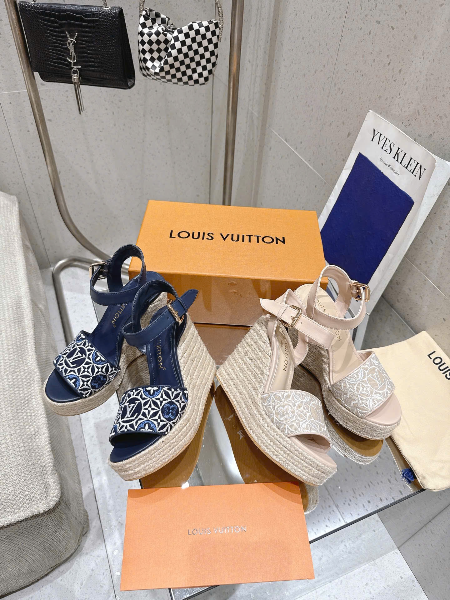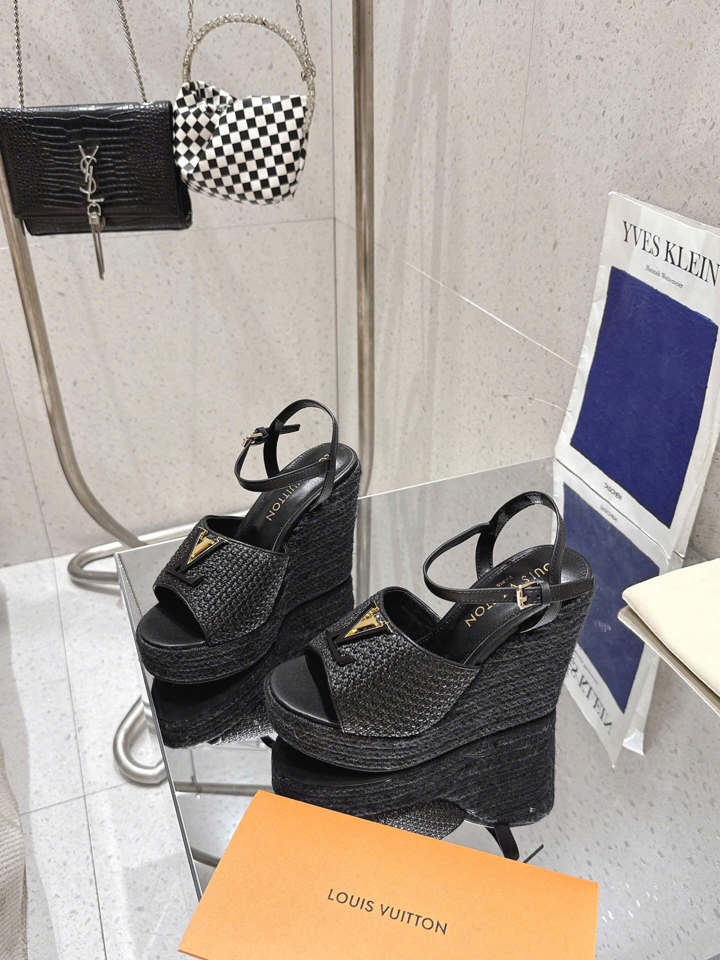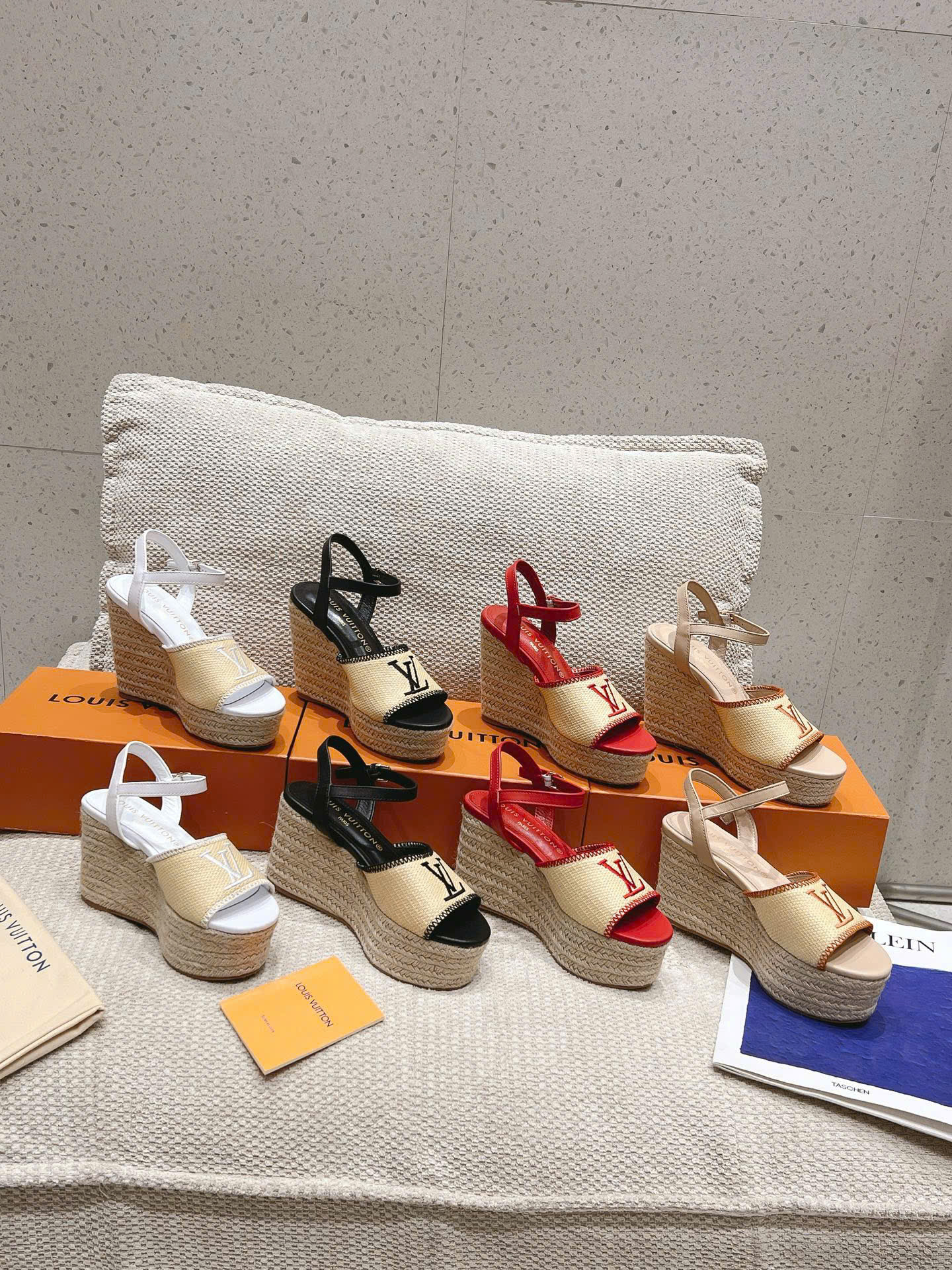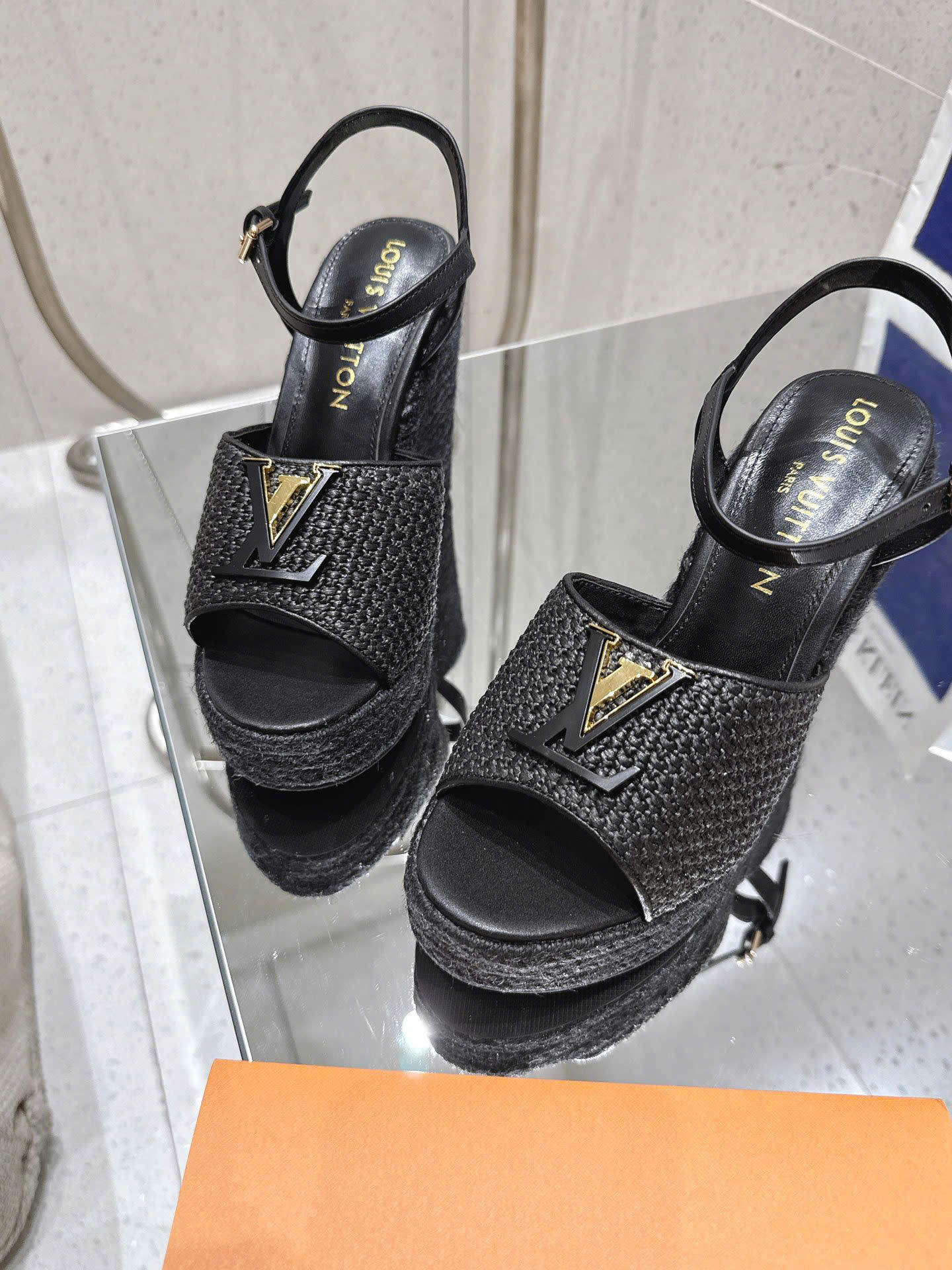- Tên Sản Phẩm: Sandal LV Mare Wedge Raffia Monogram – Siêu cấp