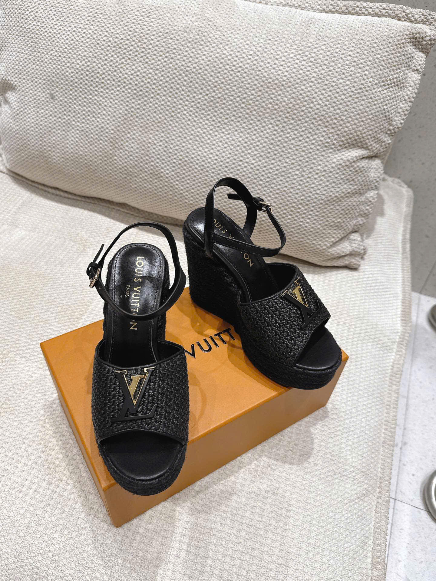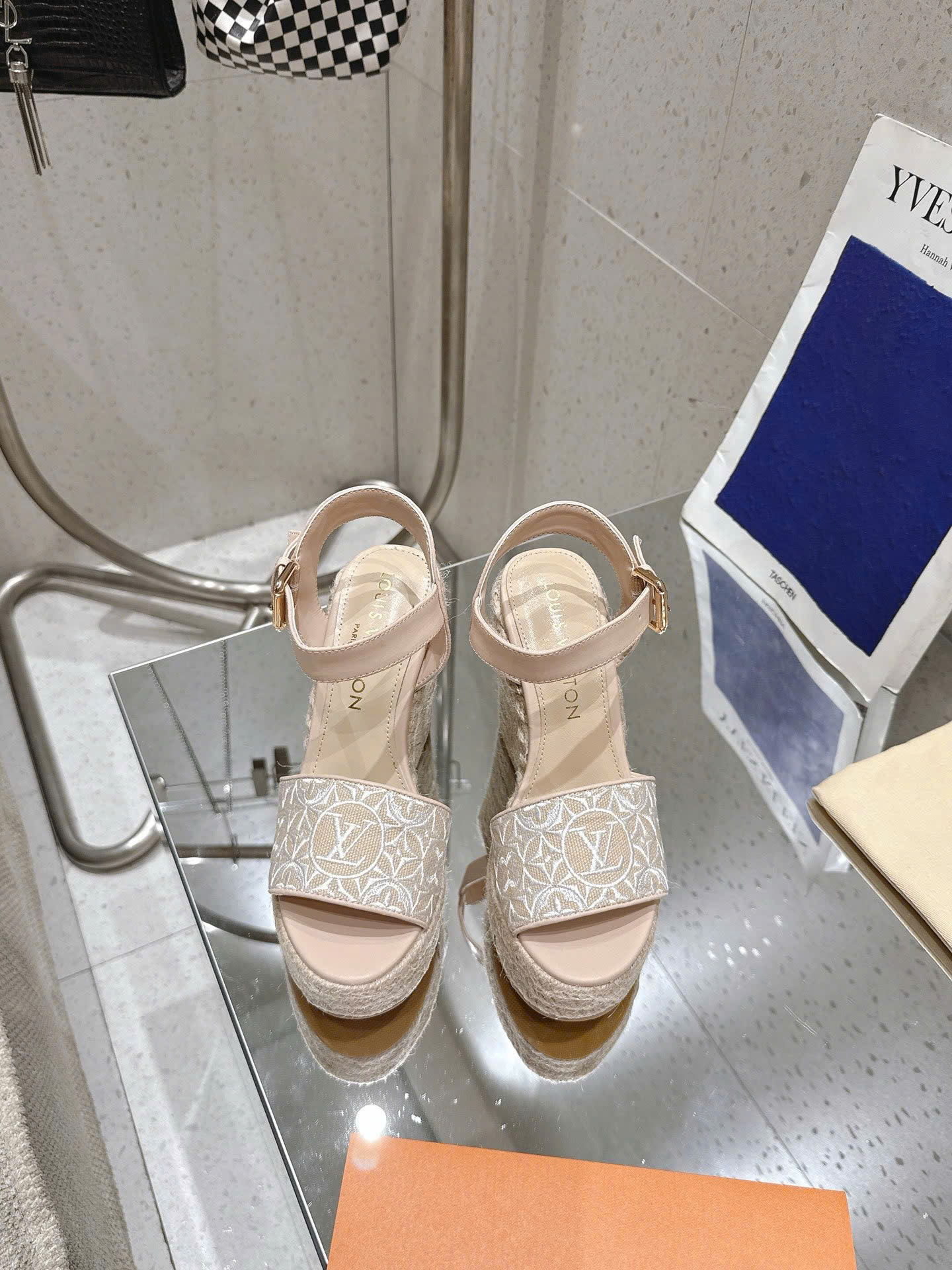 Sandal LV Mare Wedge Raffia Monogram – Siêu cấp