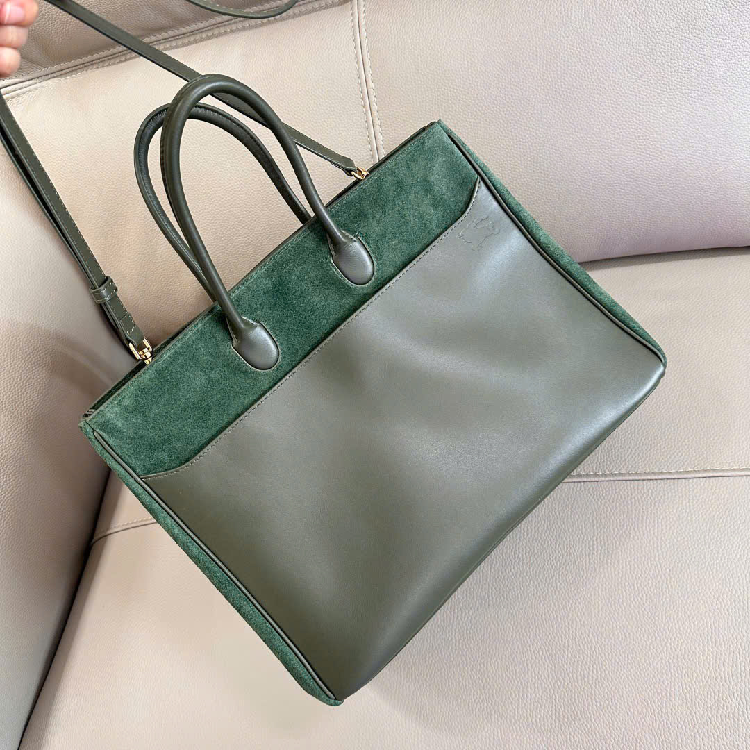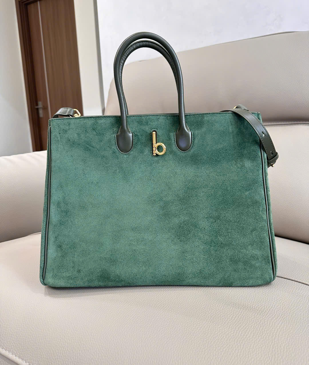 Túi Burberry Tote B Dáng Lớn Da Lộn Bê Màu Xanh Siêu Cấp Size 35.5cm