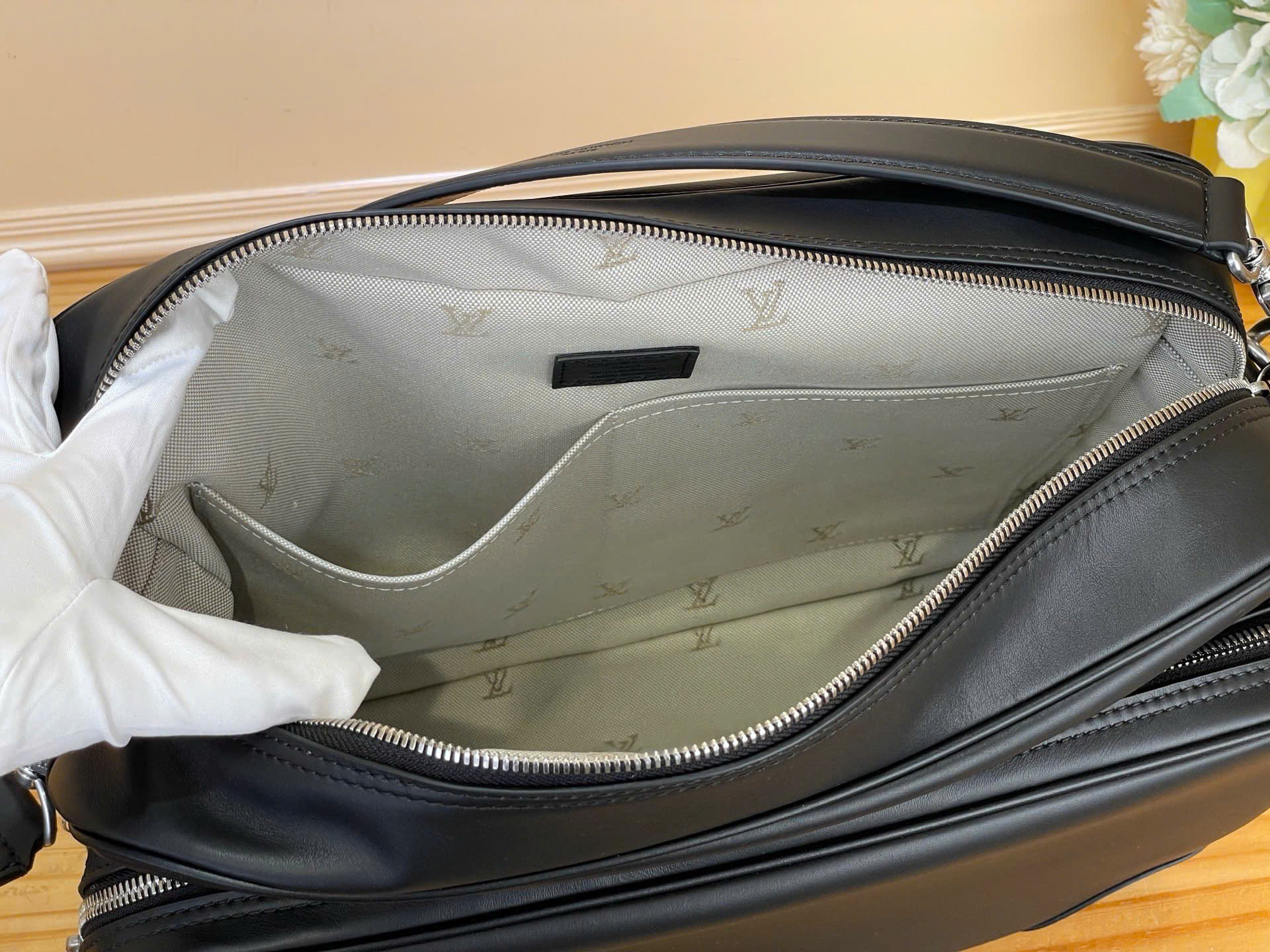 • Lót trong vải jacquard LV, tăng độ sang trọng.