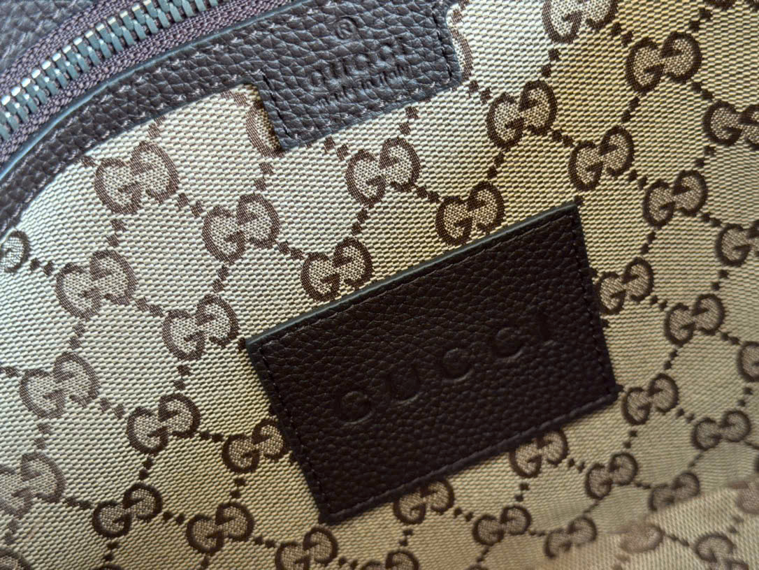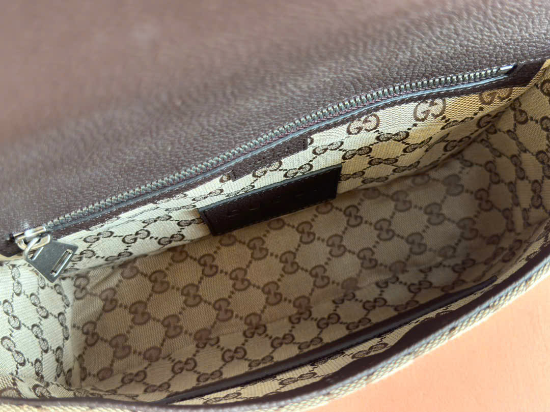 - Chất liệu: Canvas GG màu kem và nâu sẫm, viền da nâu