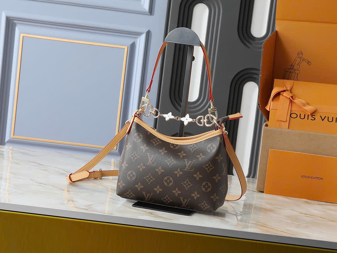 - Chất liệu: Canvas Monogram và viền da bò cao cấp
