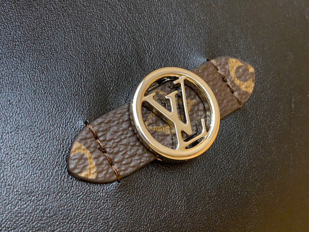 • Logo LV Circle + kim loại ánh vàng, tạo điểm nhấn tinh tế.