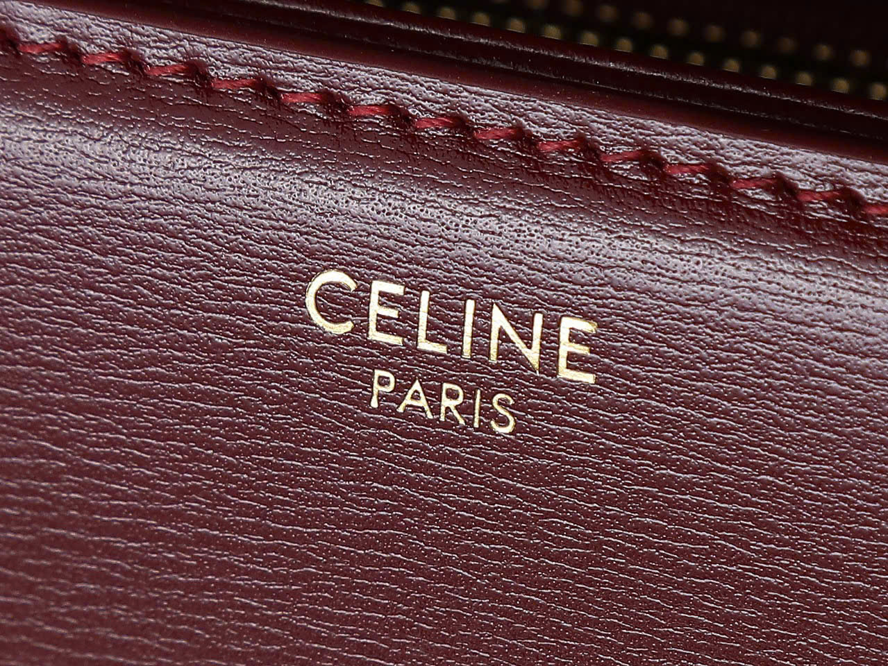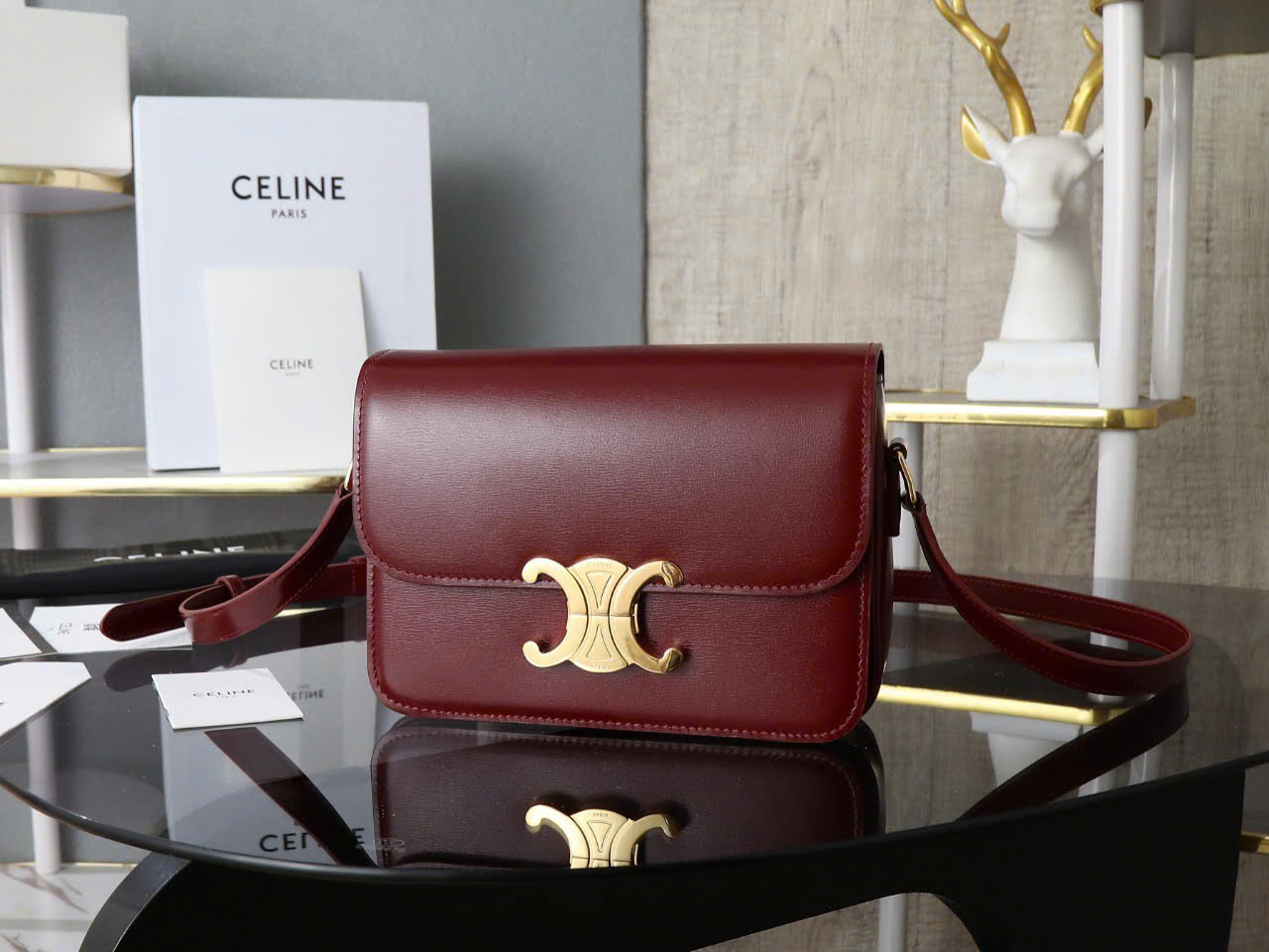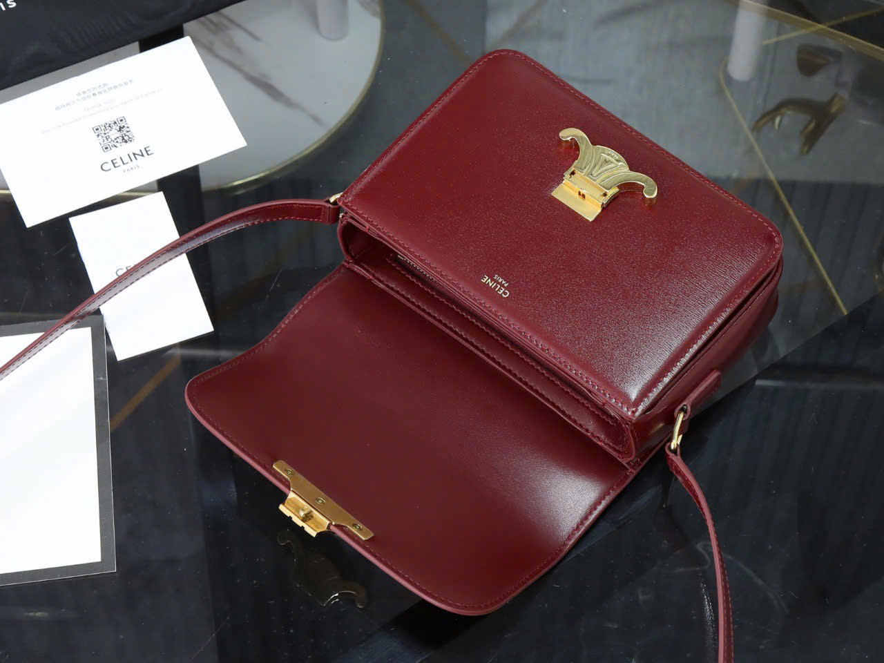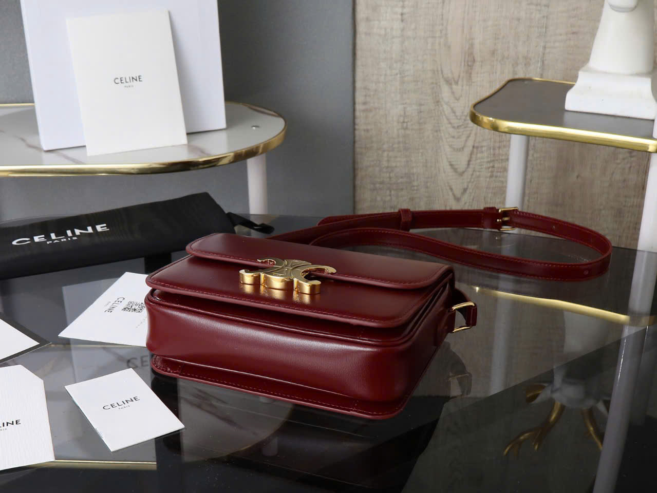 - Tên Sản Phẩm: Túi xách Celine Teen Triomphe màu đỏ rượu siêu vip size 18.5cm