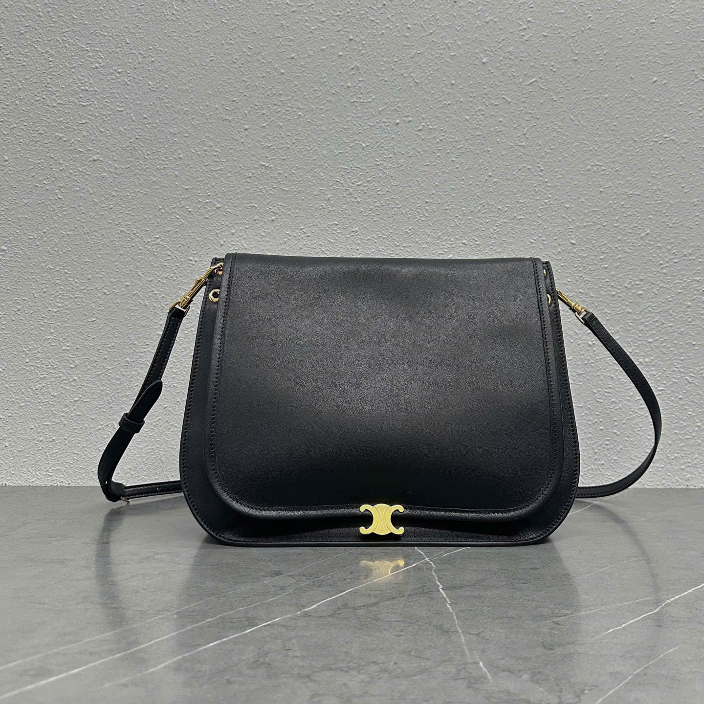 Túi xách Celine Triomphe Soft Besace 123632 Da Cừu Màu Đen Siêu VIP