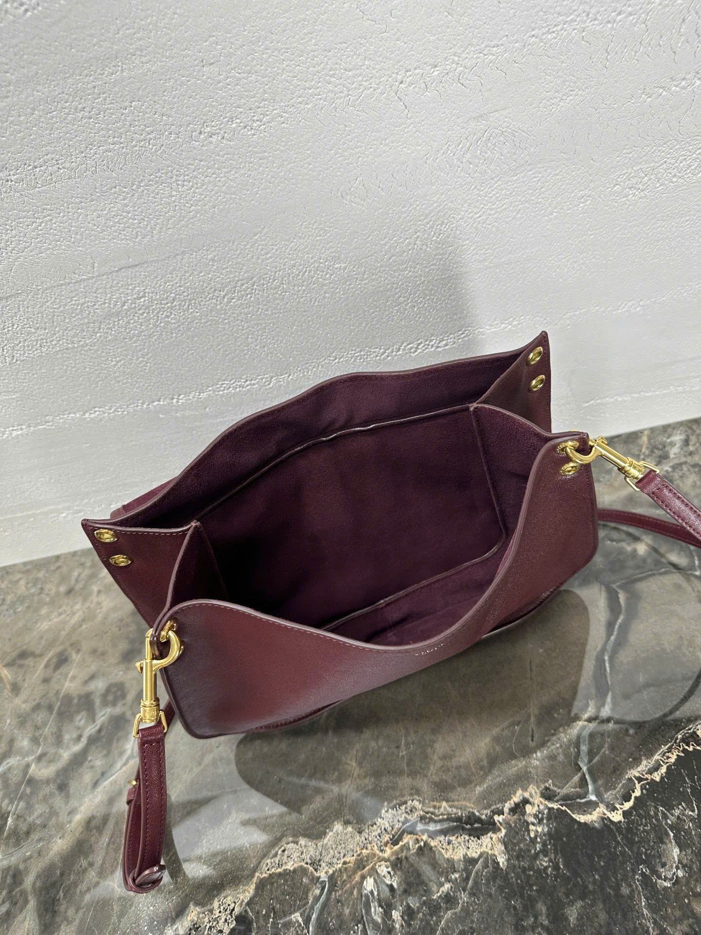 • Thiết kế Soft Triomphe Besace 2026 phong cách Pháp thanh lịch. • Thuộc dòng Triomphe (Khải Hoàn Môn) biểu tượng đặc trưng của Celine. • Form vuông đứng, cứng cáp hơn dáng halfmoon truyền thống. • Chất liệu da cừu tự nhiên, mềm nhẹ và cao cấp. • Màu rượu vang (burgundy) sang trọng và nổi bật. • Khóa nam châm Triomphe, đóng mở chắc chắn. • Ngăn sau có khóa kéo, tiện đựng điện thoại hoặc chìa khóa. • Dung tích rộng, đựng được ô gấp, ví, mỹ phẩm… • Dây đeo tháo rời và điều chỉnh, đeo vai hoặc đeo chéo linh hoạt. • Phù hợp phong cách thanh lịch – tối giản – thời thượng. • Dễ phối đồ công sở, blazer hoặc outfit nhẹ nhàng. • Phiên bản siêu VIP, hoàn thiện chi tiết sắc nét. • Mẫu túi hot trend 2026, rất được ưa chuộng