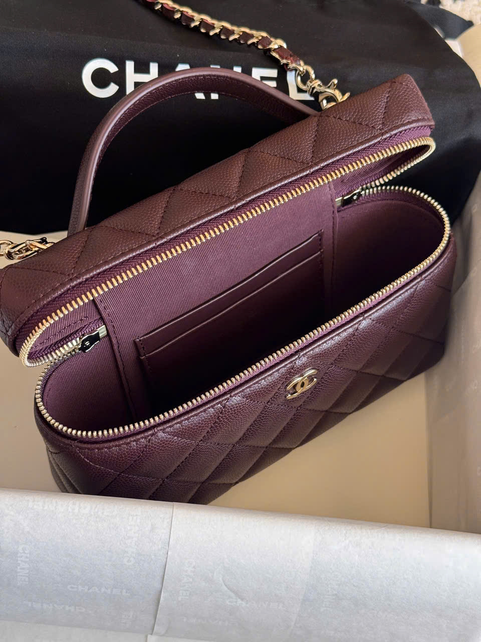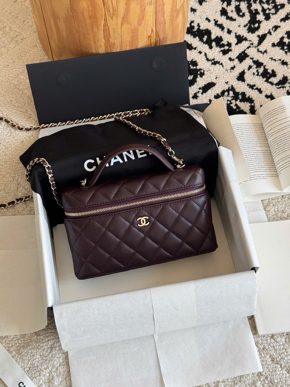 Túi xách Chanel 25C LP – Dáng hộp “Lunch Box” – Siêu VIP đỏ rượu