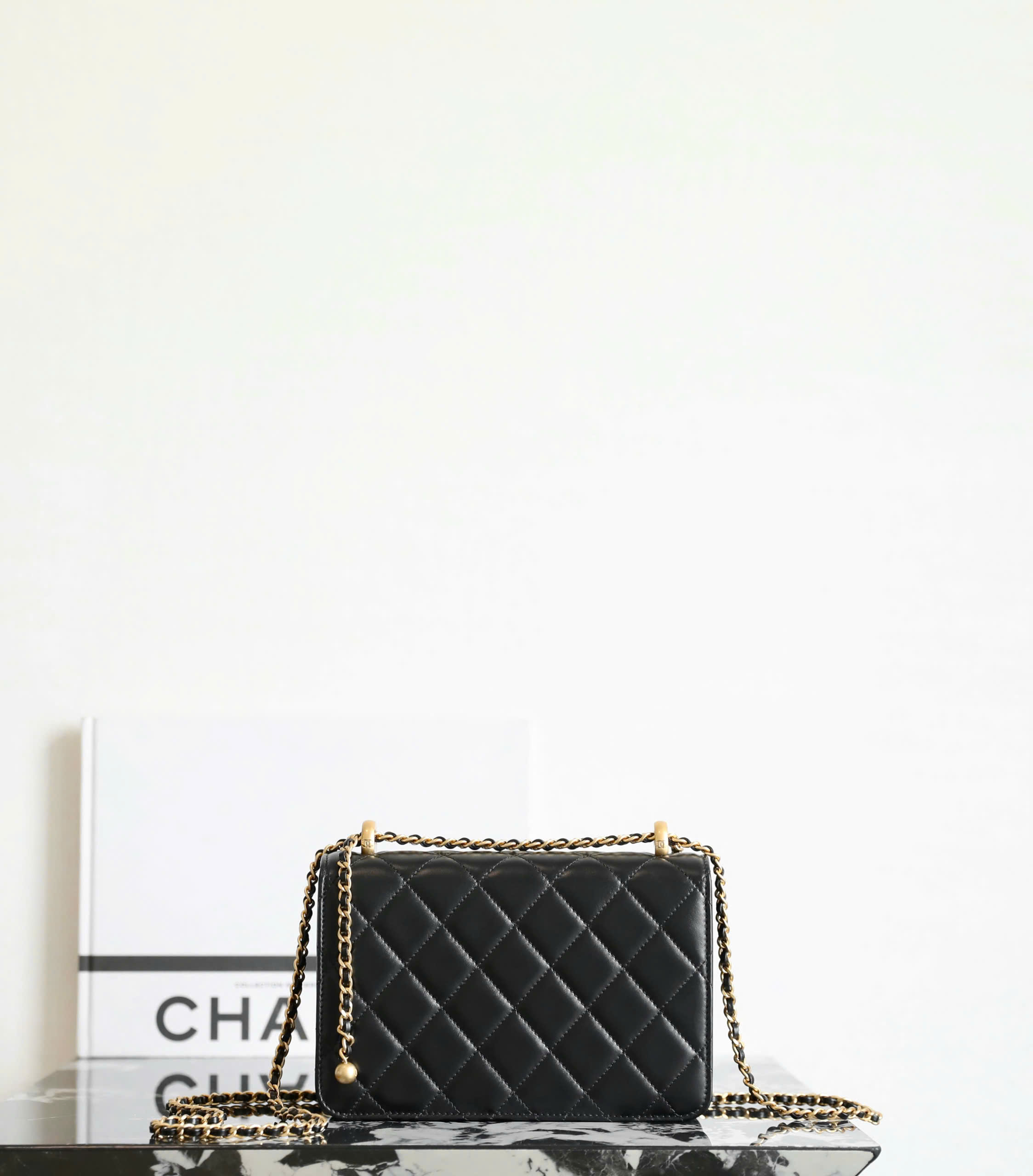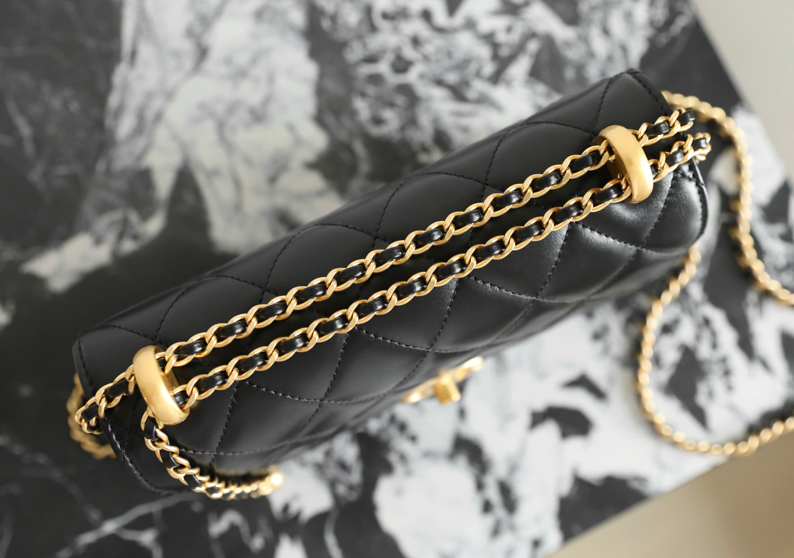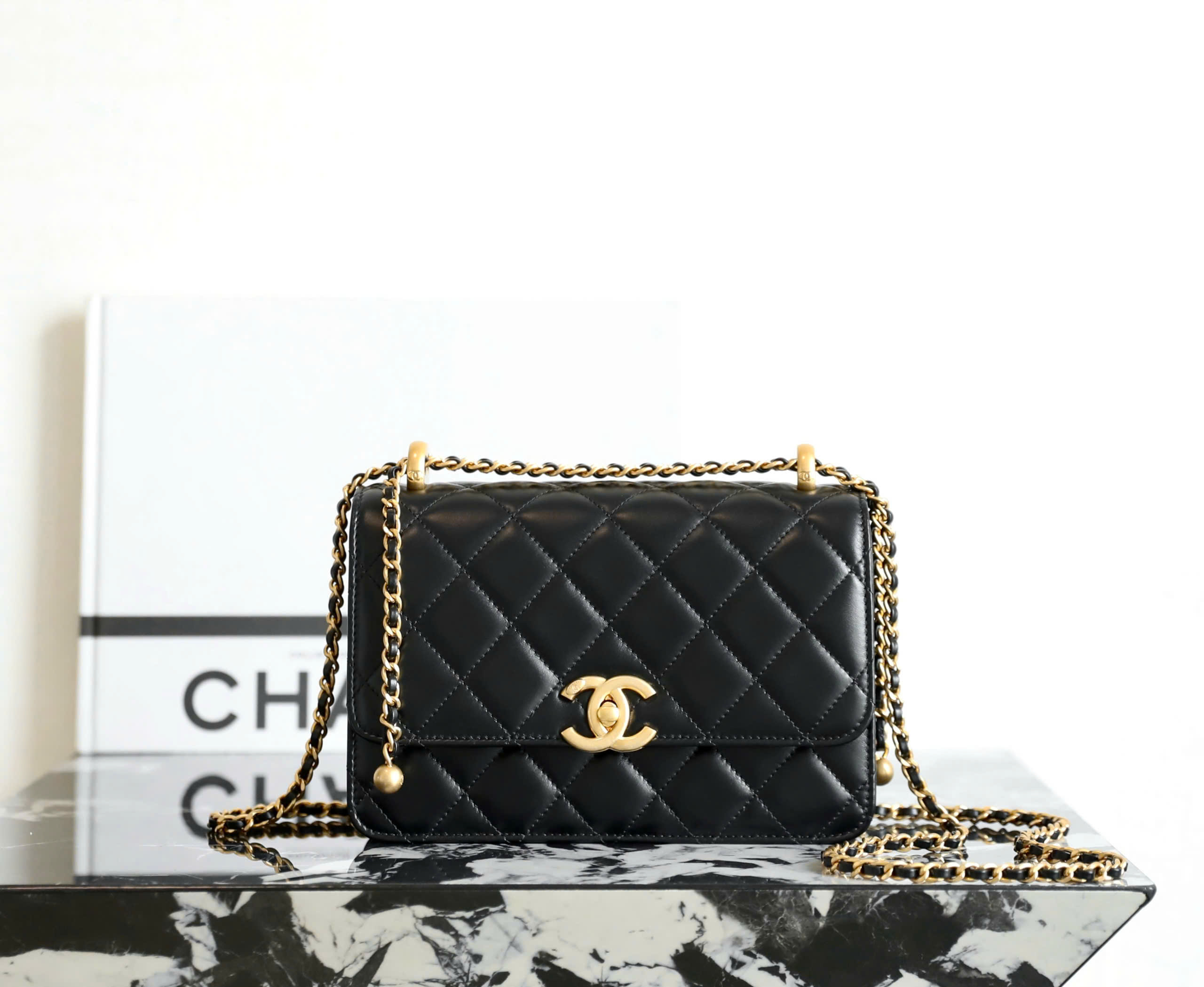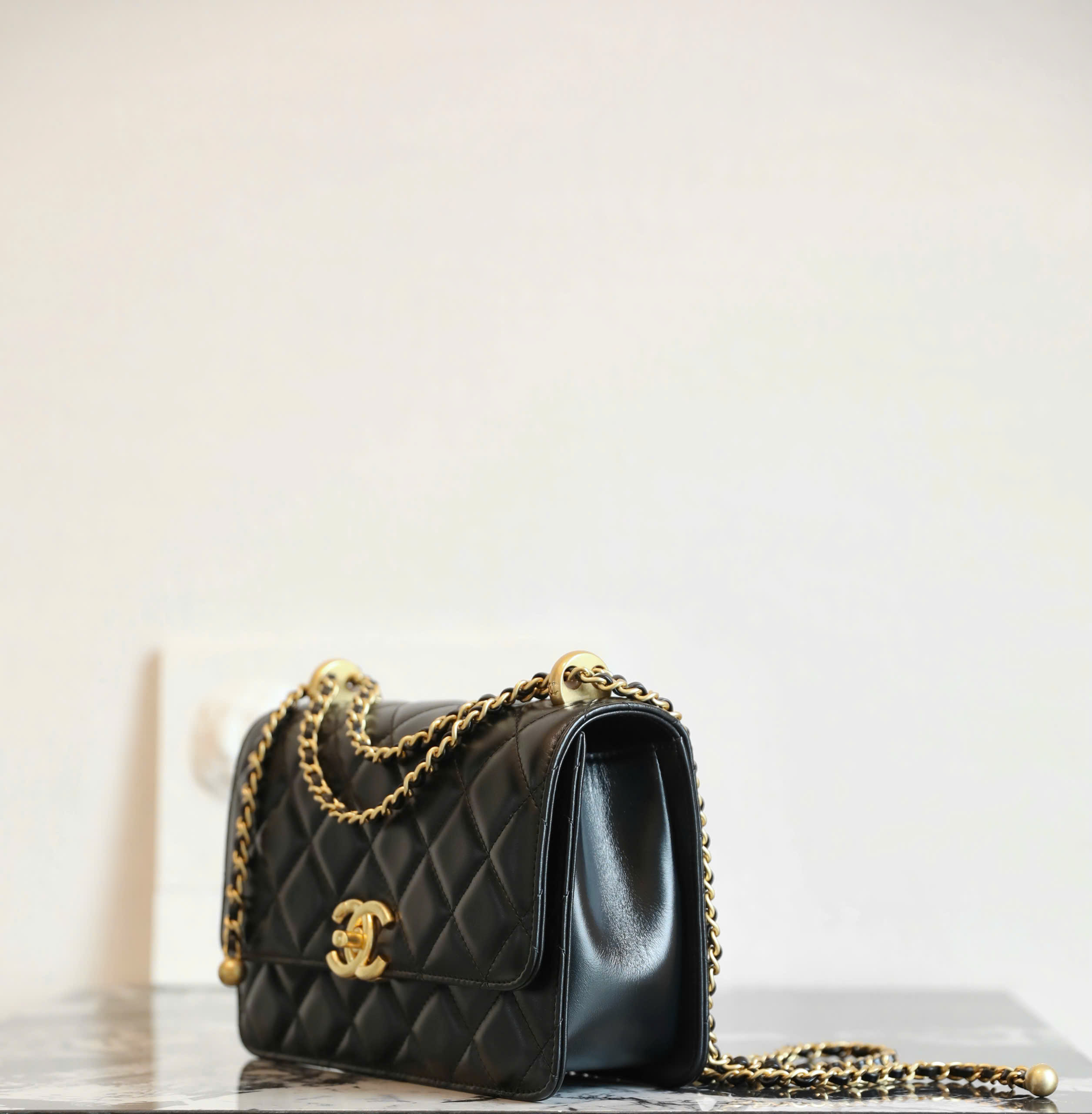 Túi xách Chanel 25S Double Gold Ball Flap Màu Đen Like Auth Da Bê Bóng