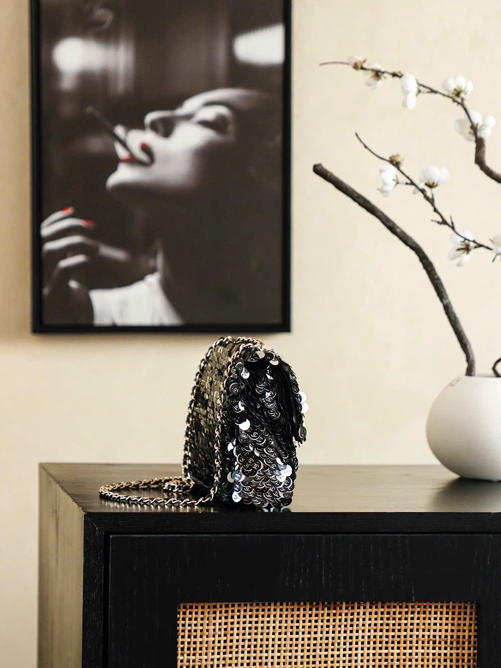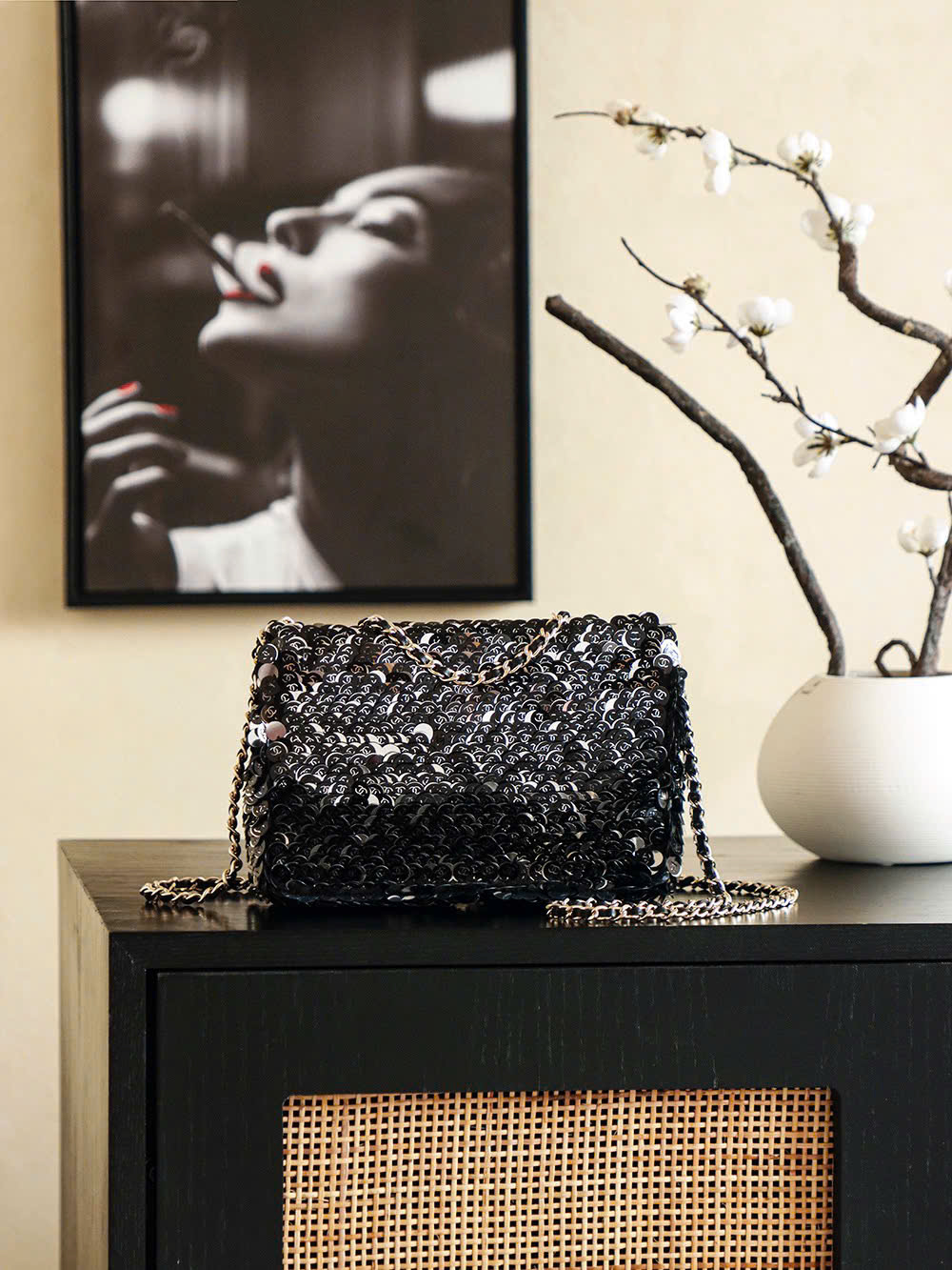 • Thiết kế Chanel 26C Sequin Embroidery CF Bag thuộc bộ sưu tập Xuân Hè 26C giới hạn. • Bề mặt đính sequin và thêu tinh xảo, tạo hiệu ứng lấp lánh nổi bật. • Logo Double C kim loại đặc trưng, tăng độ nhận diện thương hiệu. • Dây xích da kết hợp kim loại sang trọng và bền đẹp. • Có thể cầm tay, đeo vai hoặc đeo chéo, linh hoạt nhiều phong cách. • Chất liệu mềm mại, form túi chắc chắn, mang lại cảm giác cao cấp khi sử dụng. • Kích thước vừa phải, đựng được điện thoại, ví nhỏ và mỹ phẩm. • Phù hợp đi tiệc, sự kiện, dạo phố hoặc phối đồ nổi bật. • Mẫu túi limited nổi bật, kết hợp nhiều yếu tố kinh điển của Chanel nên rất được yêu thích