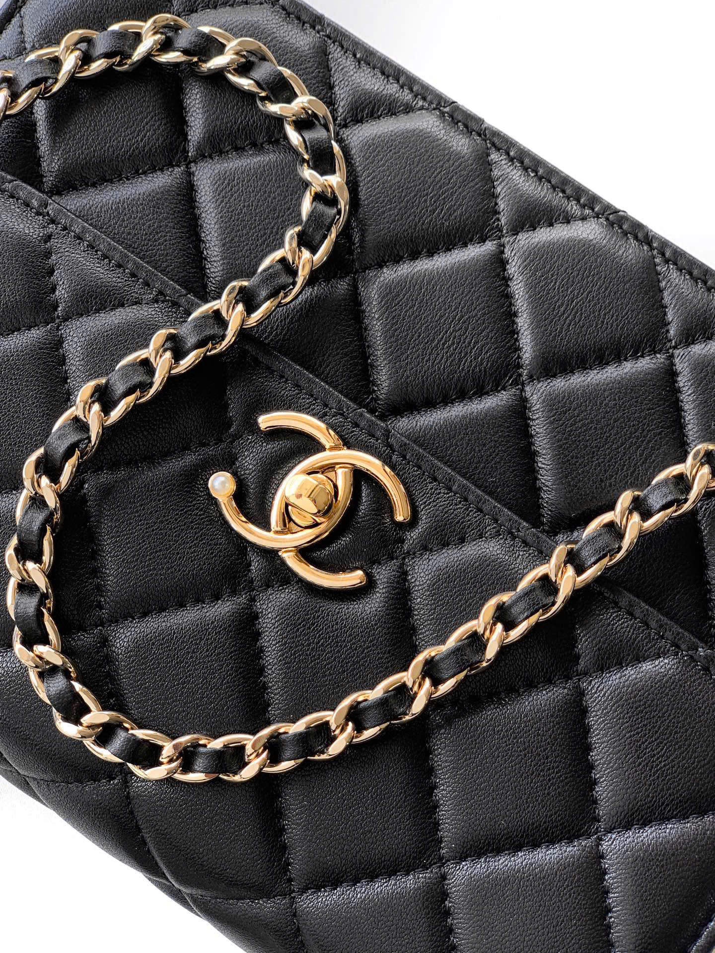 • Họa tiết chần bông kim cương (quilted) cổ điển đặc trưng của Chanel.