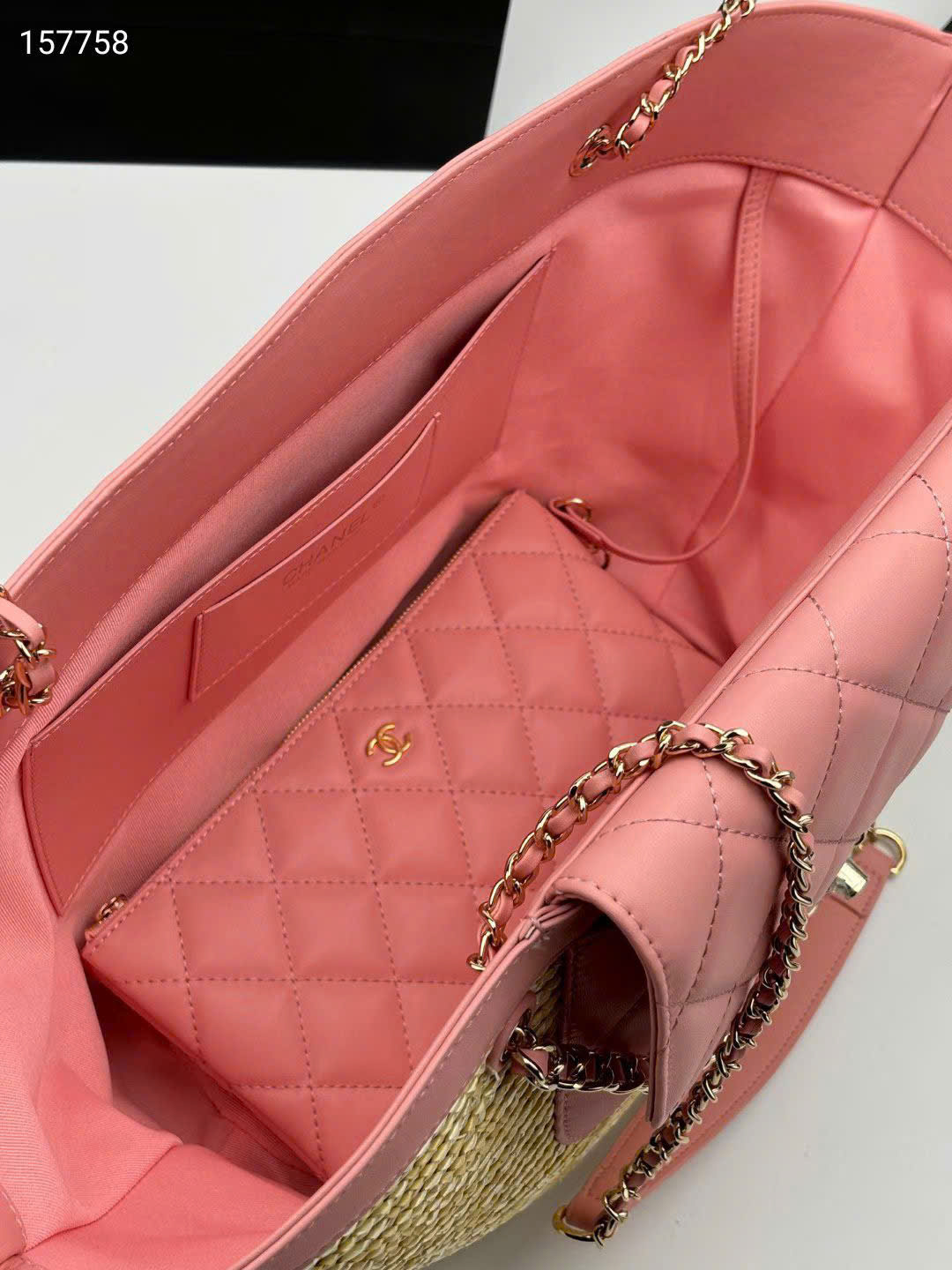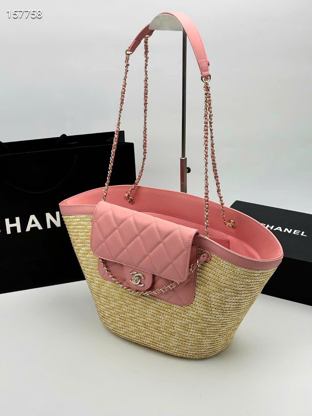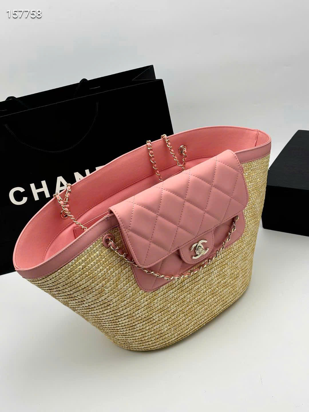 - Tên Sản Phẩm: Túi xách Chanel 26C Tote Cói Đan Thủ Công Size Lớn - màu hồng
