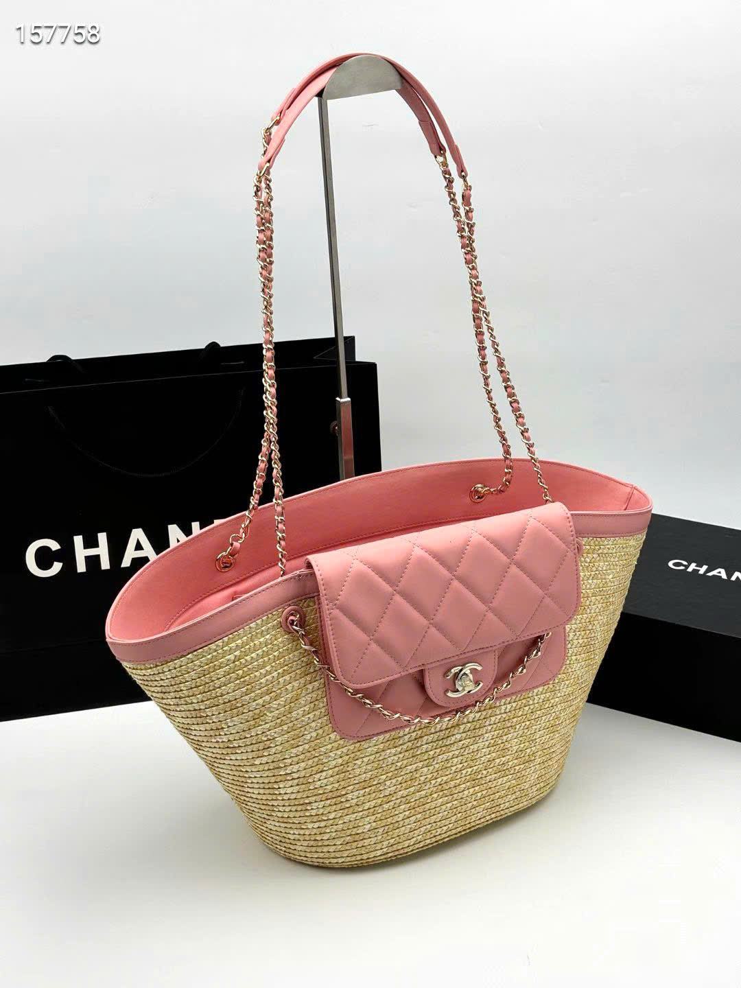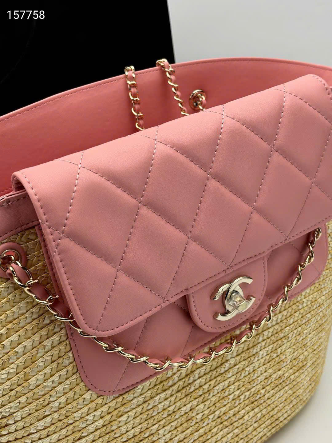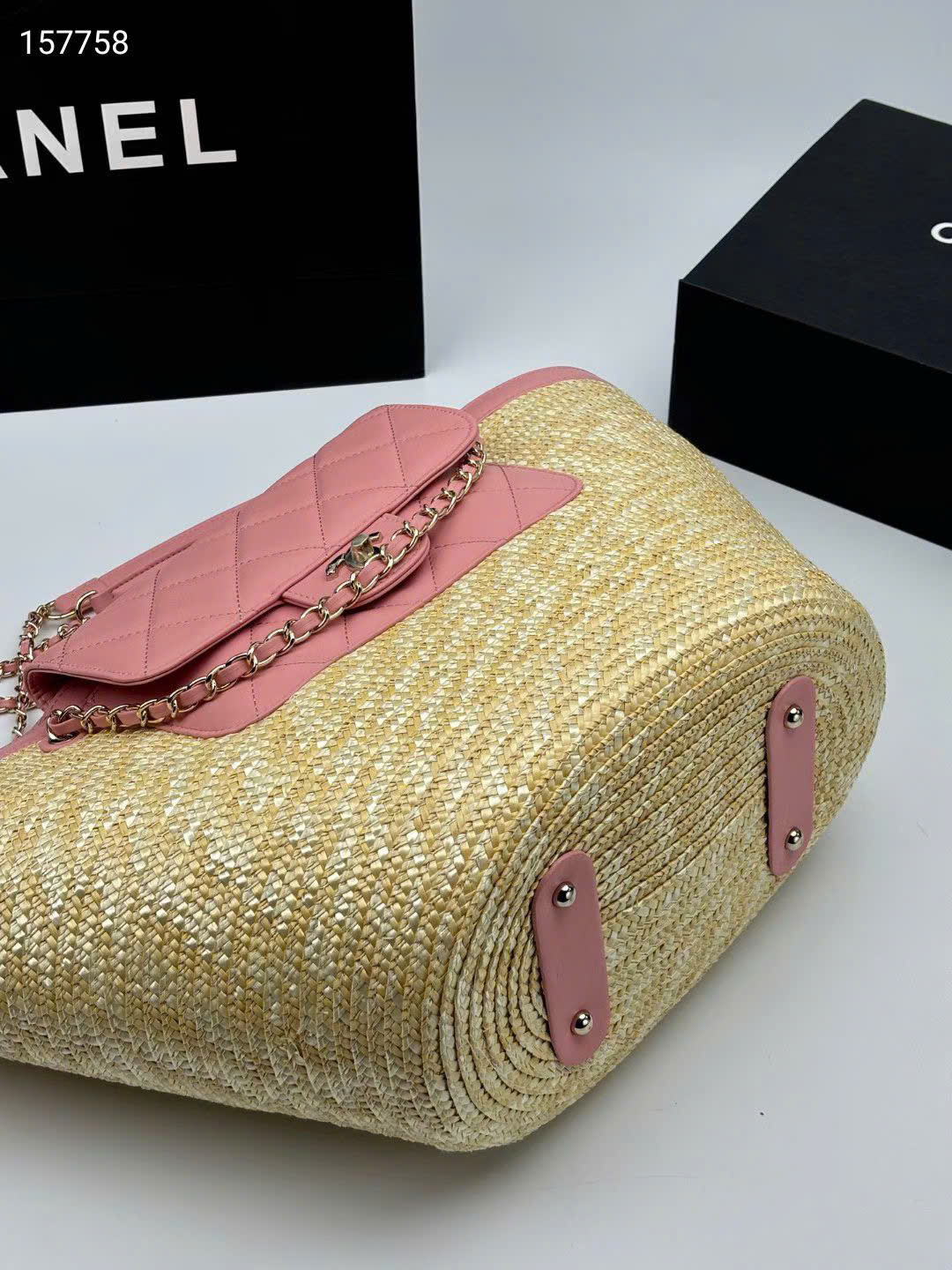 - Tên Sản Phẩm: Túi xách Chanel 26C Tote Cói Đan Thủ Công Size Lớn - màu hồng