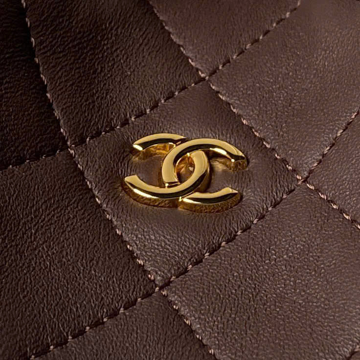 • Thiết kế chần bông kinh điển + logo Double C kim loại vàng nổi bật.