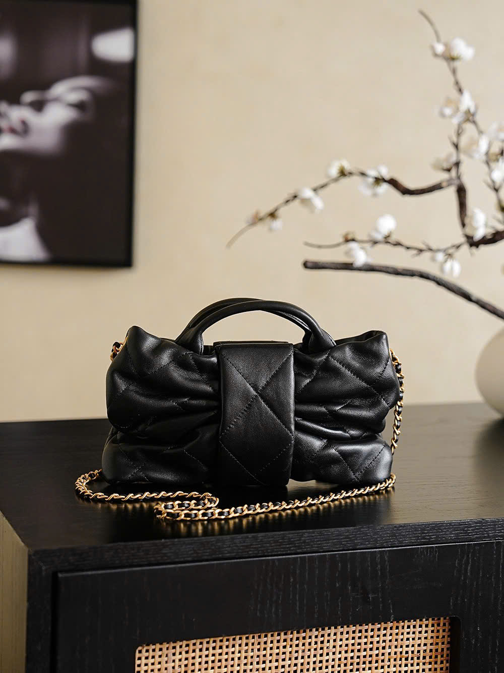 • Thiết kế Chanel Bow Bag nổi bật với chi tiết nơ (bow) nữ tính và thanh lịch. • Chất liệu denim (vải bò) trẻ trung, ngoài ra còn có phiên bản da cừu Antiba oil-wax cao cấp. • Bề mặt da có độ bóng tự nhiên, vân da rõ nét và sang trọng. • Khả năng chống trầy tốt và chống nước nhẹ, giúp túi giữ form đẹp lâu dài. • Không gian bên trong bố trí hợp lý, đựng được điện thoại, chìa khóa, mỹ phẩm và các vật dụng cần thiết. • Kích thước nhỏ gọn, tiện mang theo hằng ngày nhưng vẫn đảm bảo tính tiện dụng. • Phong cách nữ tính, thanh lịch, phù hợp đi chơi, dạo phố hoặc dự tiệc. • Thiết kế kết hợp nét cổ điển của Chanel và phong cách hiện đại, giúp tổng thể trang phục thêm tinh tế