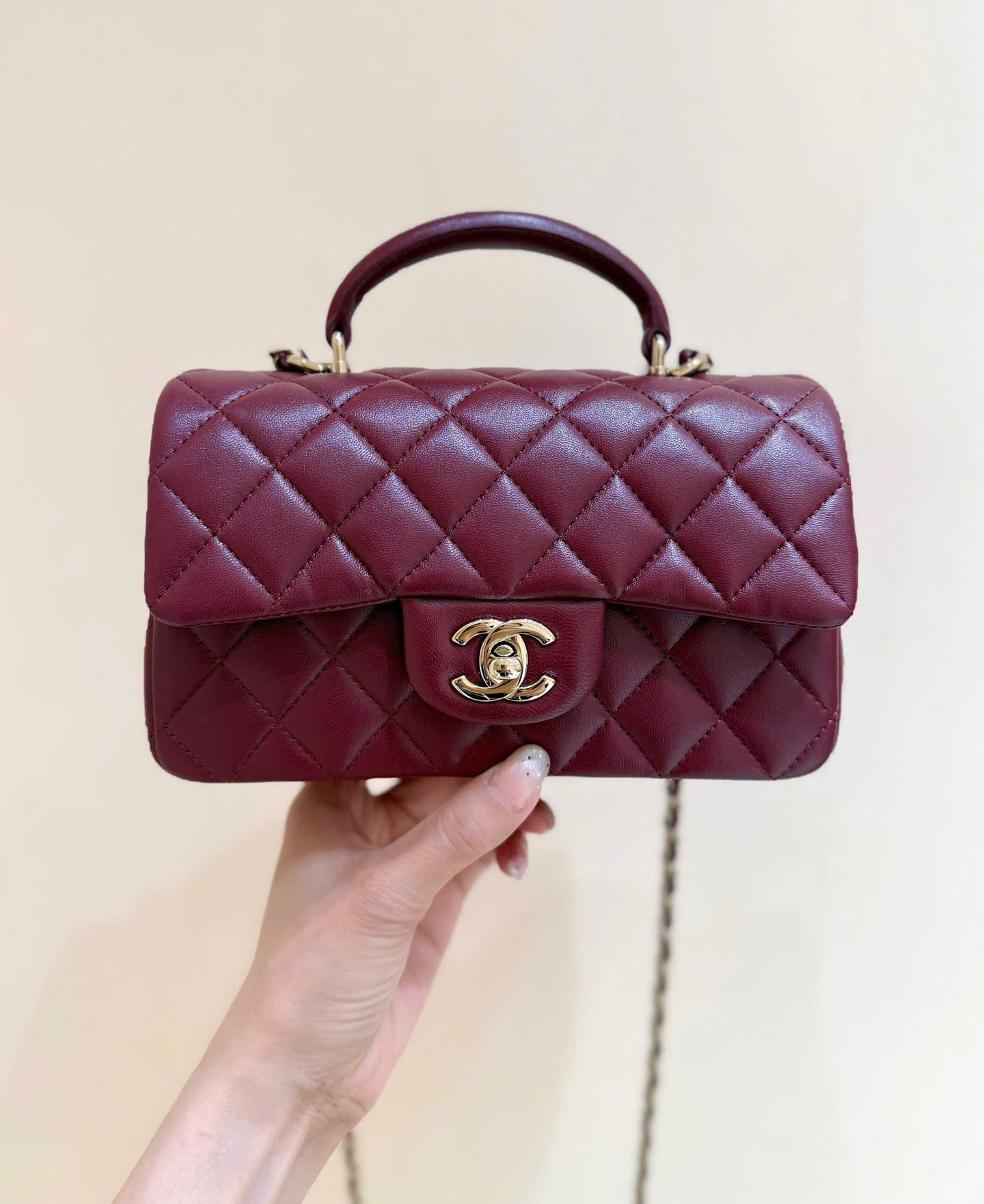 - Tên Sản Phẩm: Túi xách Chanel Classic Flap Mini Top Handle 2431 Màu Đỏ Rượu Like Auth