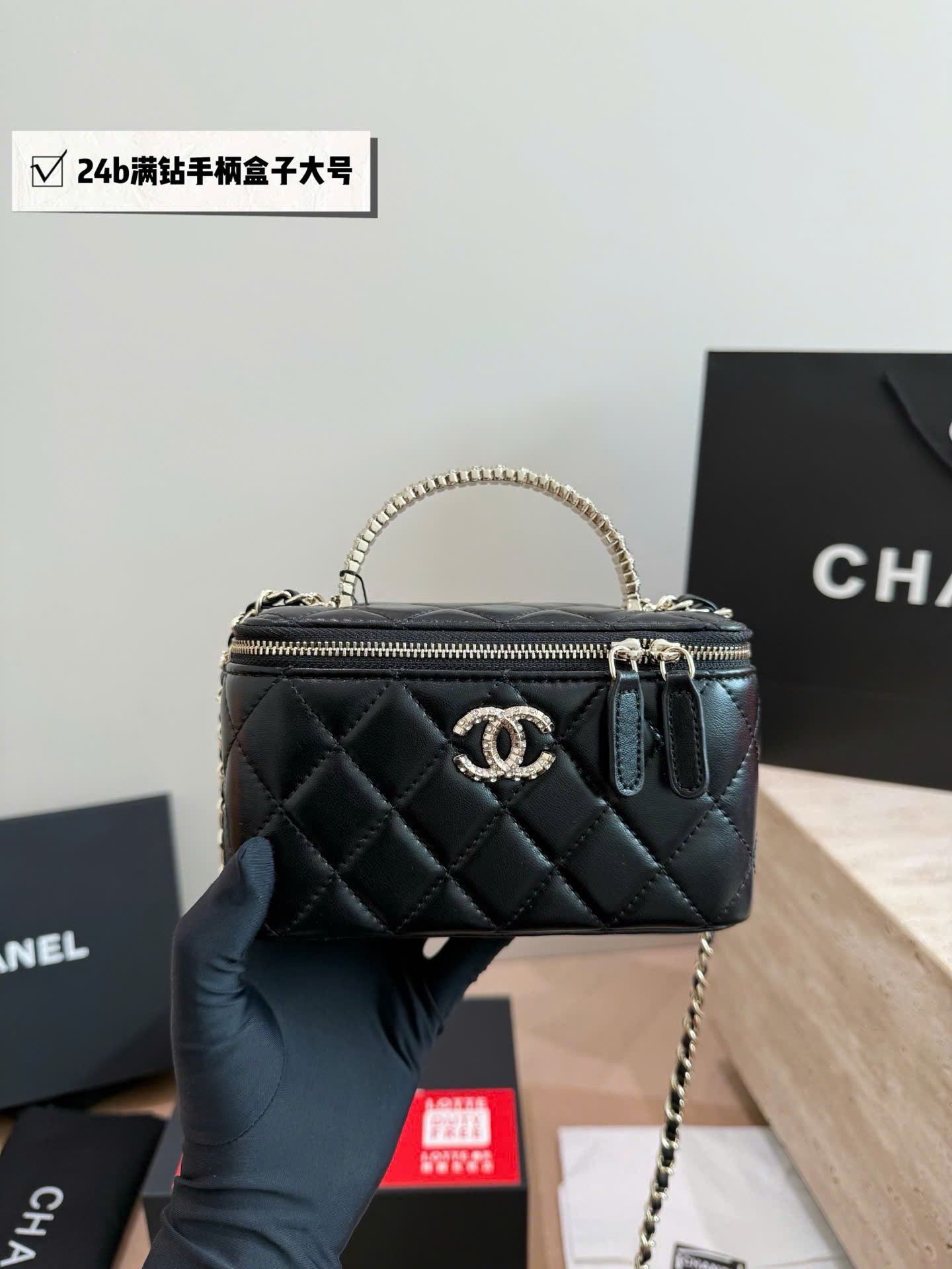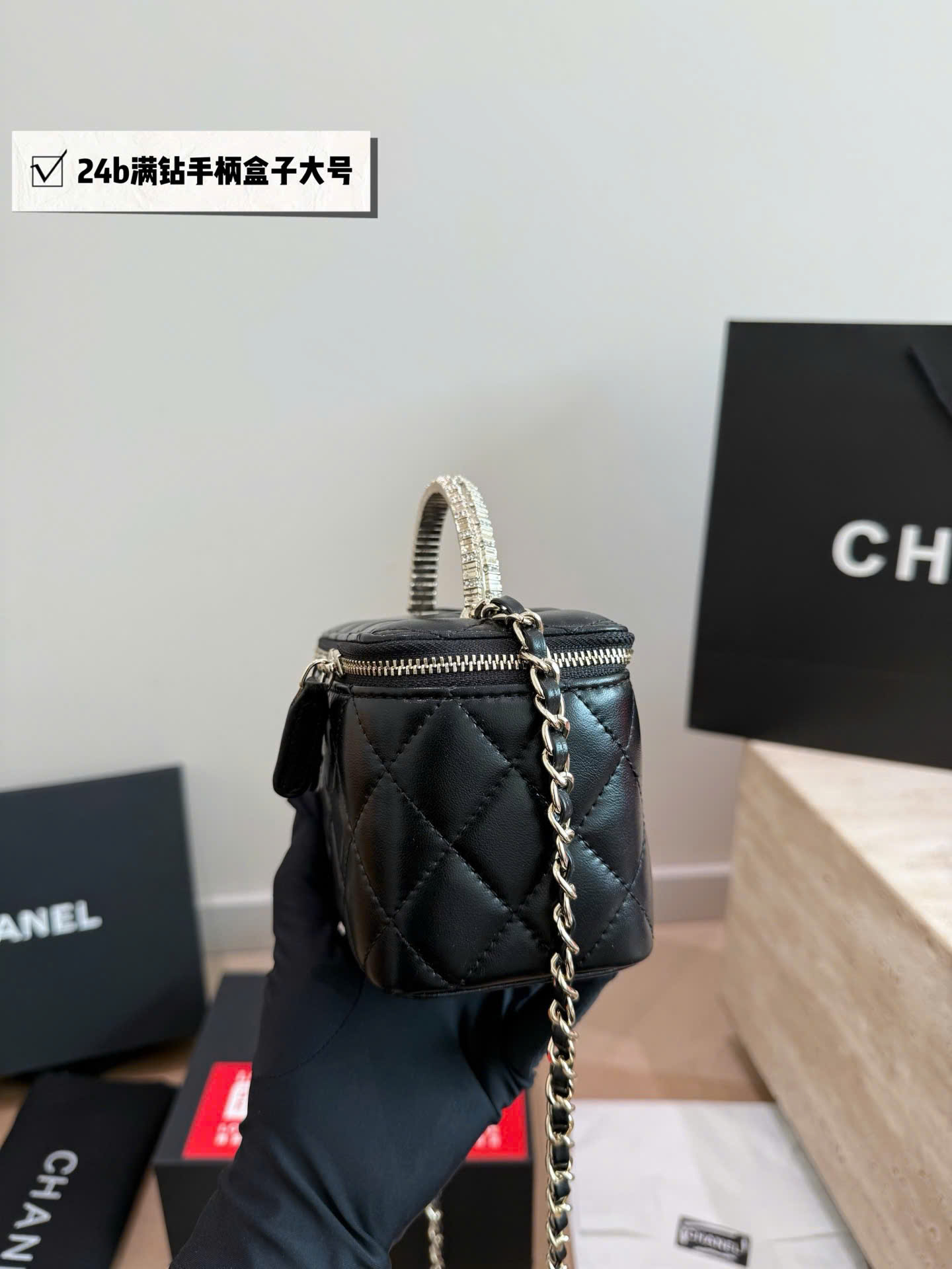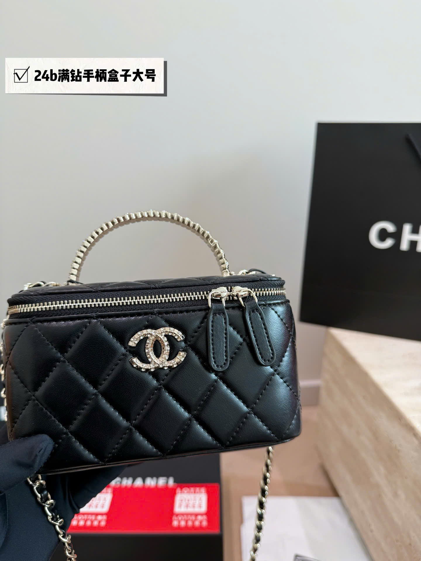 Túi xách Chanel Crystal Handle Box Bag Size Lớn Super Full Box - màu đen