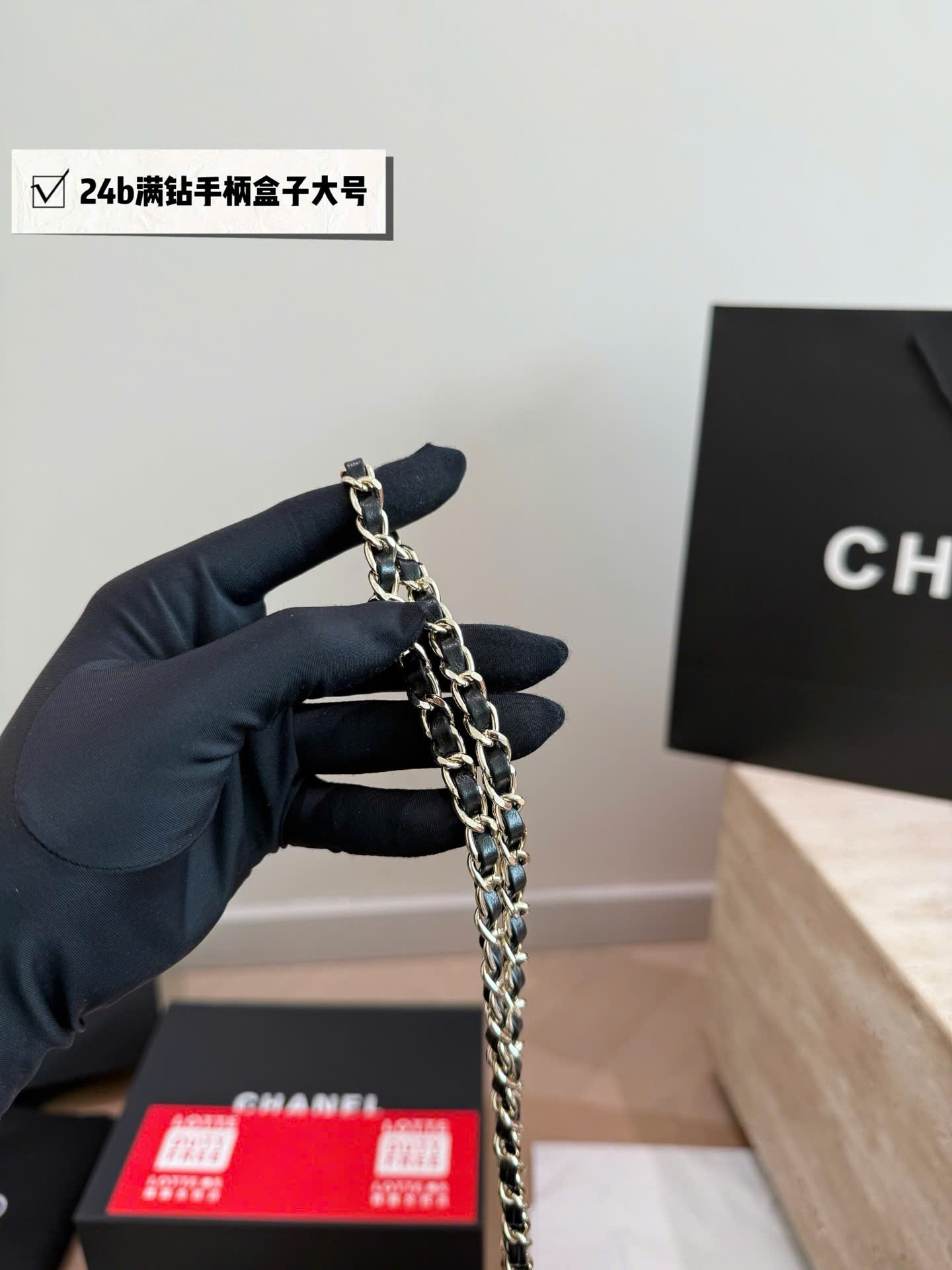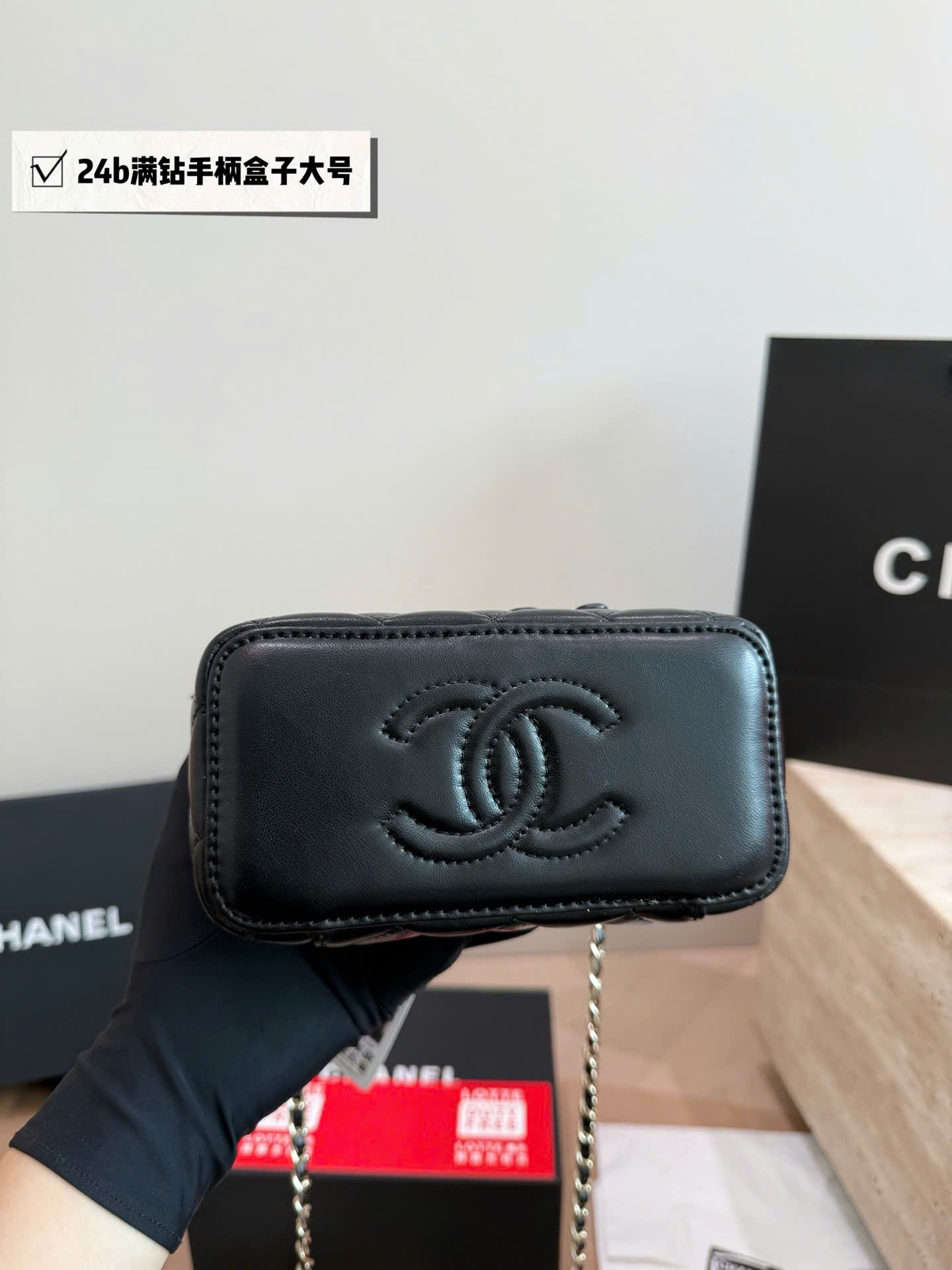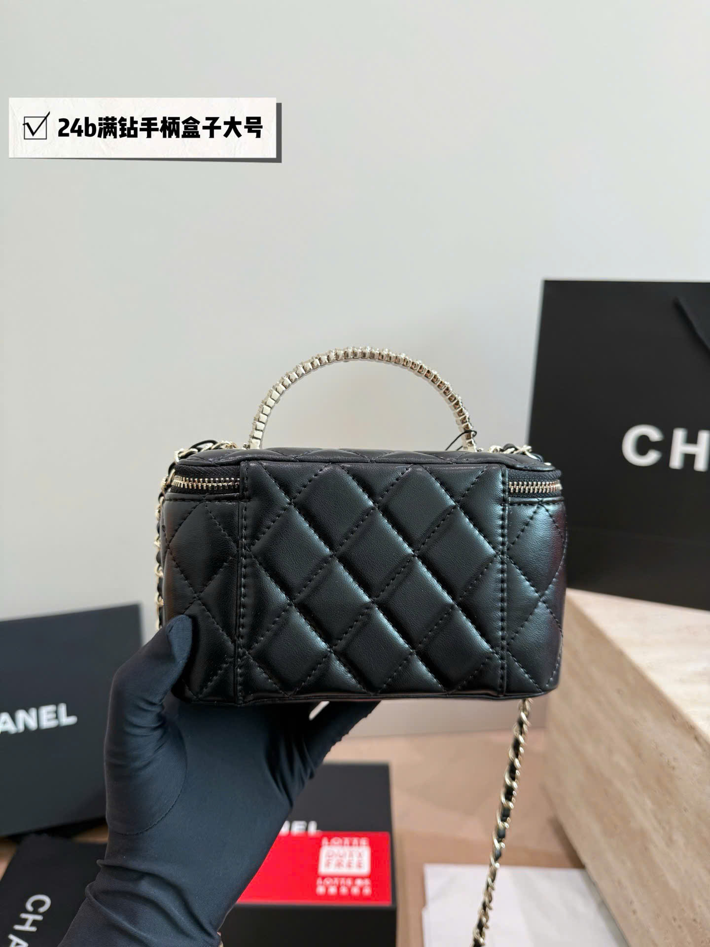 Túi xách Chanel Crystal Handle Box Bag Size Lớn Super Full Box - màu đen