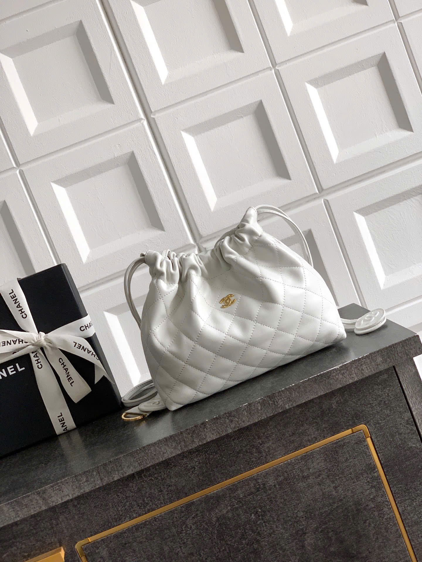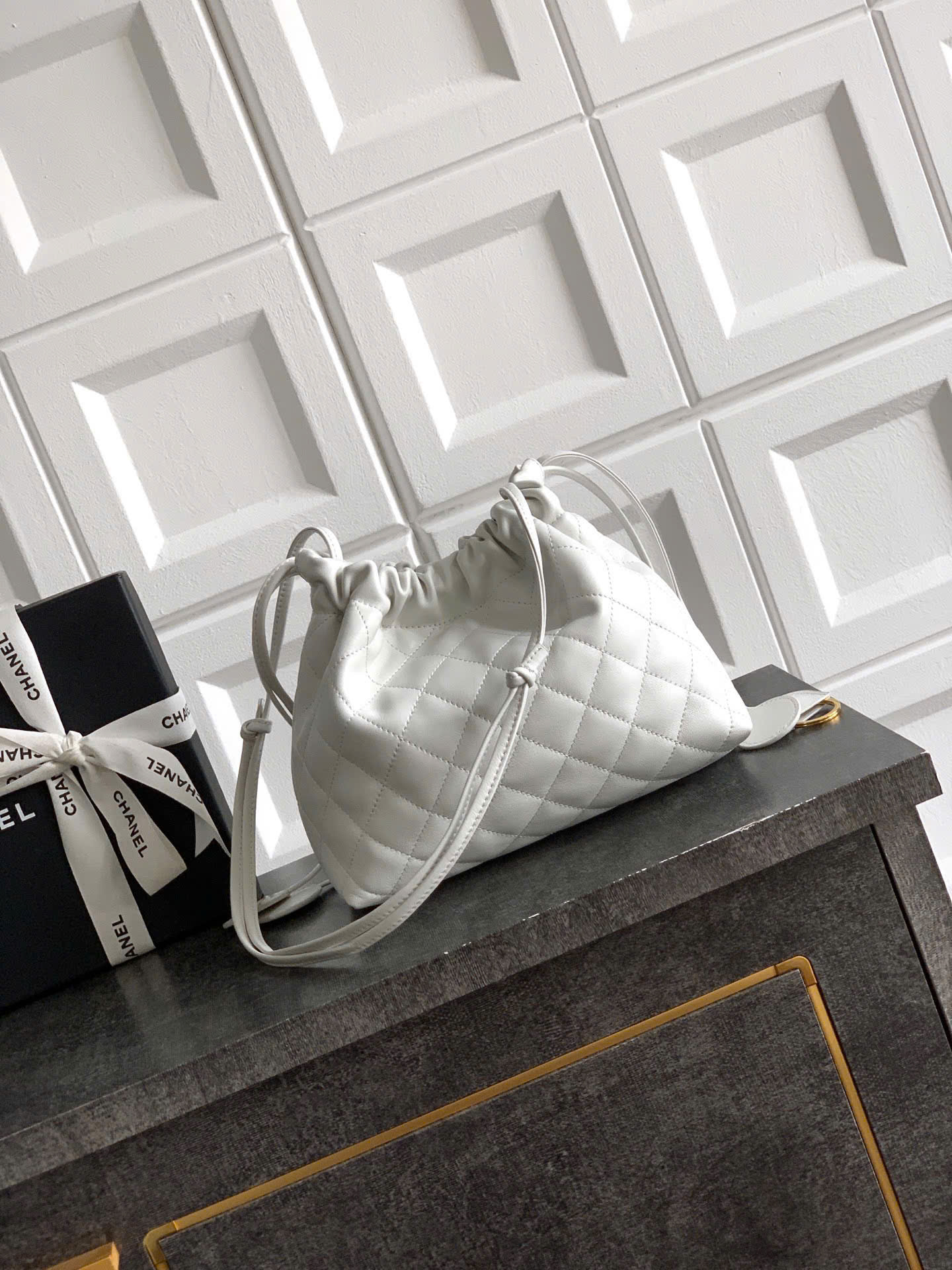 - Tên Sản Phẩm: Túi xách Chanel Dây Rút Bucket Da Mềm Trám Logo CC Màu Kem Sữa Siêu VIP