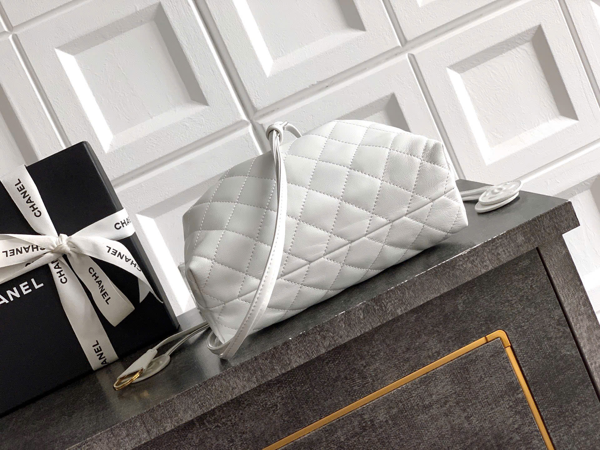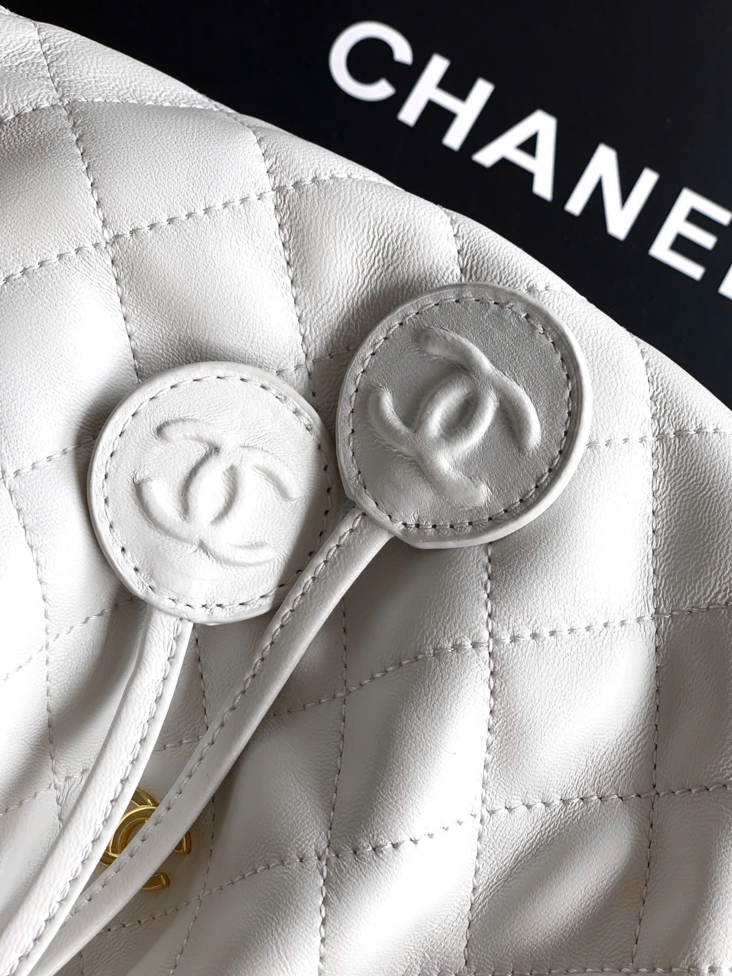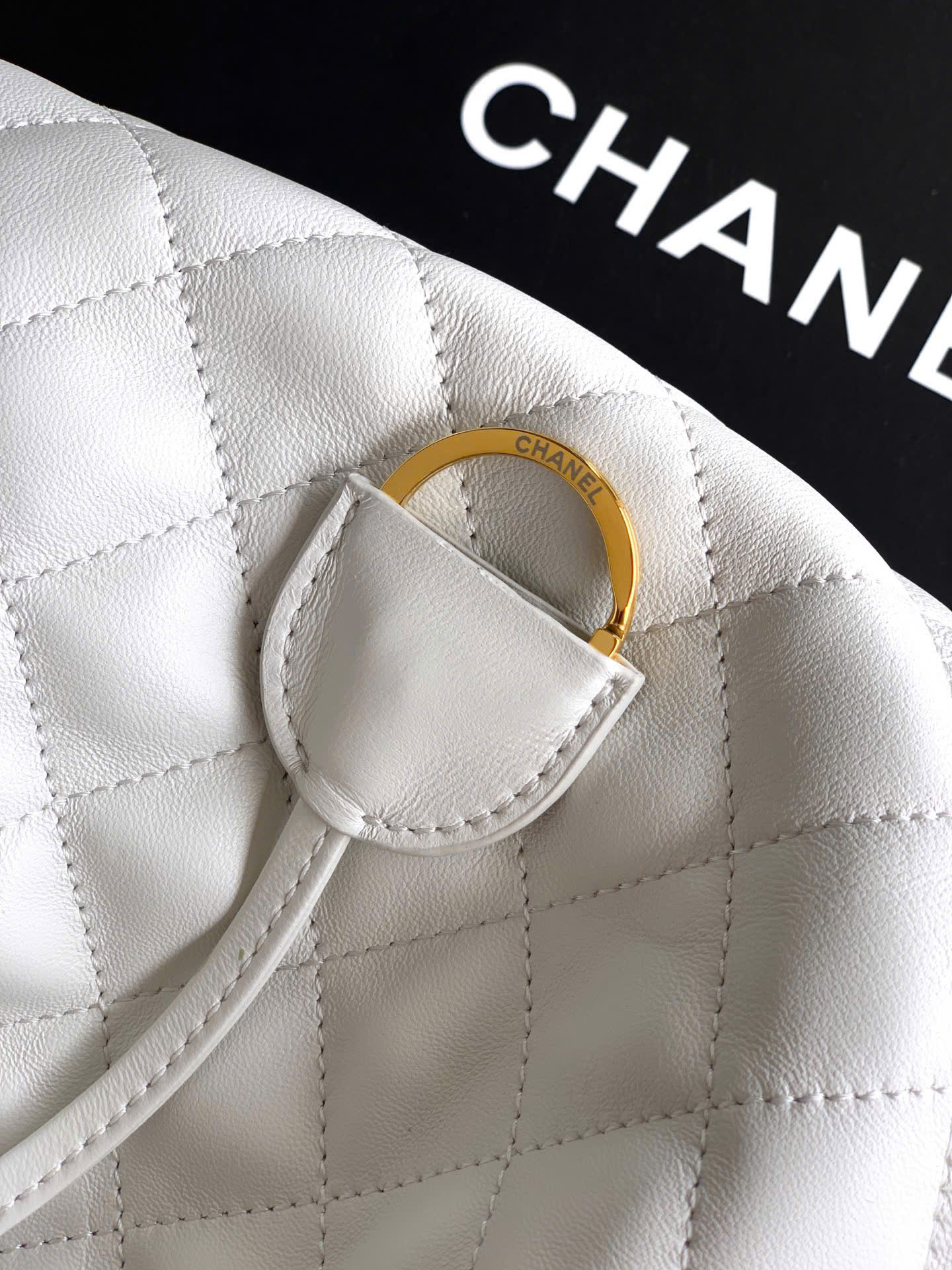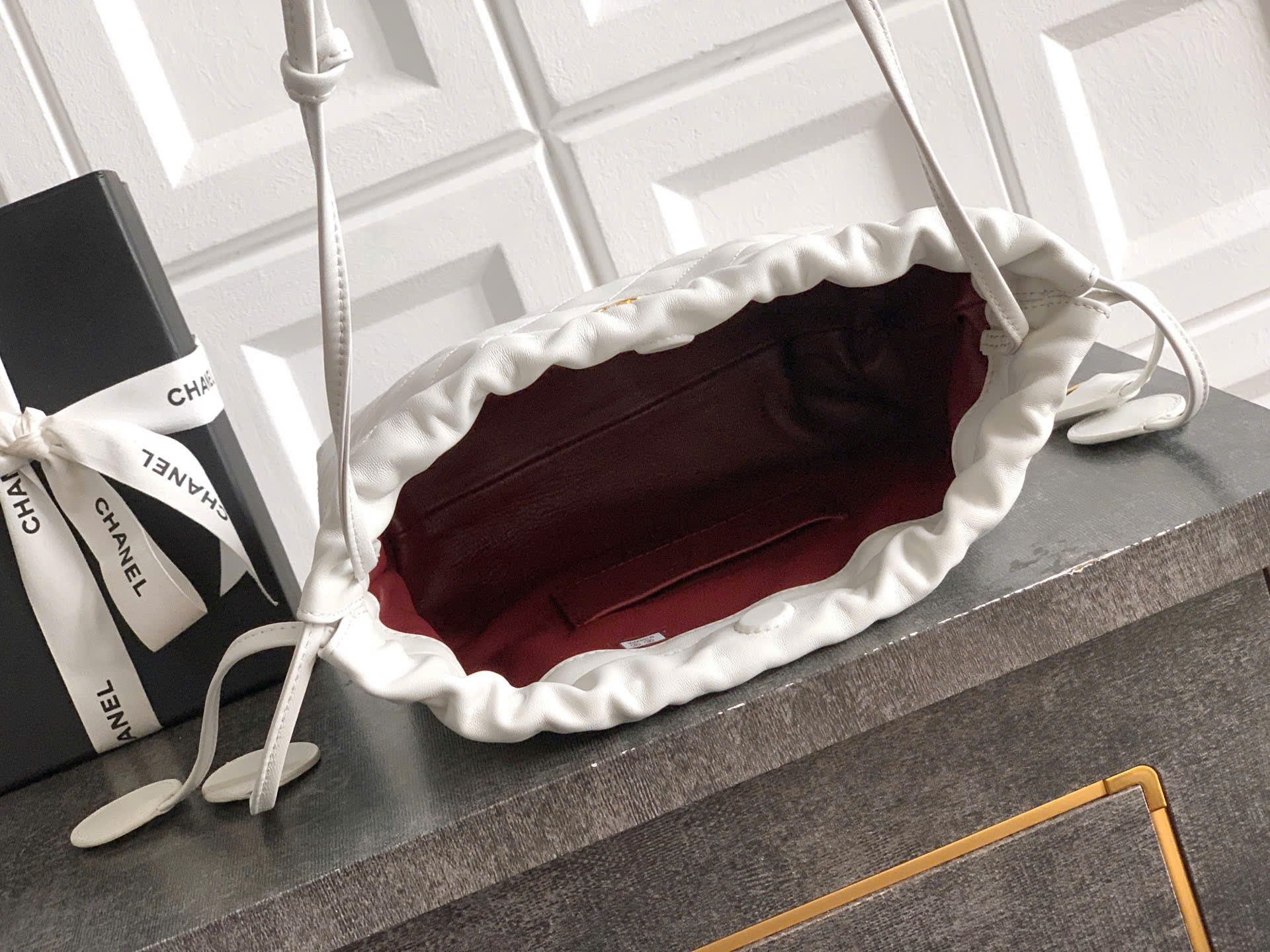 Túi xách Chanel Dây Rút Bucket Da Mềm Trám Logo CC Màu Kem Sữa Siêu VIP
