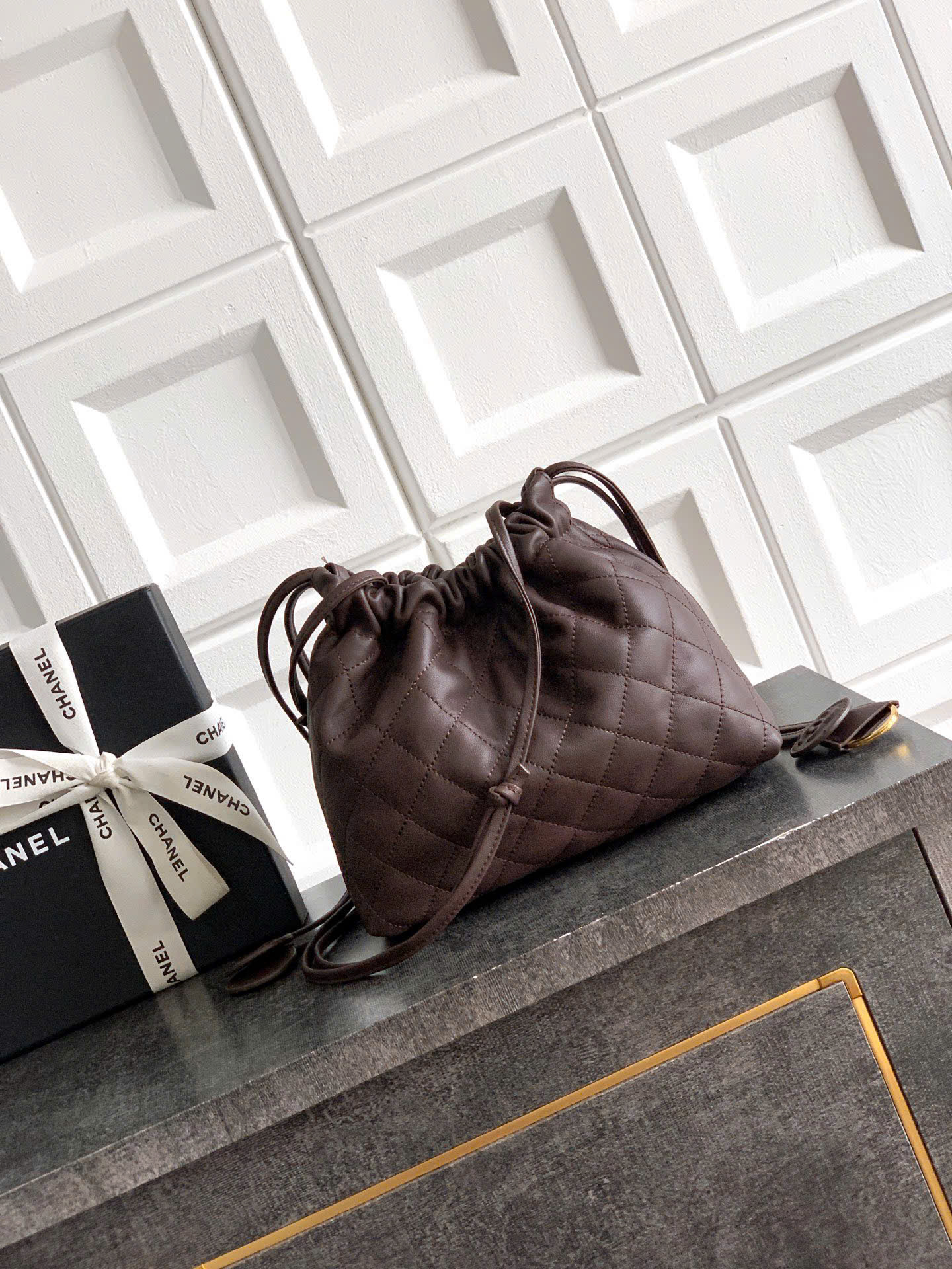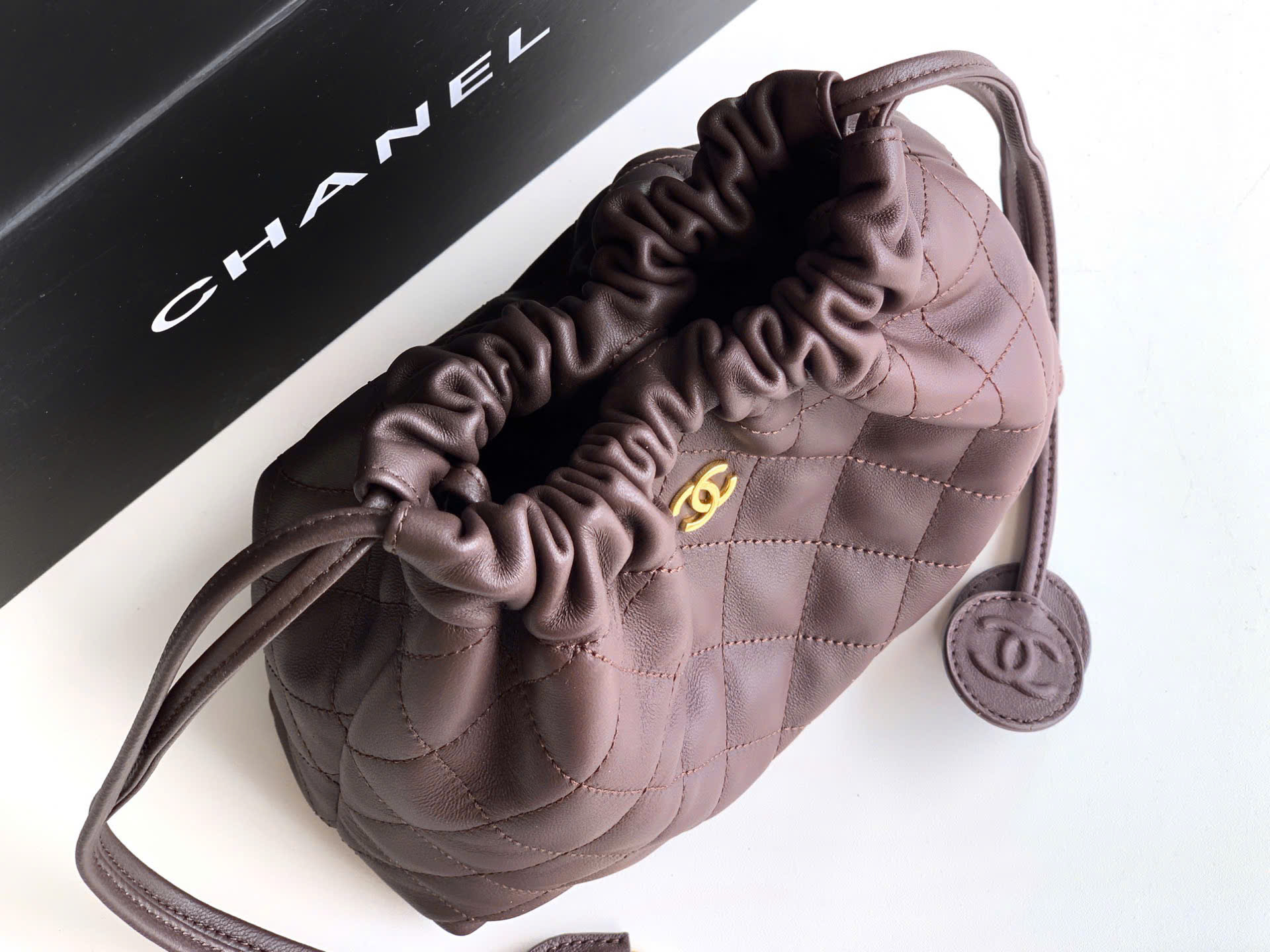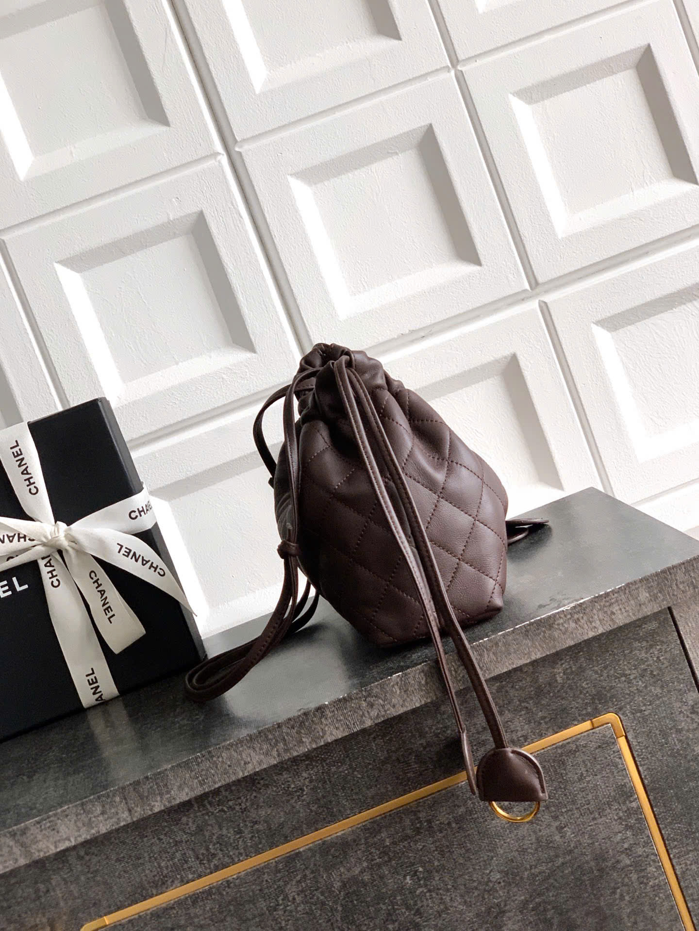 Túi xách Chanel Dây Rút Bucket Da Mềm Trám Logo CC Màu Nâu Cà Phê Siêu VIP
