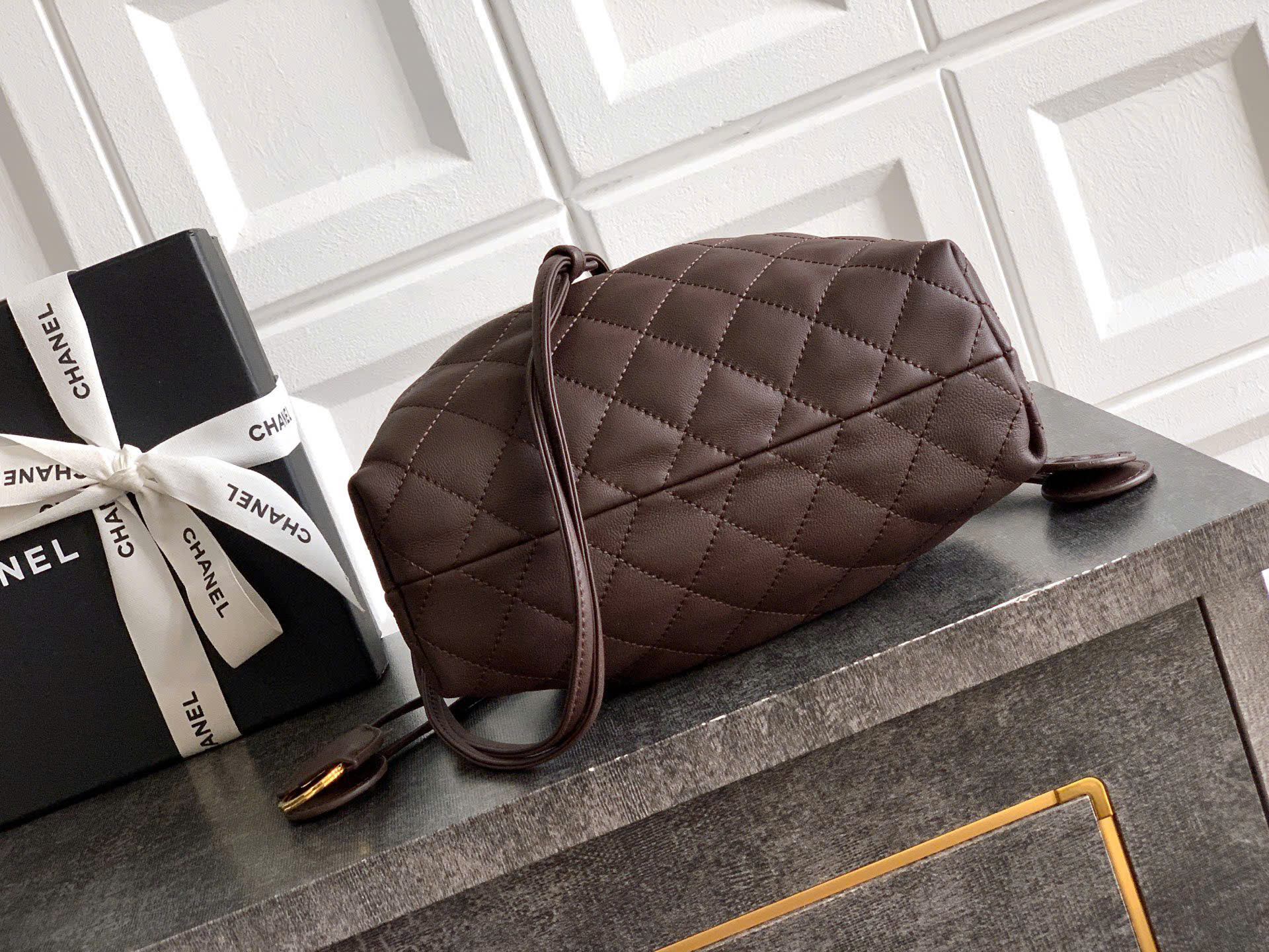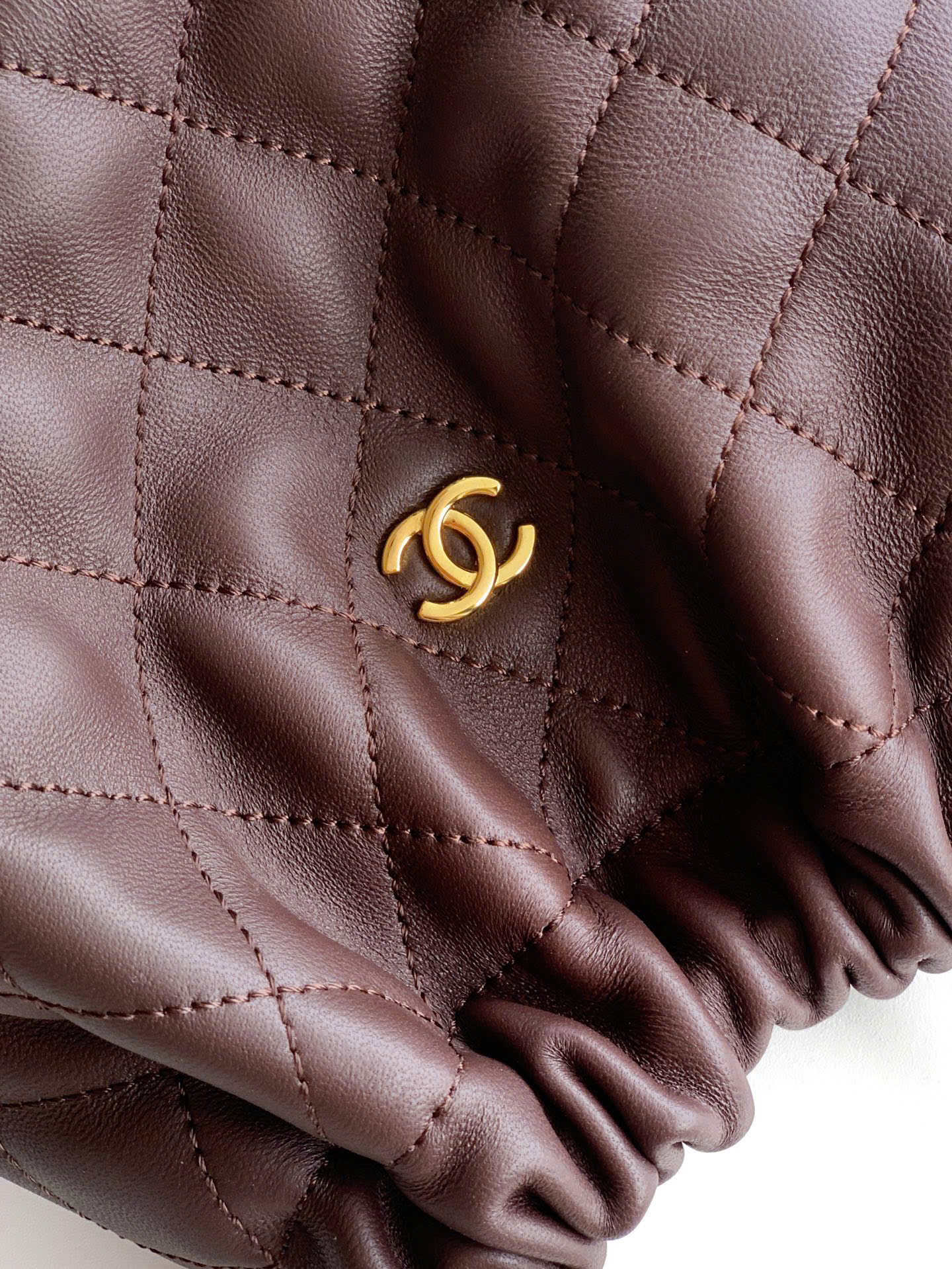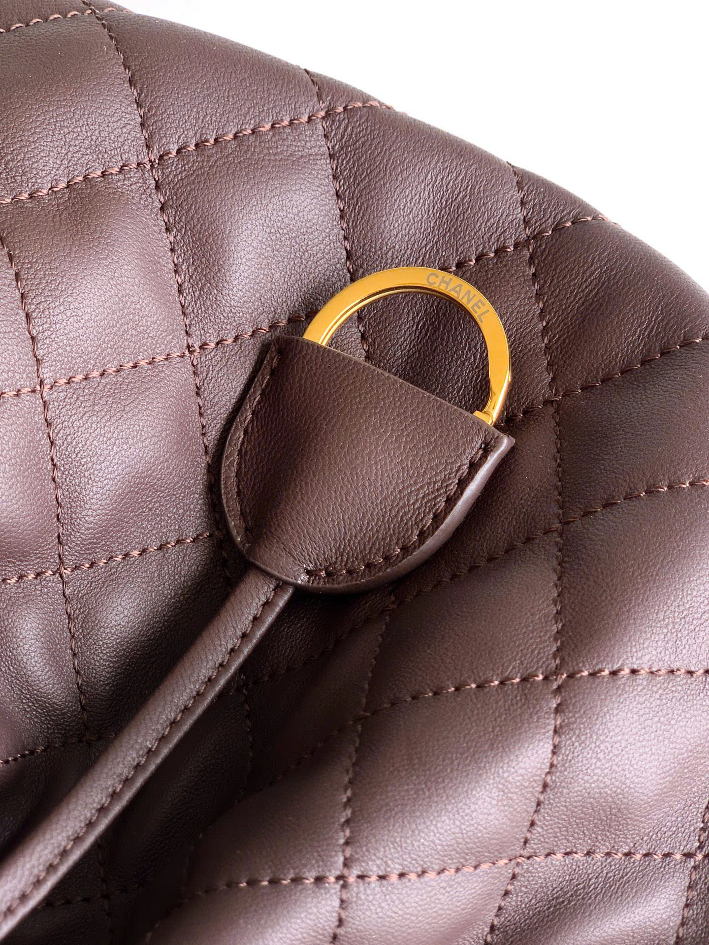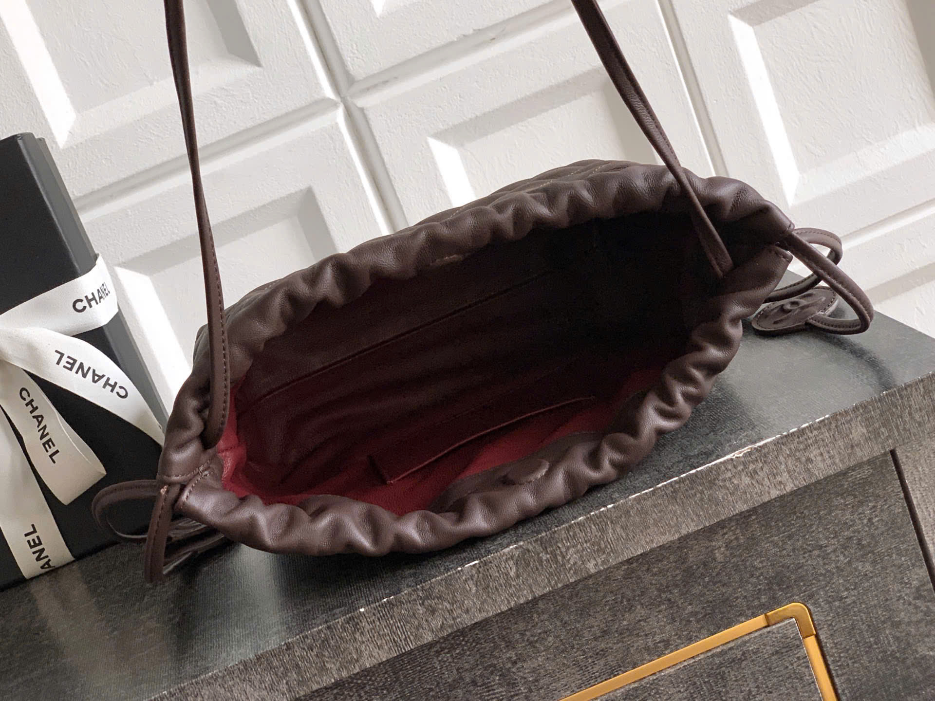 Túi xách Chanel Dây Rút Bucket Da Mềm Trám Logo CC Màu Nâu Cà Phê Siêu VIP