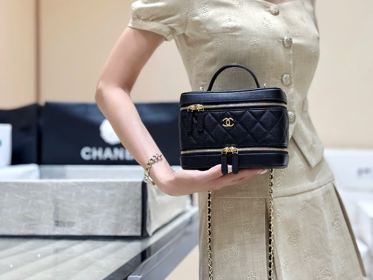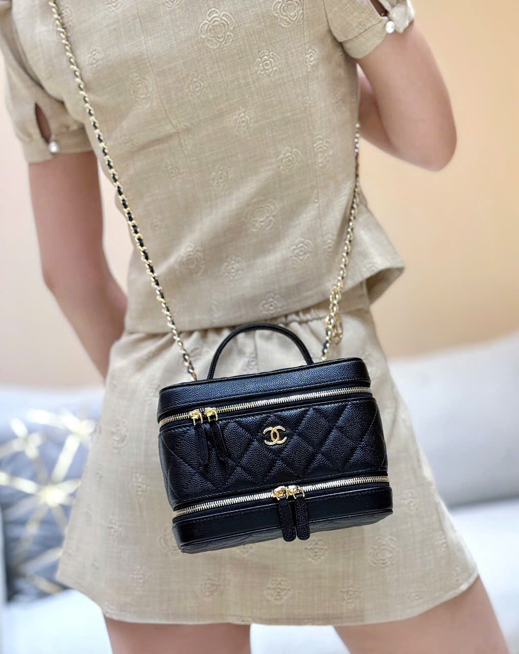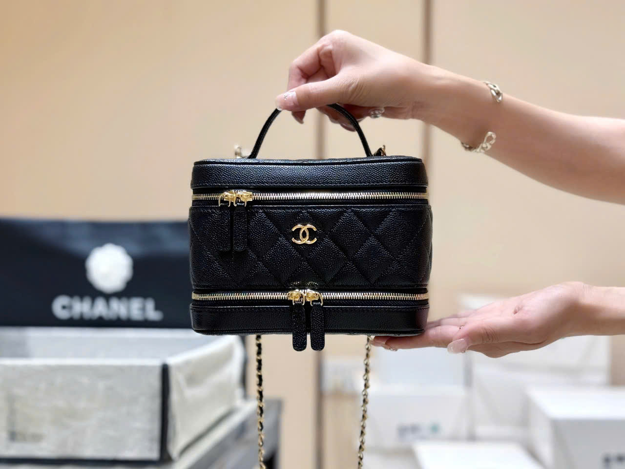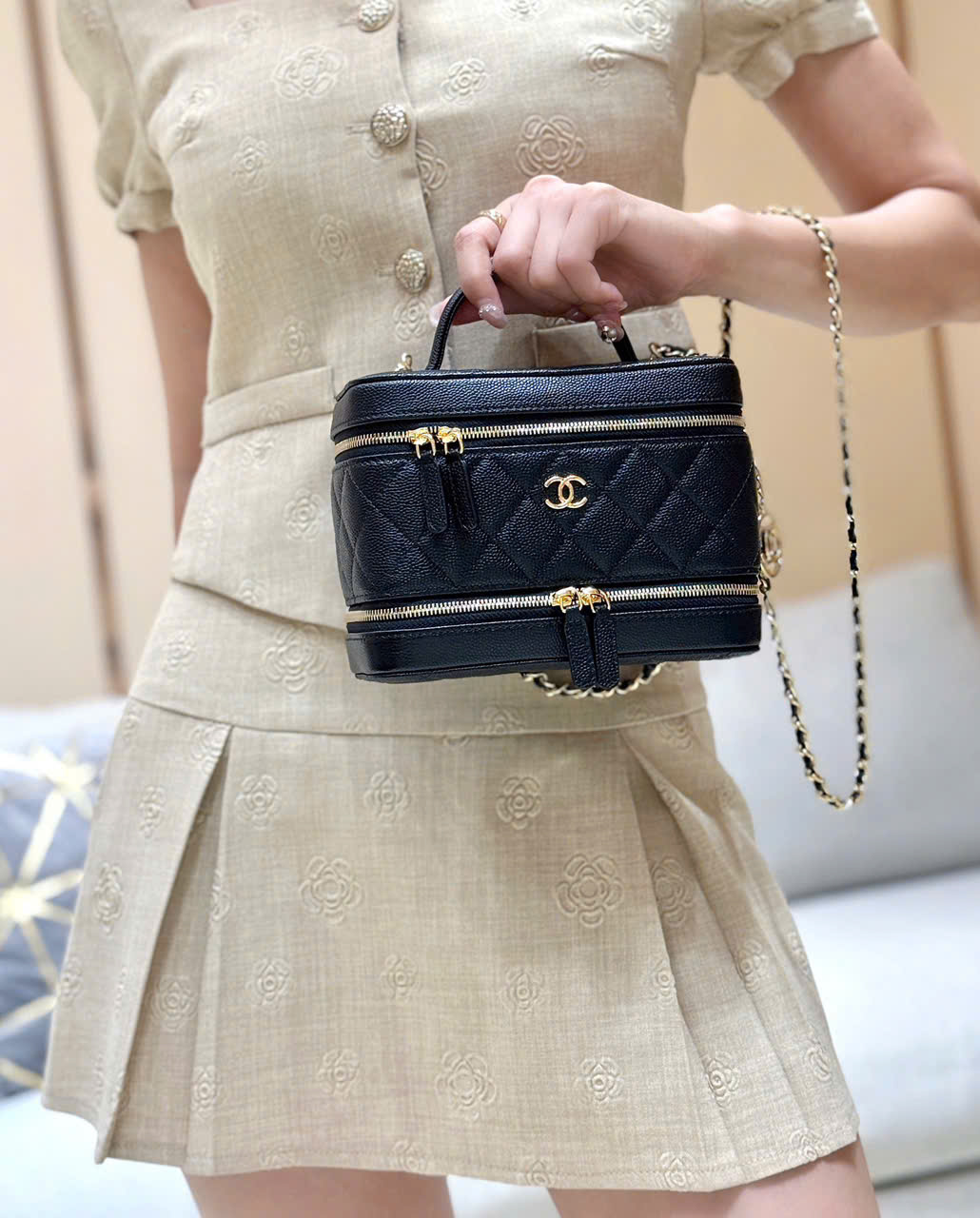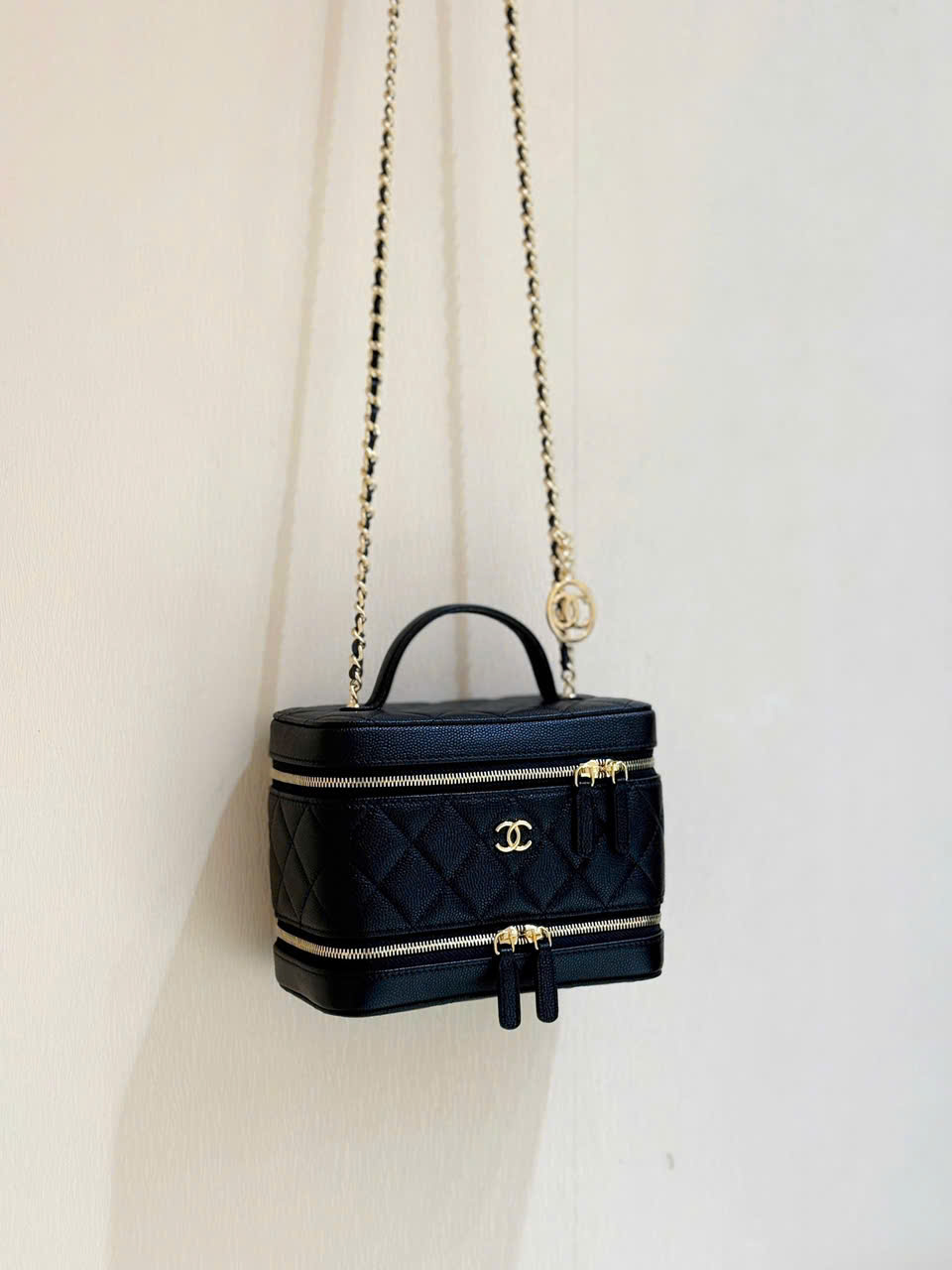 Túi Xách Chanel Like Auth 25A Double Zipper Cosmetic Bag – Dây Đeo Linh Hoạt