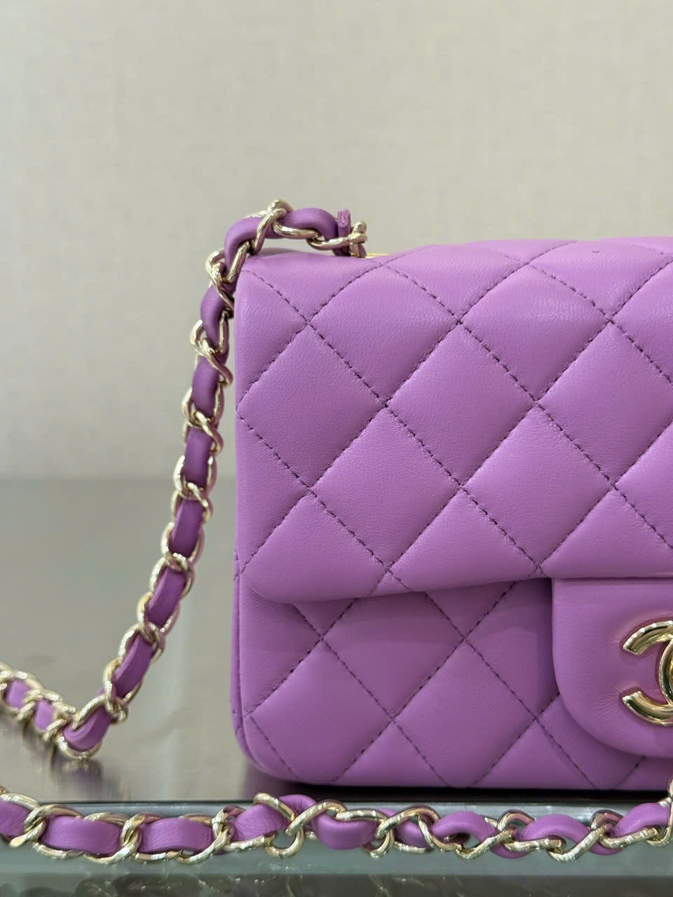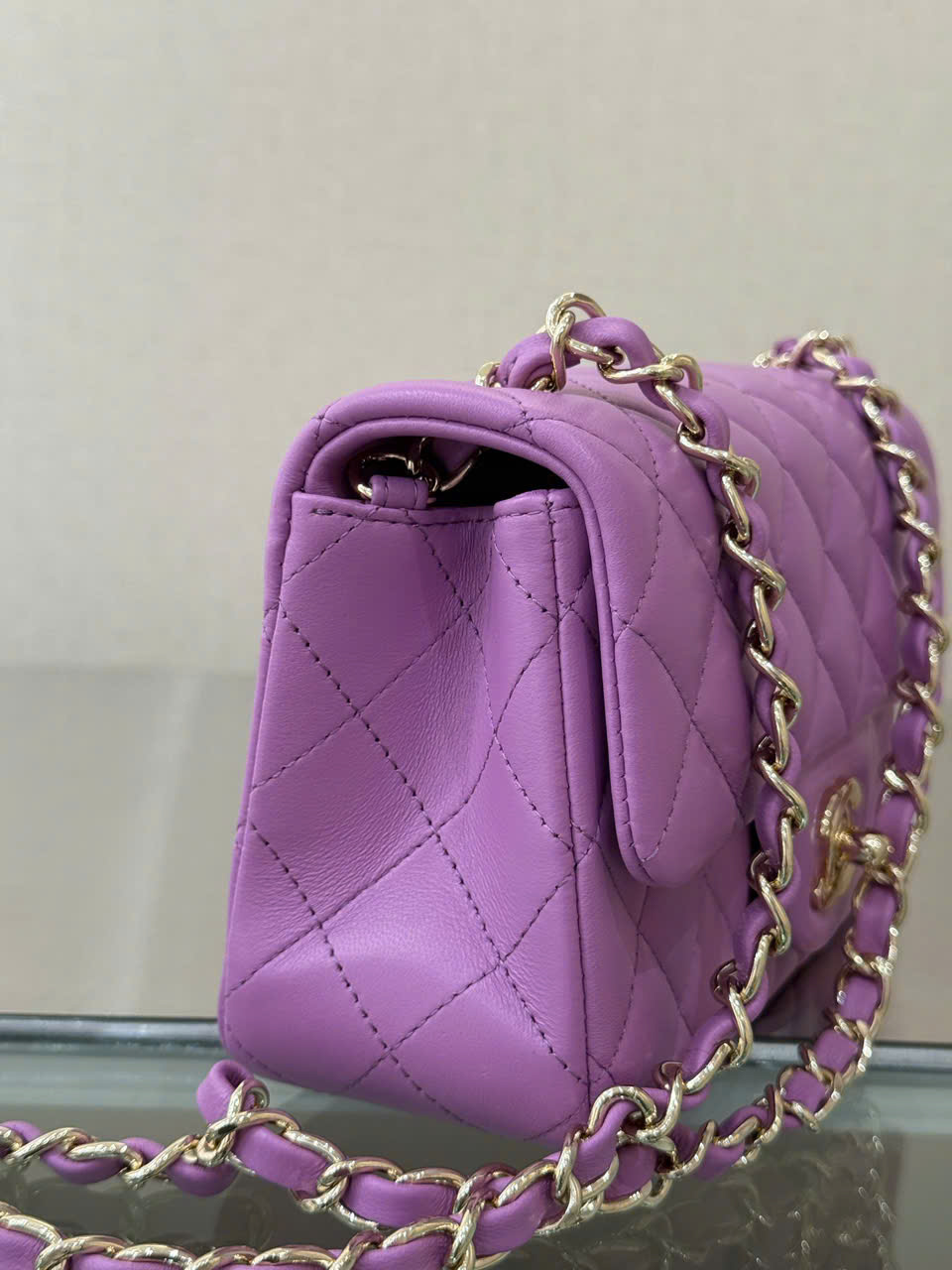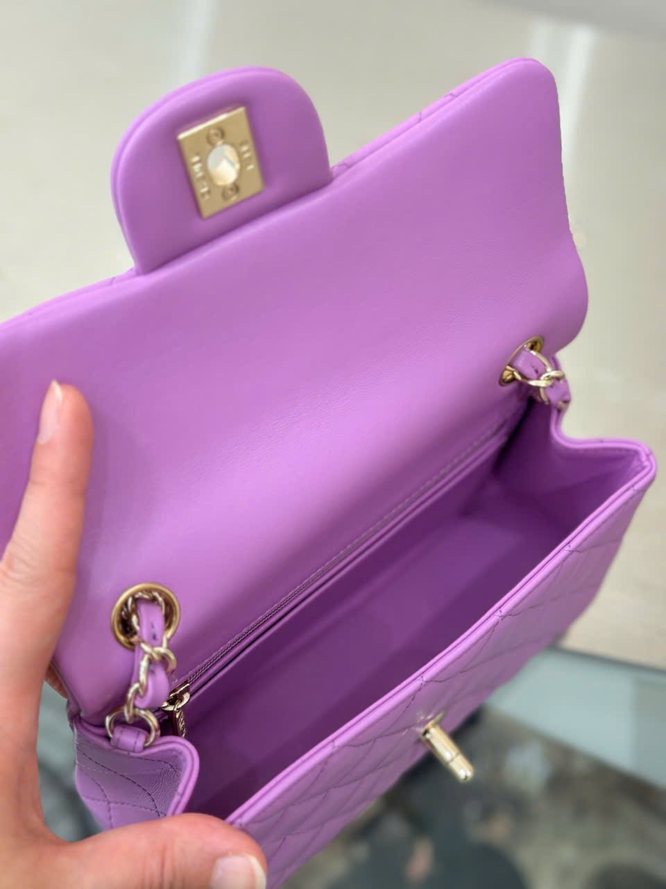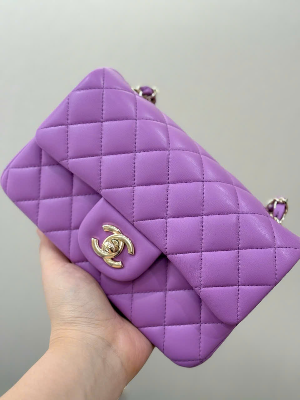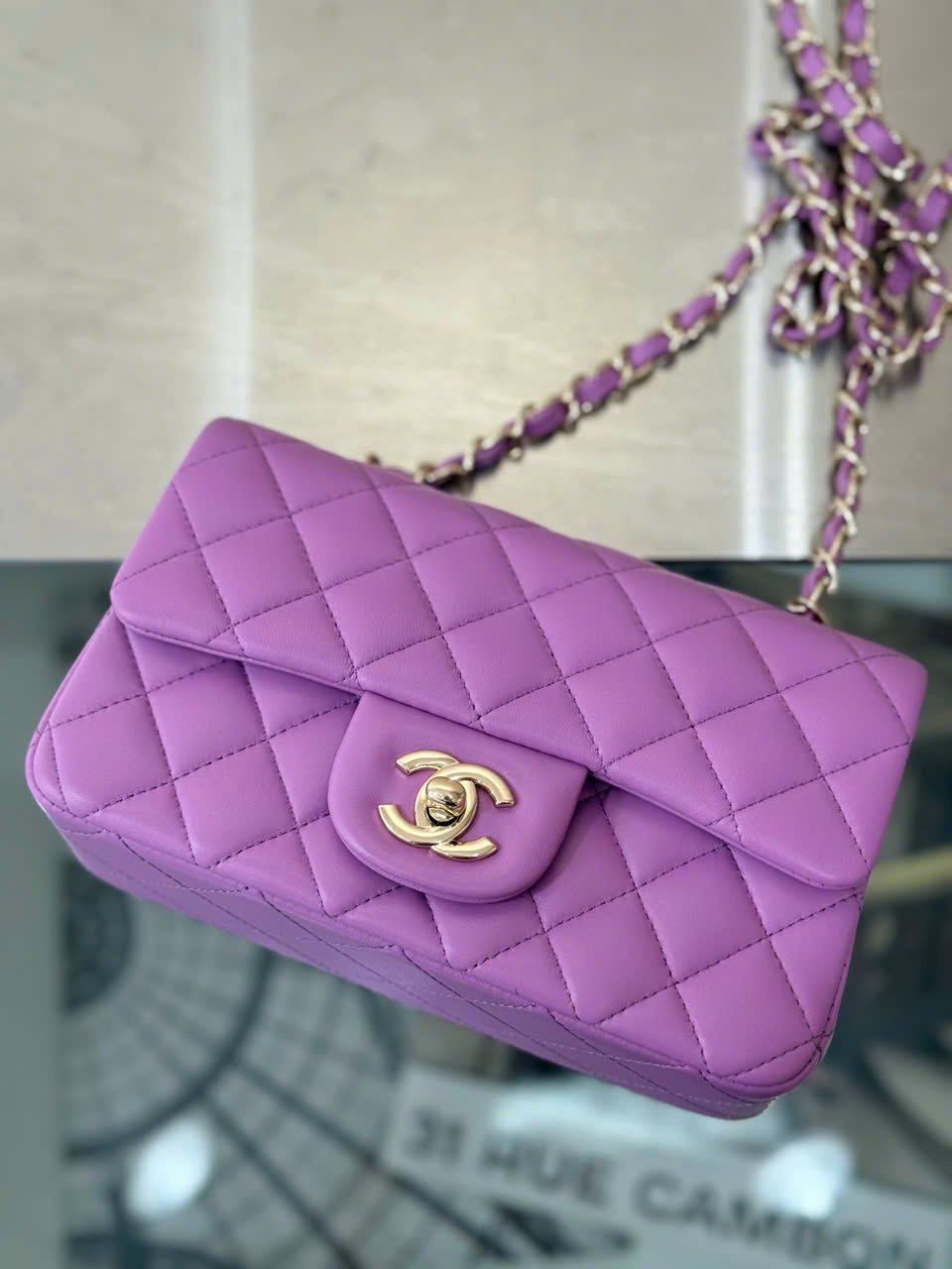 - Tên Sản Phẩm: Túi Xách Chanel Like Auth Classic Flap Đại Mini Da Cừu Màu Tím Khoai Môn