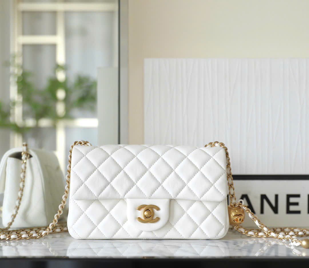 Túi xách Chanel Mini Flap Gold Ball 0175 Màu Trắng Like Auth